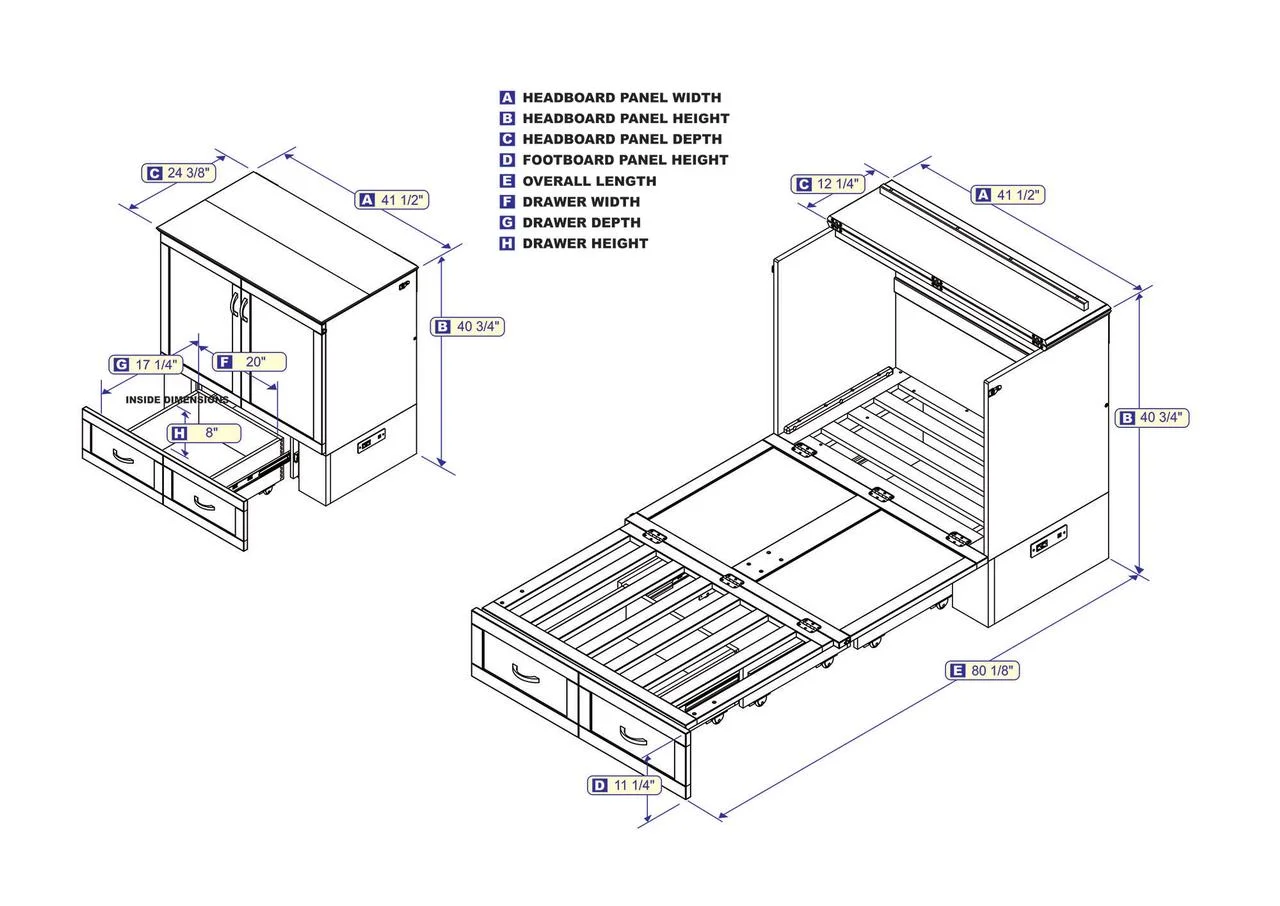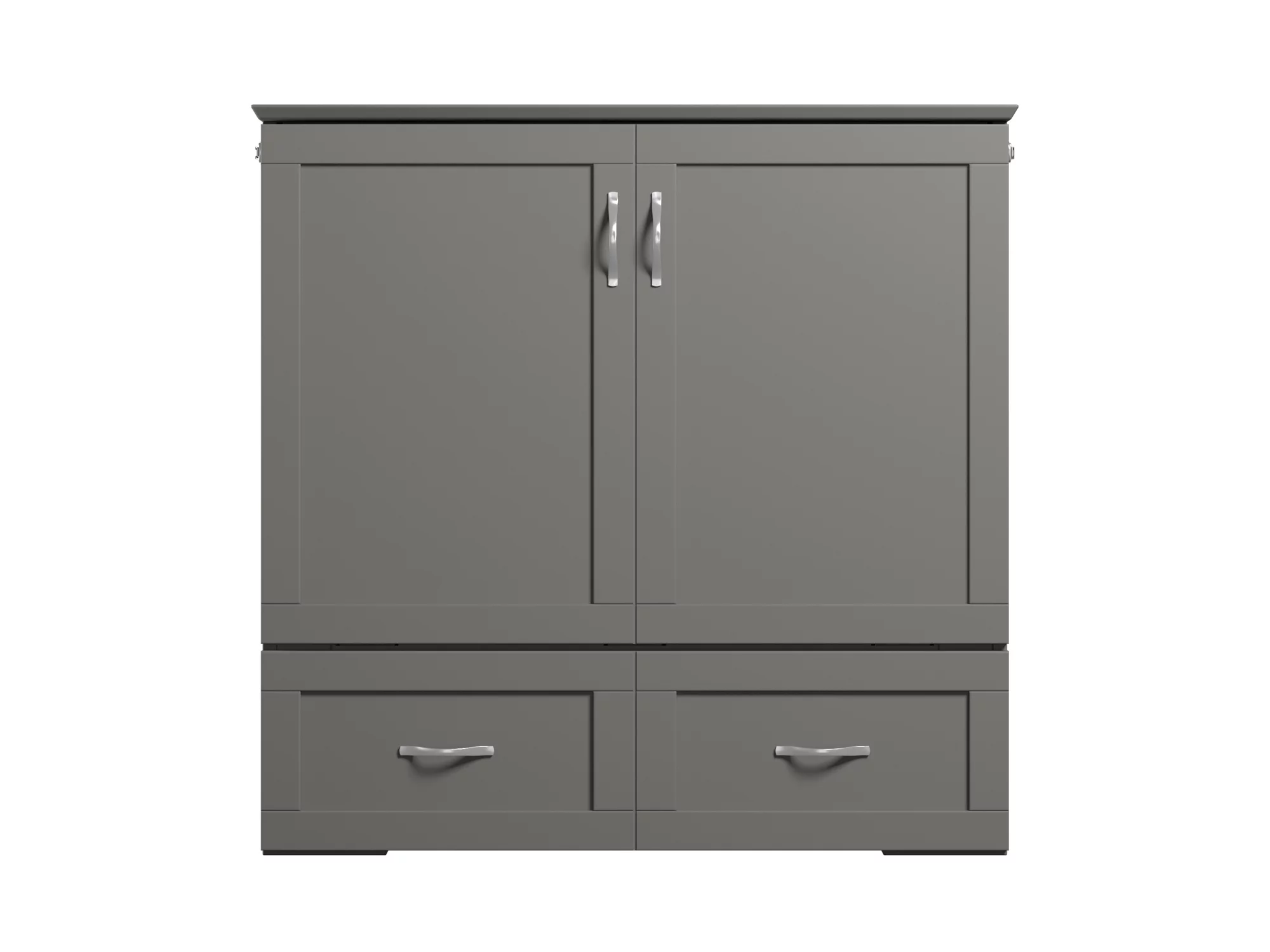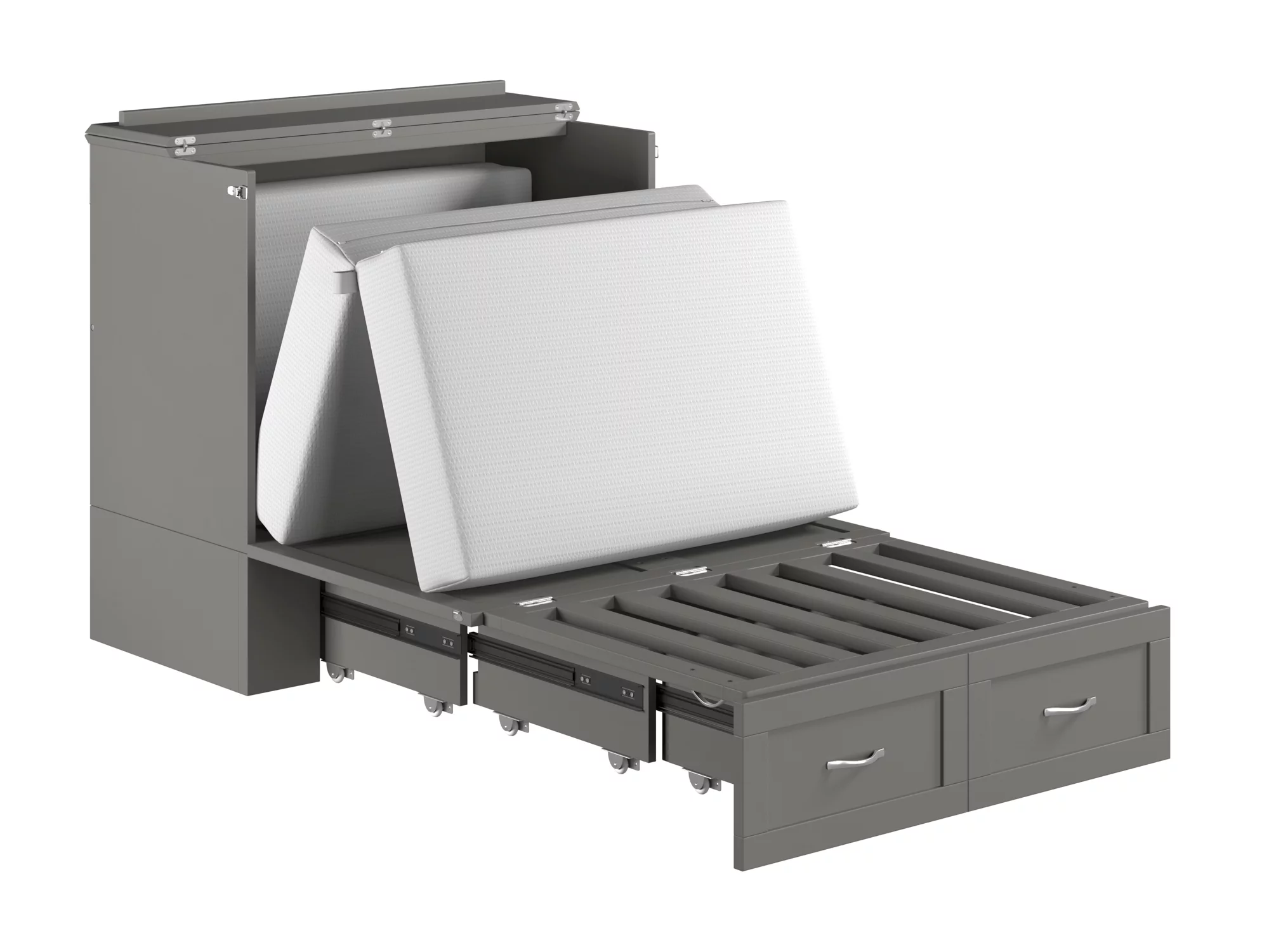 AFI Hamilton Twin XL Solid Wood Murphy Bed Chest with Mattress, Drawer and Charger, Grey