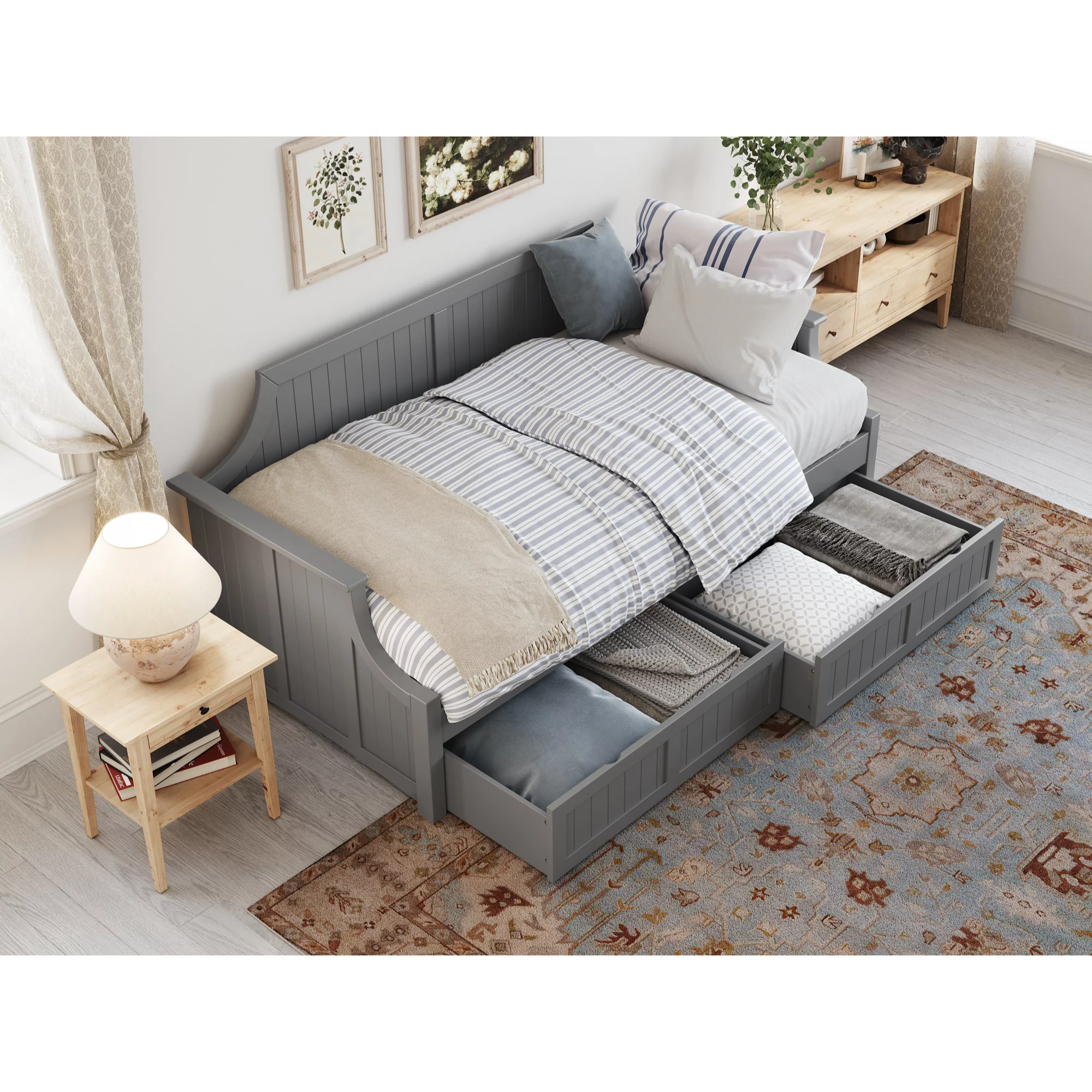 Gray 79.5'' Elegant And Cozy Sturdy Construction Pine wood Daybed with Trundle Frame Set, Twin Size
