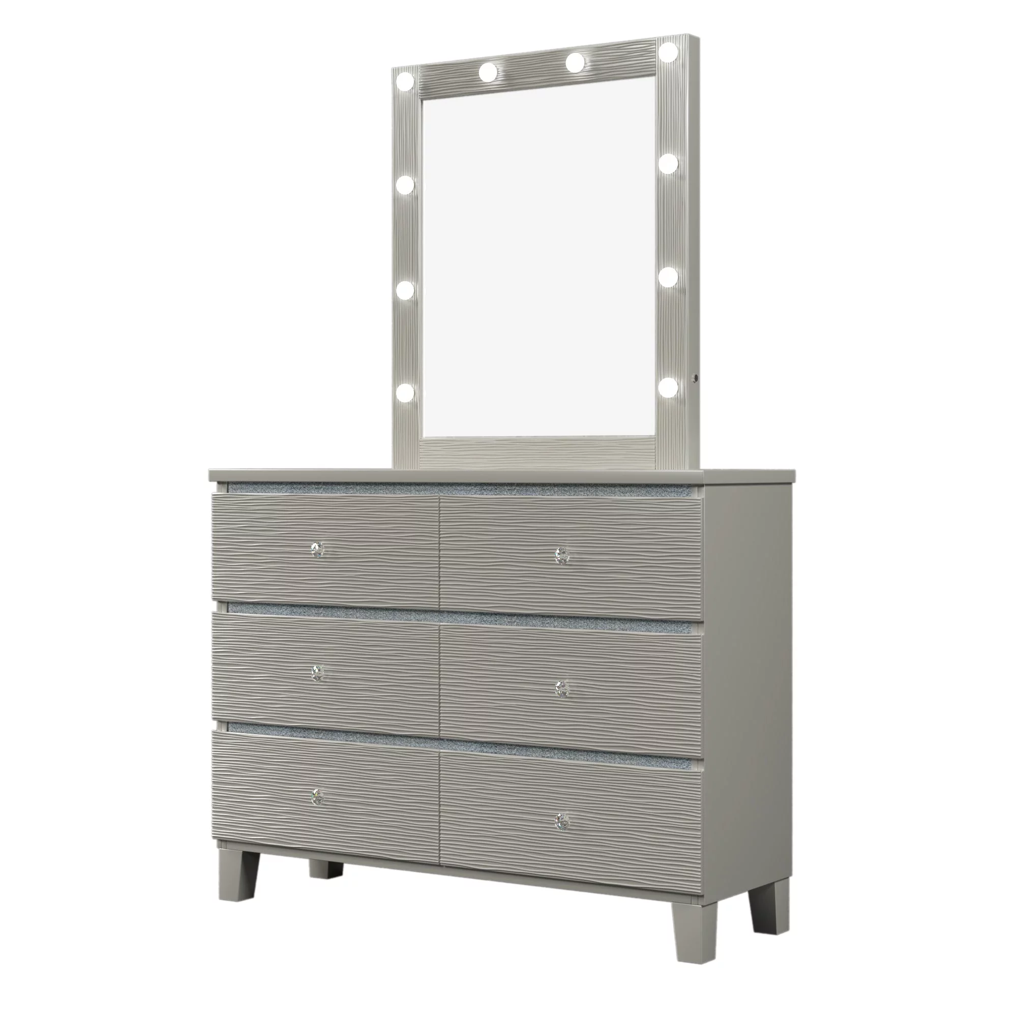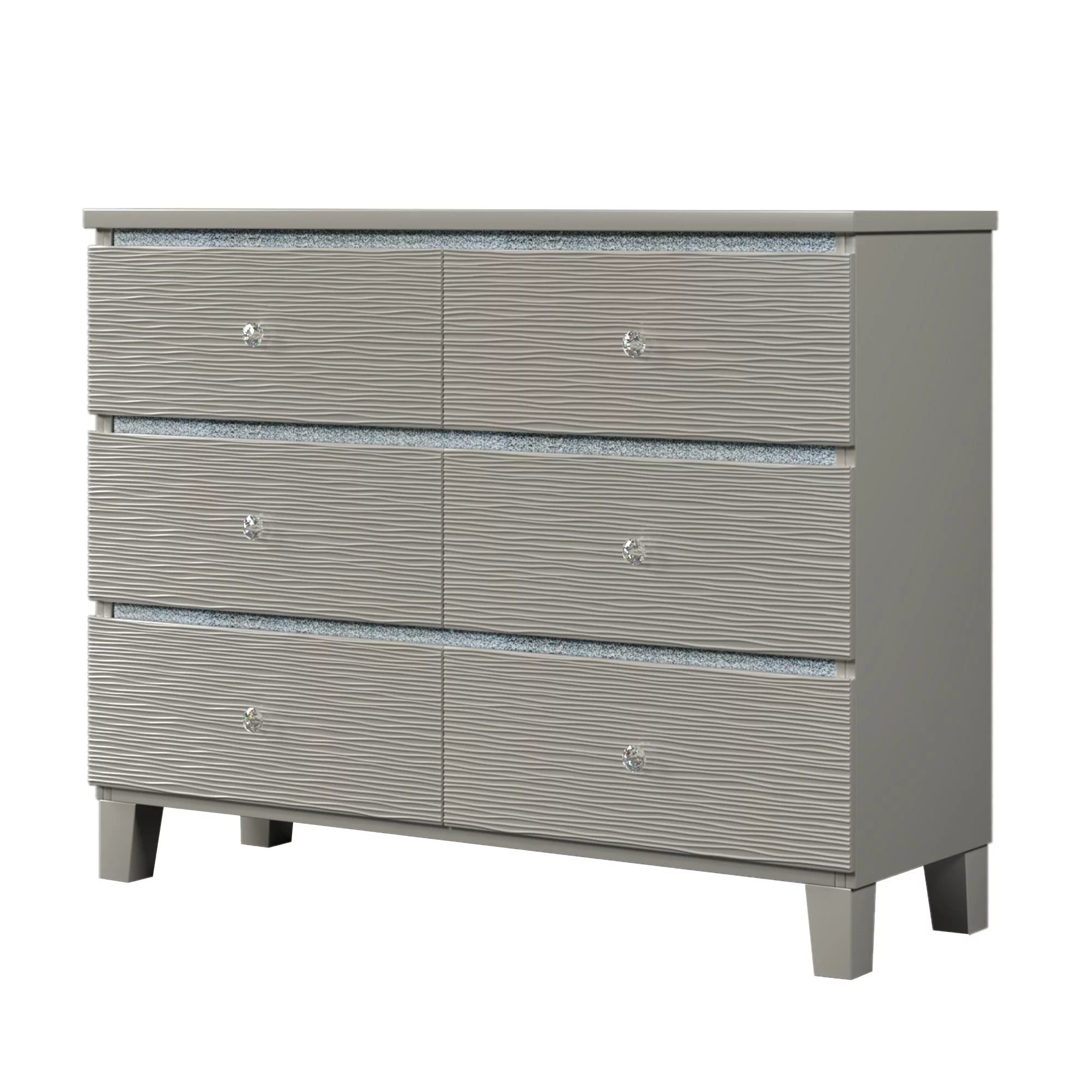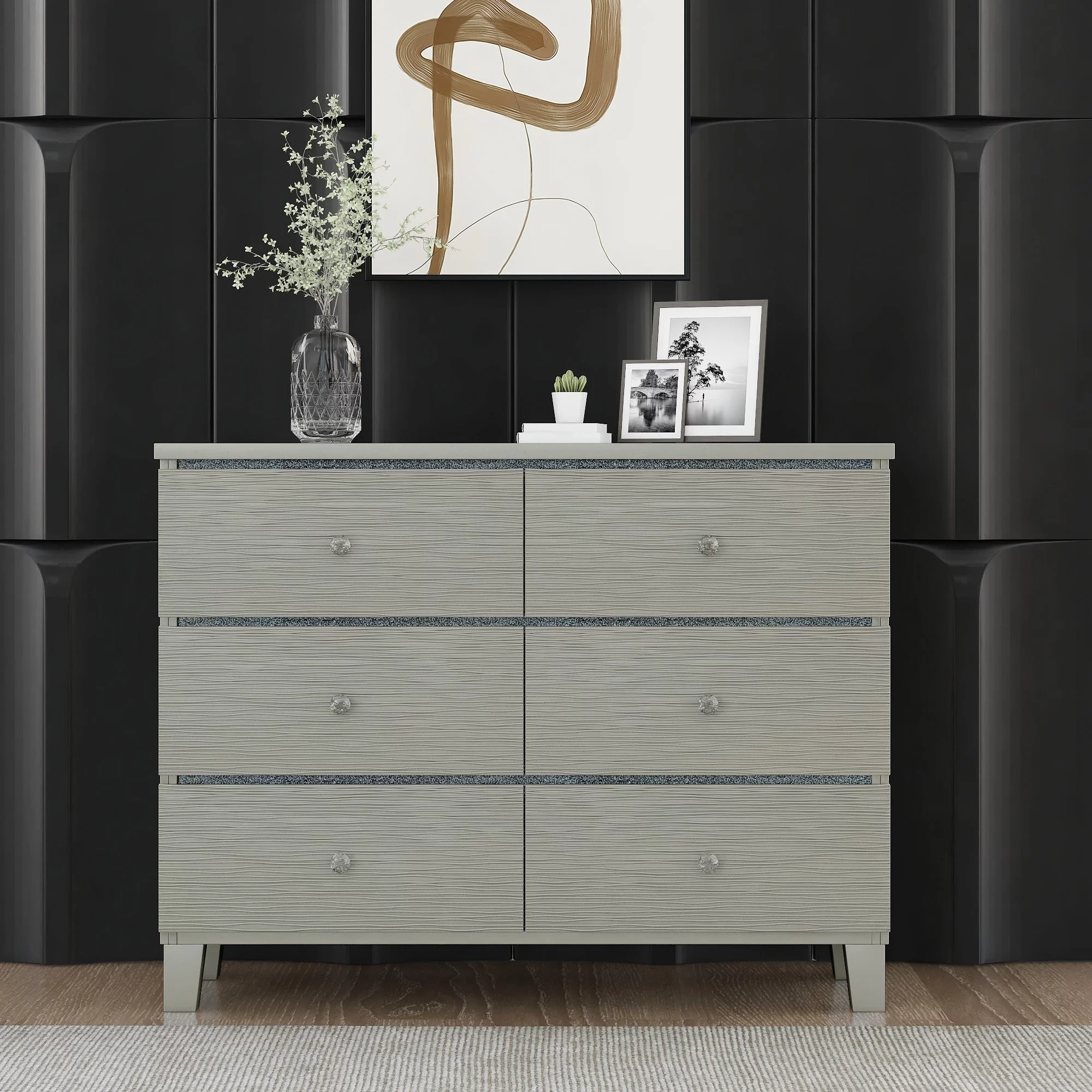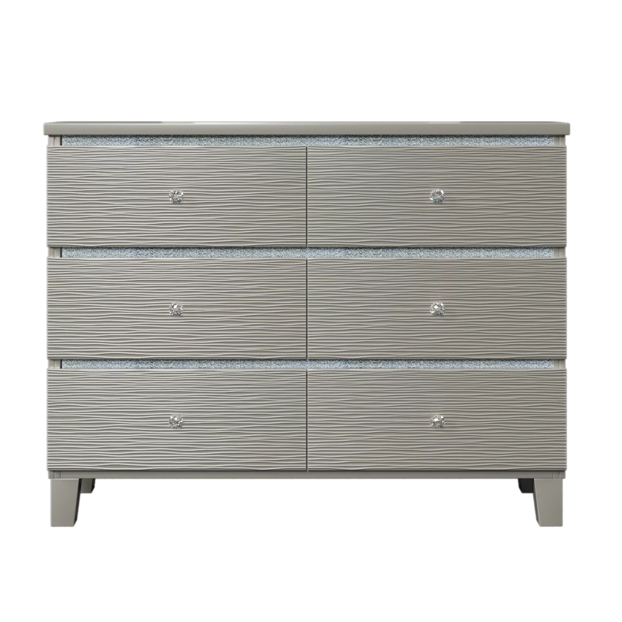 61 in. 6 Drawers & Acrylic Crystal Accents Juhi Wide Dresser, Silver
