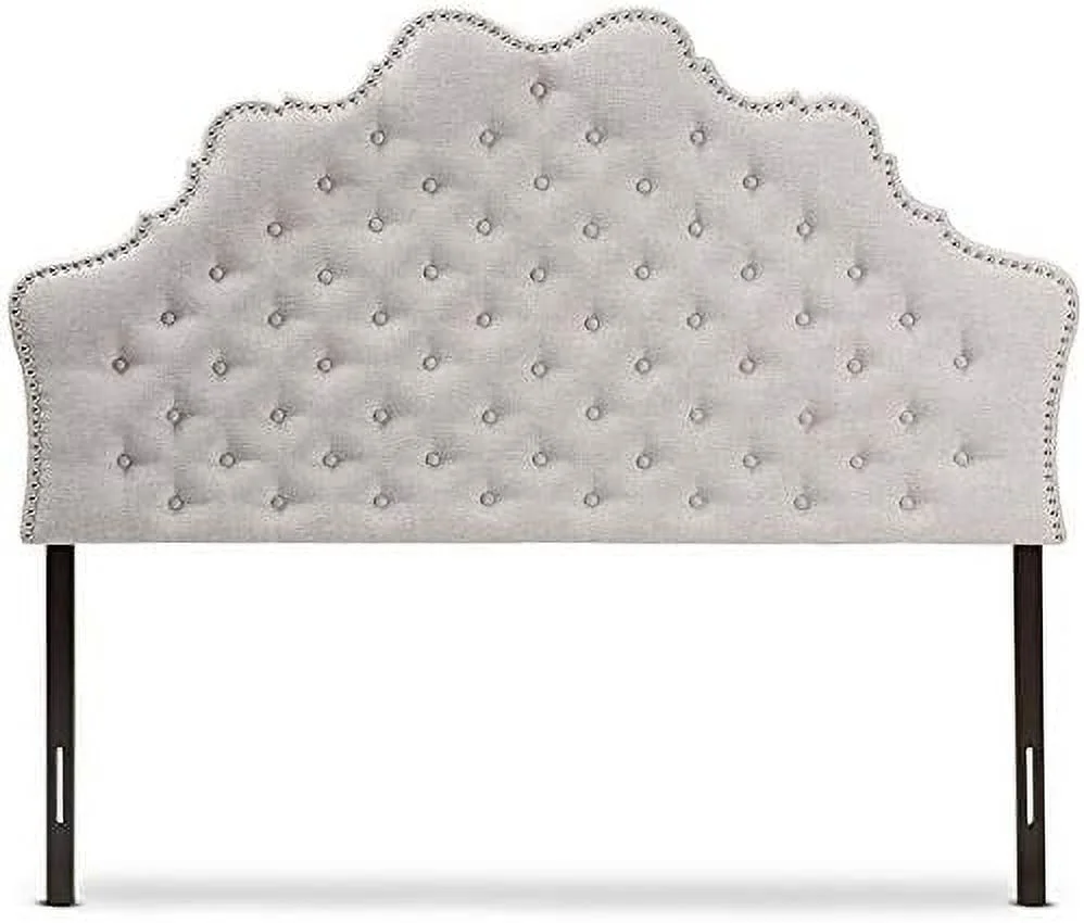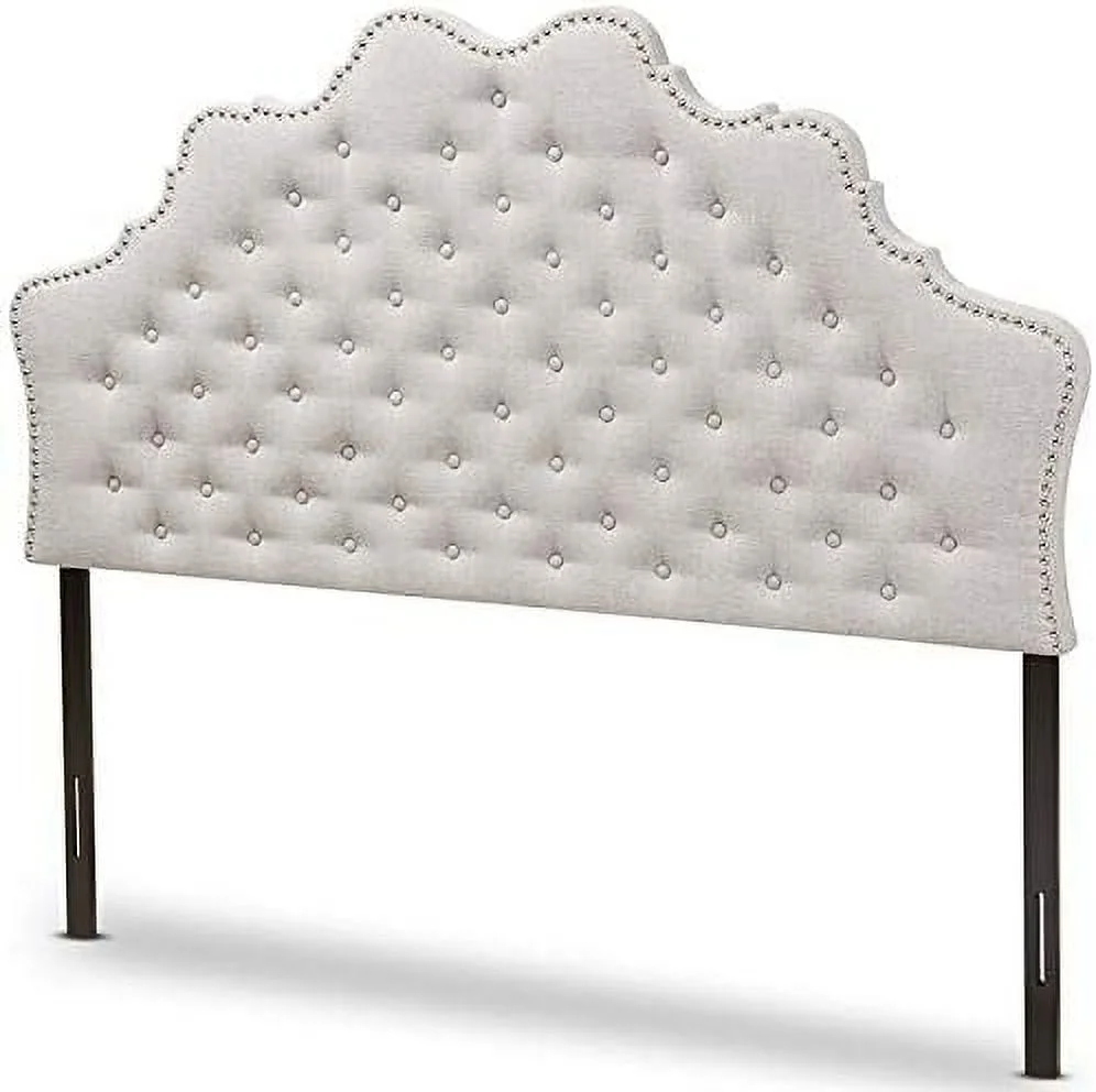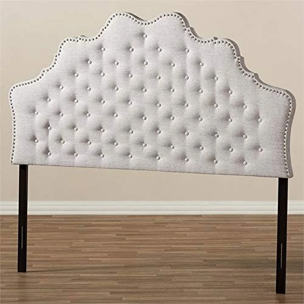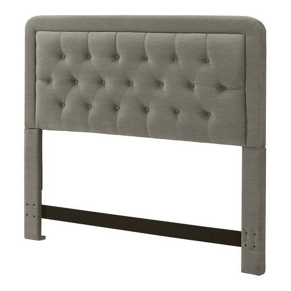 Bowery Hill Fabric Upholstered Full Headboard with Silver Nail Heads in Gray
