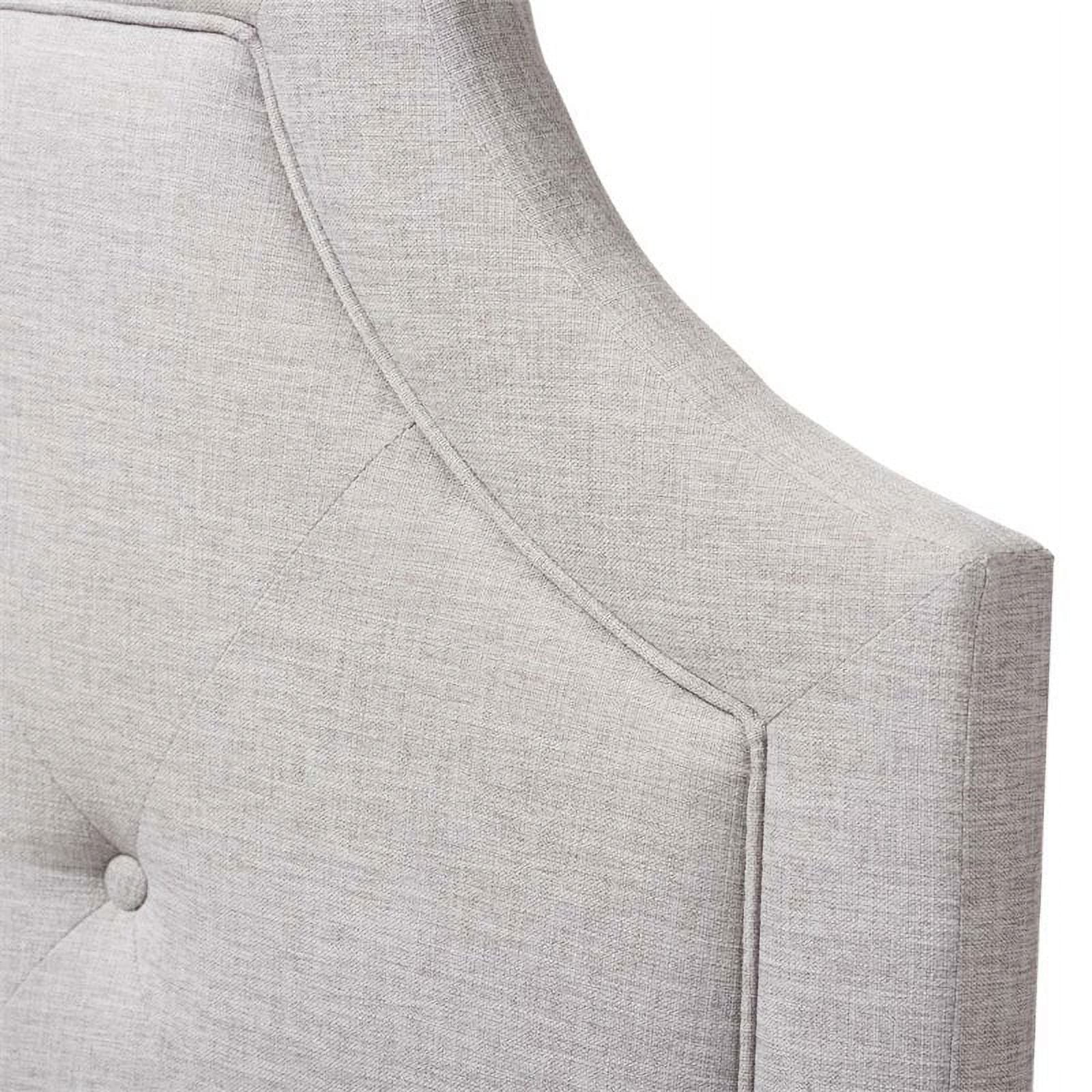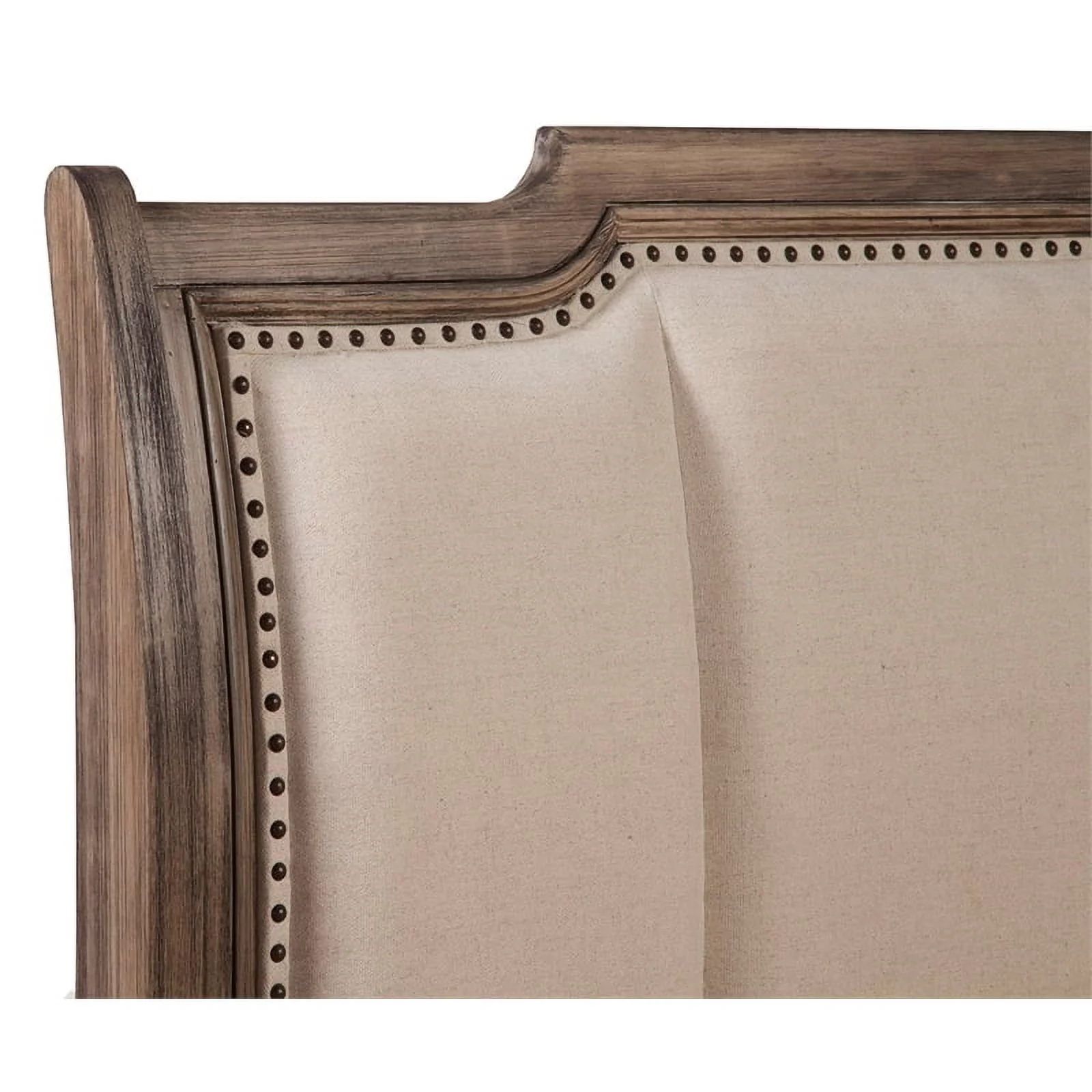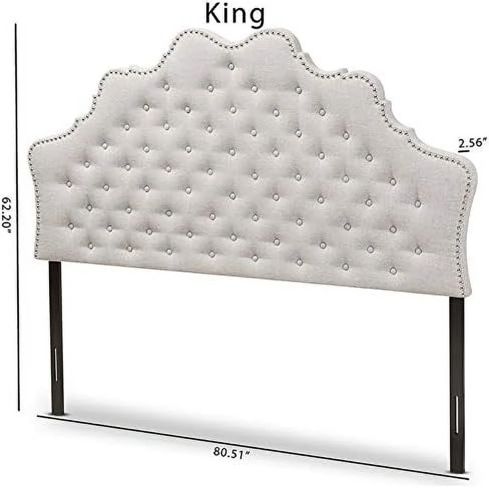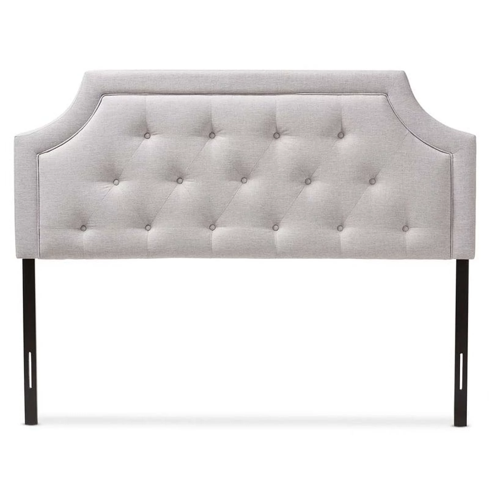 Bowery Hill Fabric Upholstered Full Headboard with Silver Nail Heads in Gray
