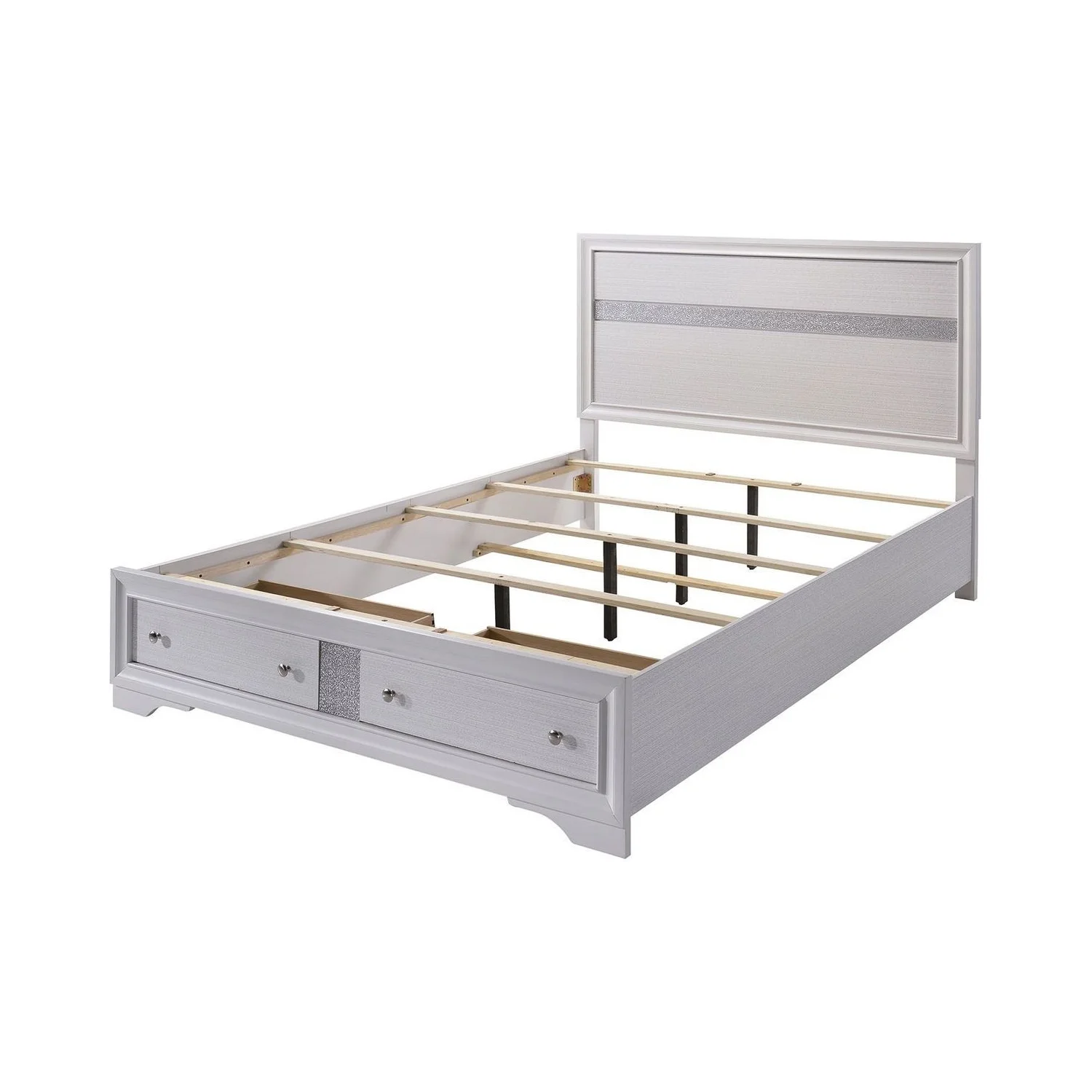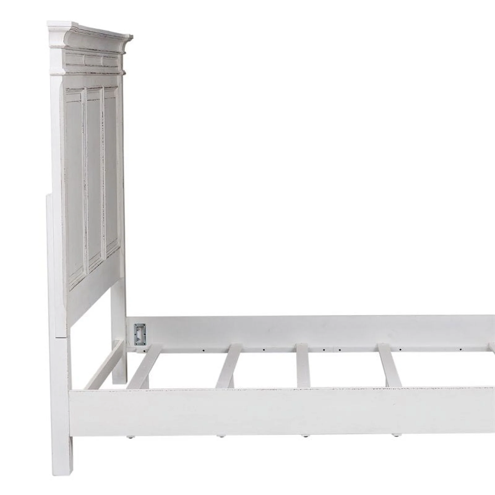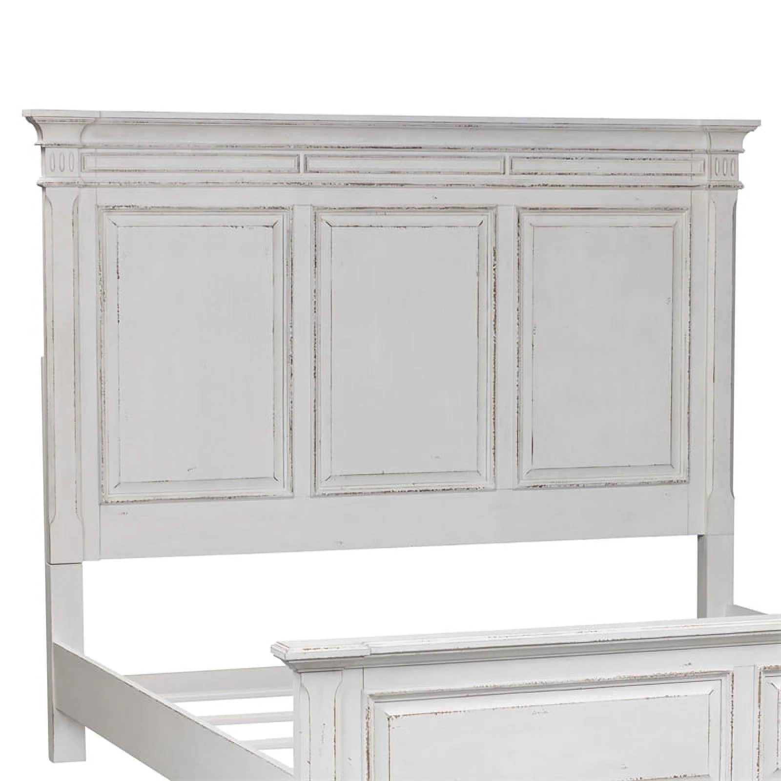 Maykoosh French Flair Panel Design Eastern King Bed With Silver Accents And Bracket Feet, White