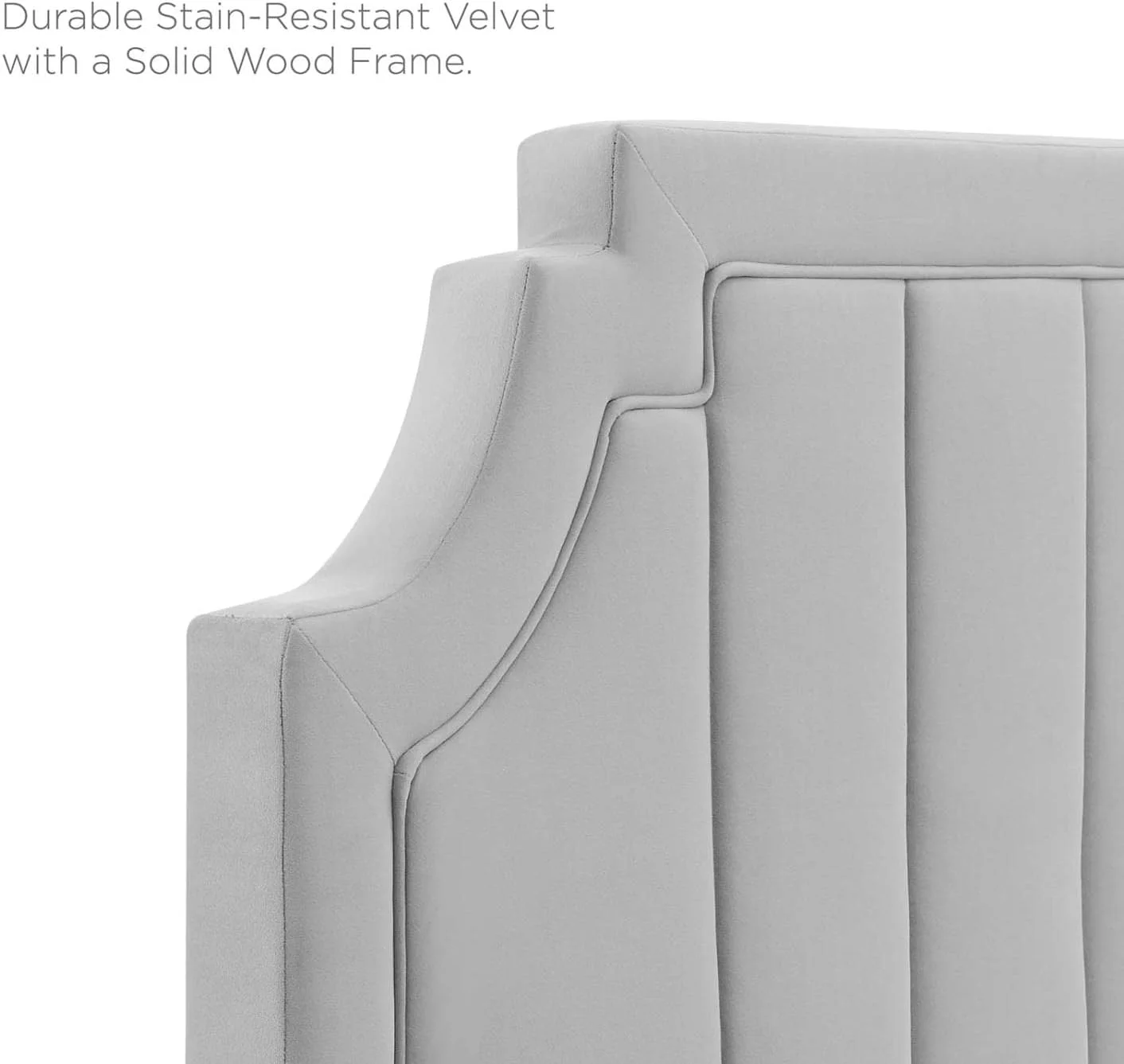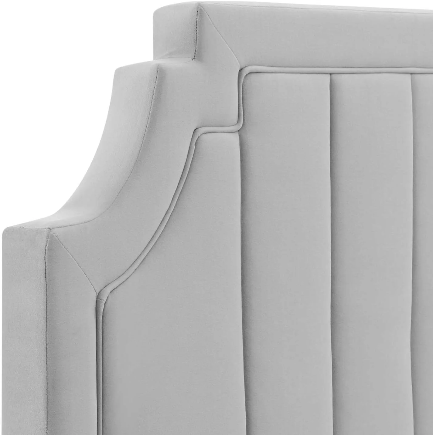 Alyona Channel Tufted Performance Velvet Headboard, King/California King, Light Gray