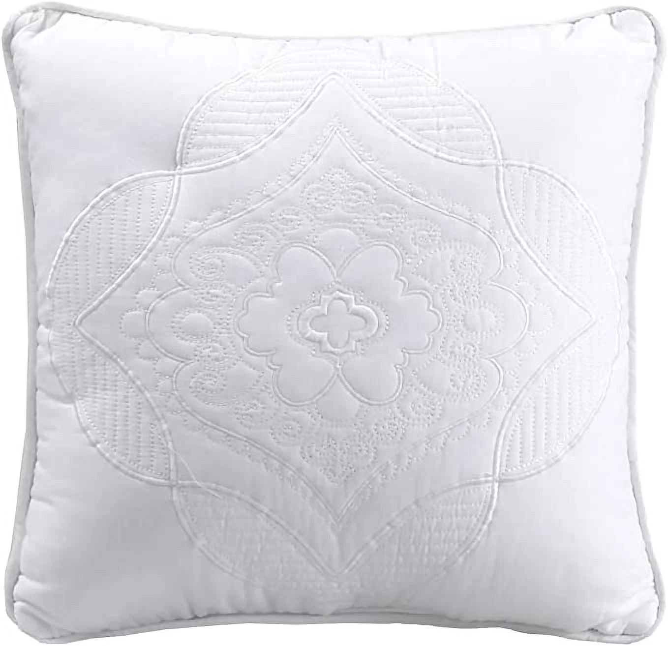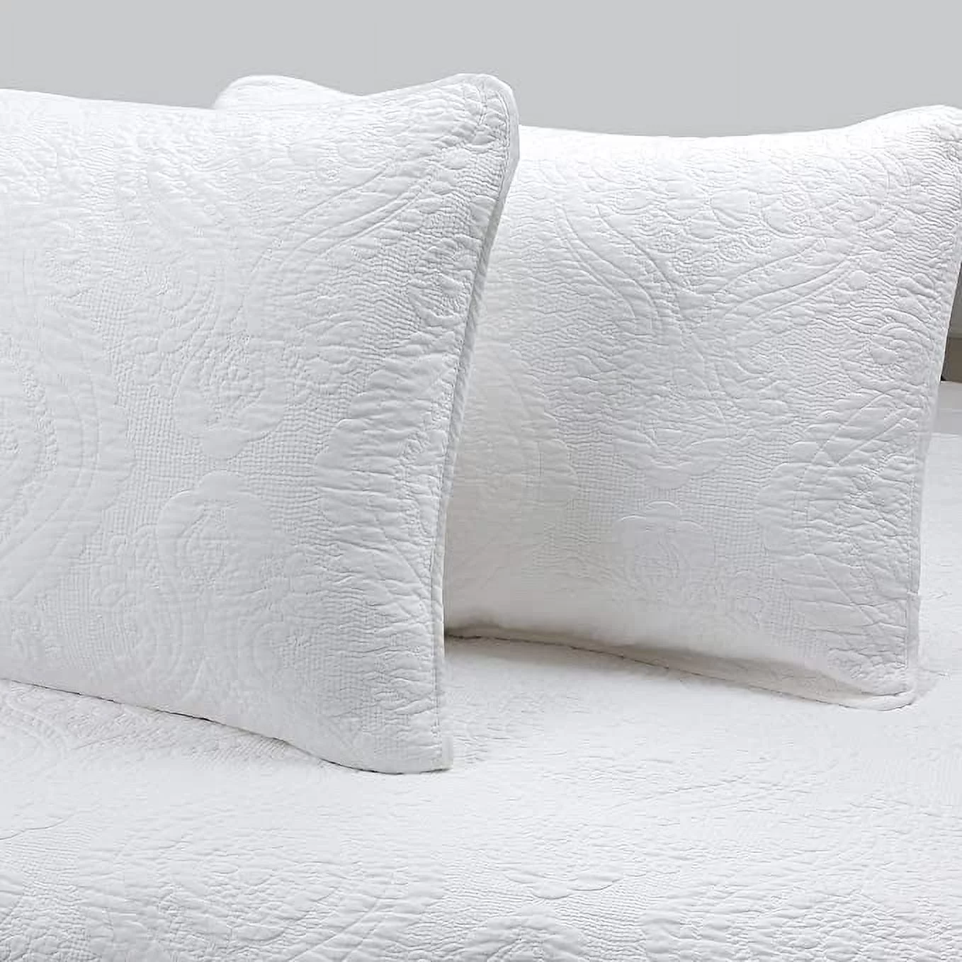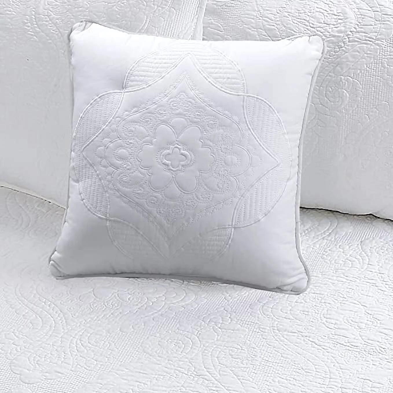 Solid White Chic Brocade Matelassé Medallion Floral 6 Piece Microfiber Daybed Quilt Bedding Set