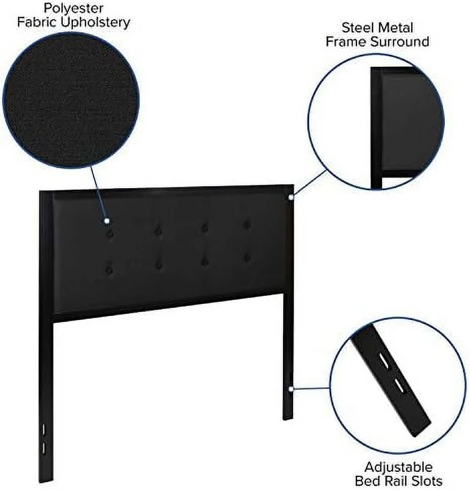 HOOMHIBIU King Size Upholstered Metal Panel Headboard in Tufted Dark Gray Fabric
