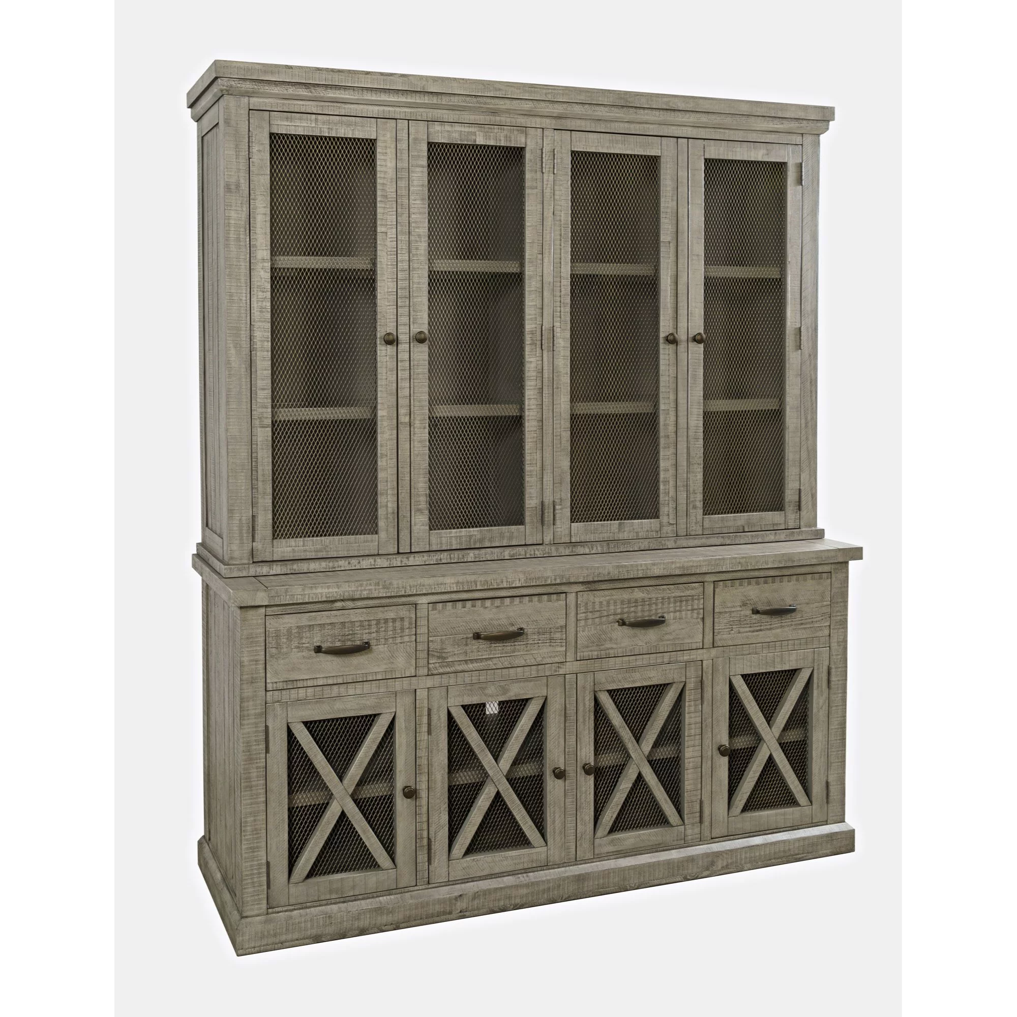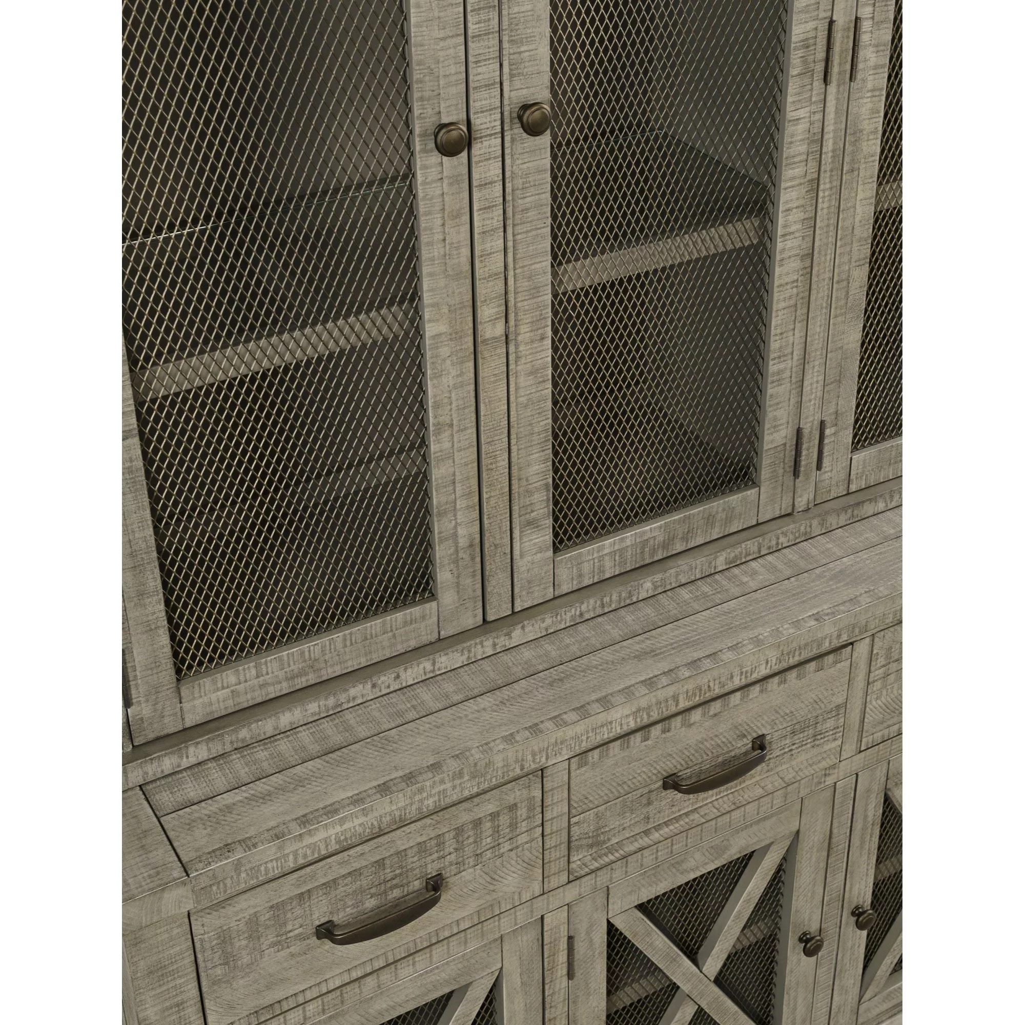 Jofran Telluride Rustic Distressed Pine Sideboard Buffet Hutch with LED Lights