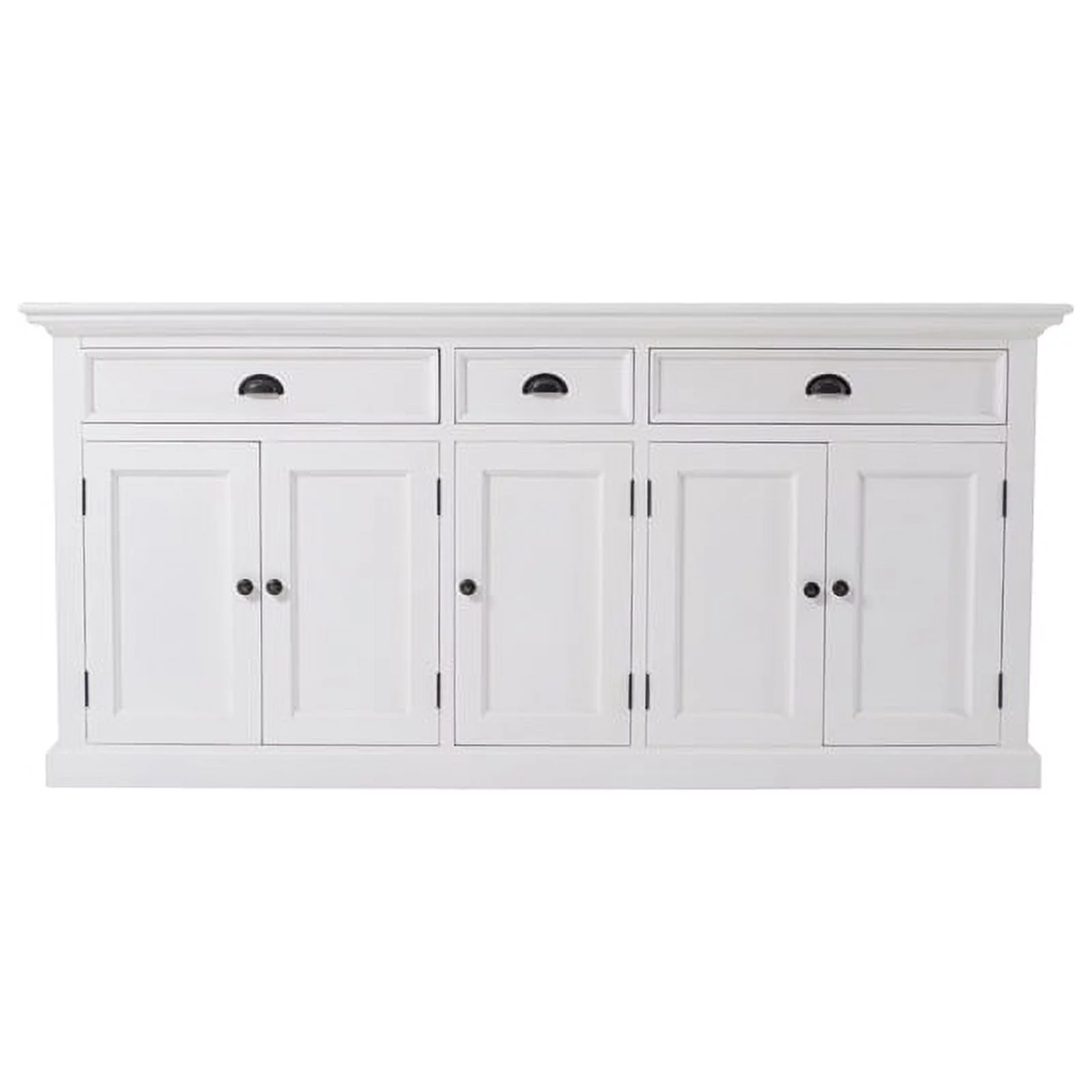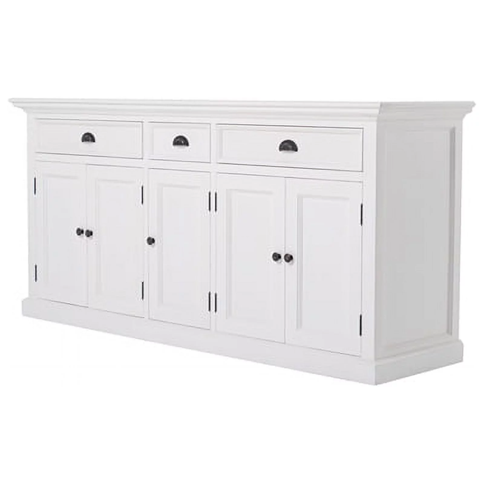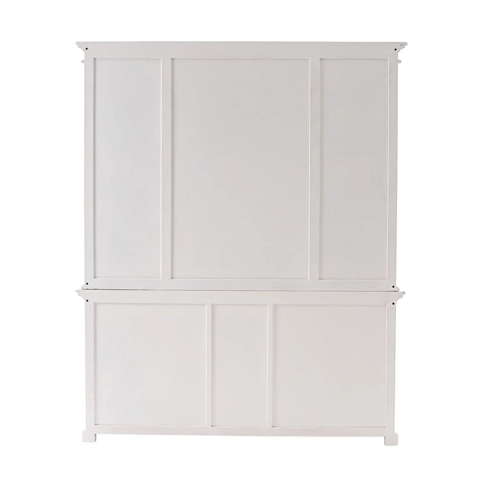 Bowery Hill Mahogany Wood Kitchen Hutch Cabinet with 5 Doors 3 Drawers in White