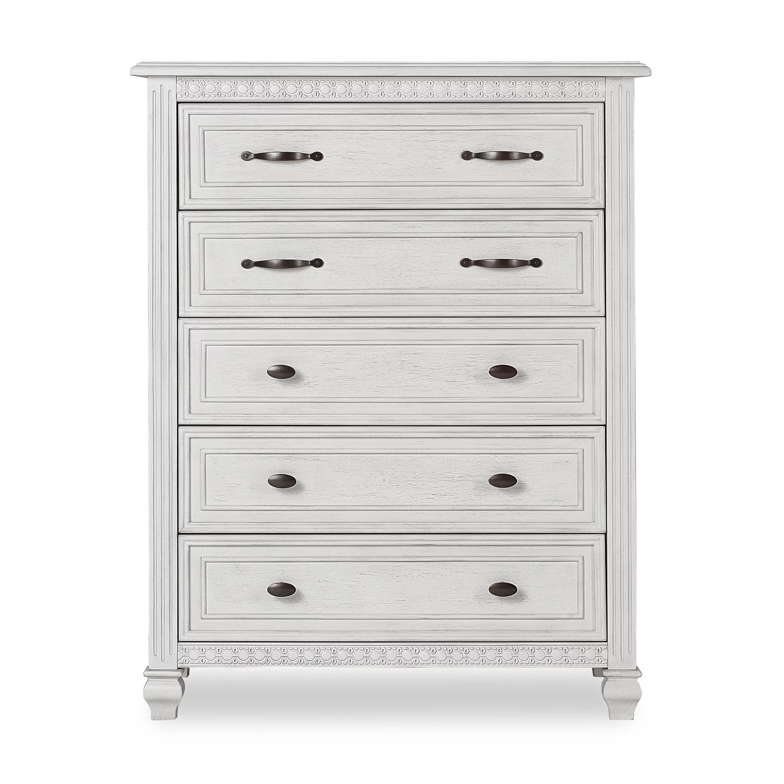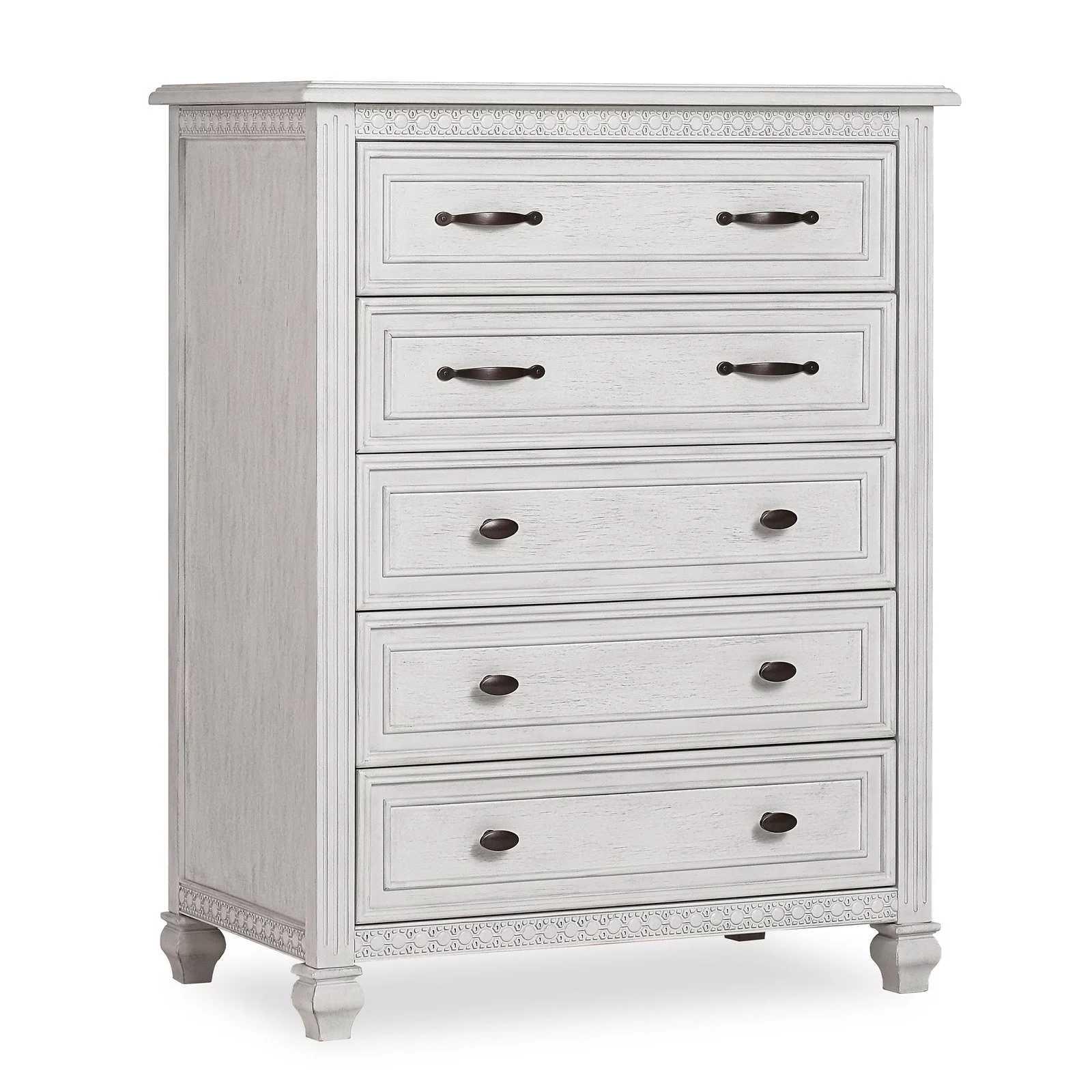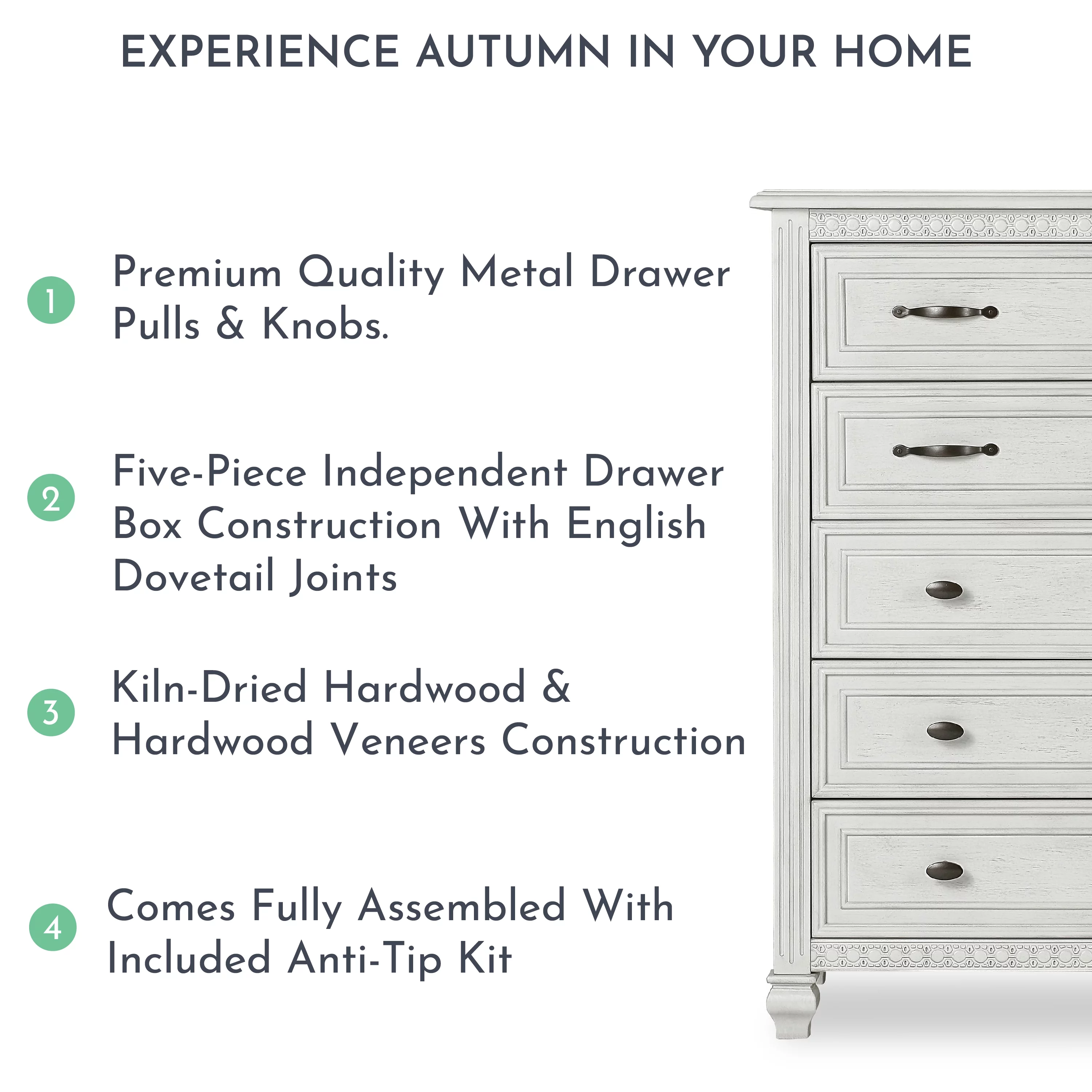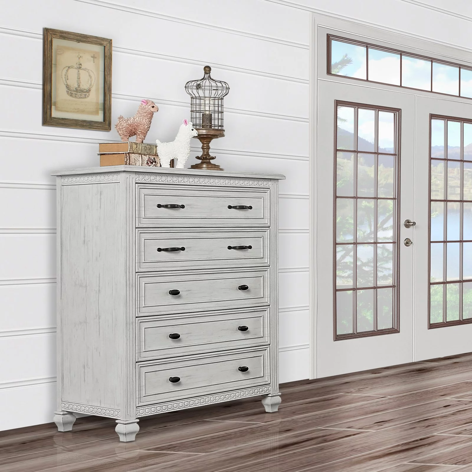 Bowery Hill Mahogany Wood Kitchen Hutch Cabinet with 5 Doors 3 Drawers in White