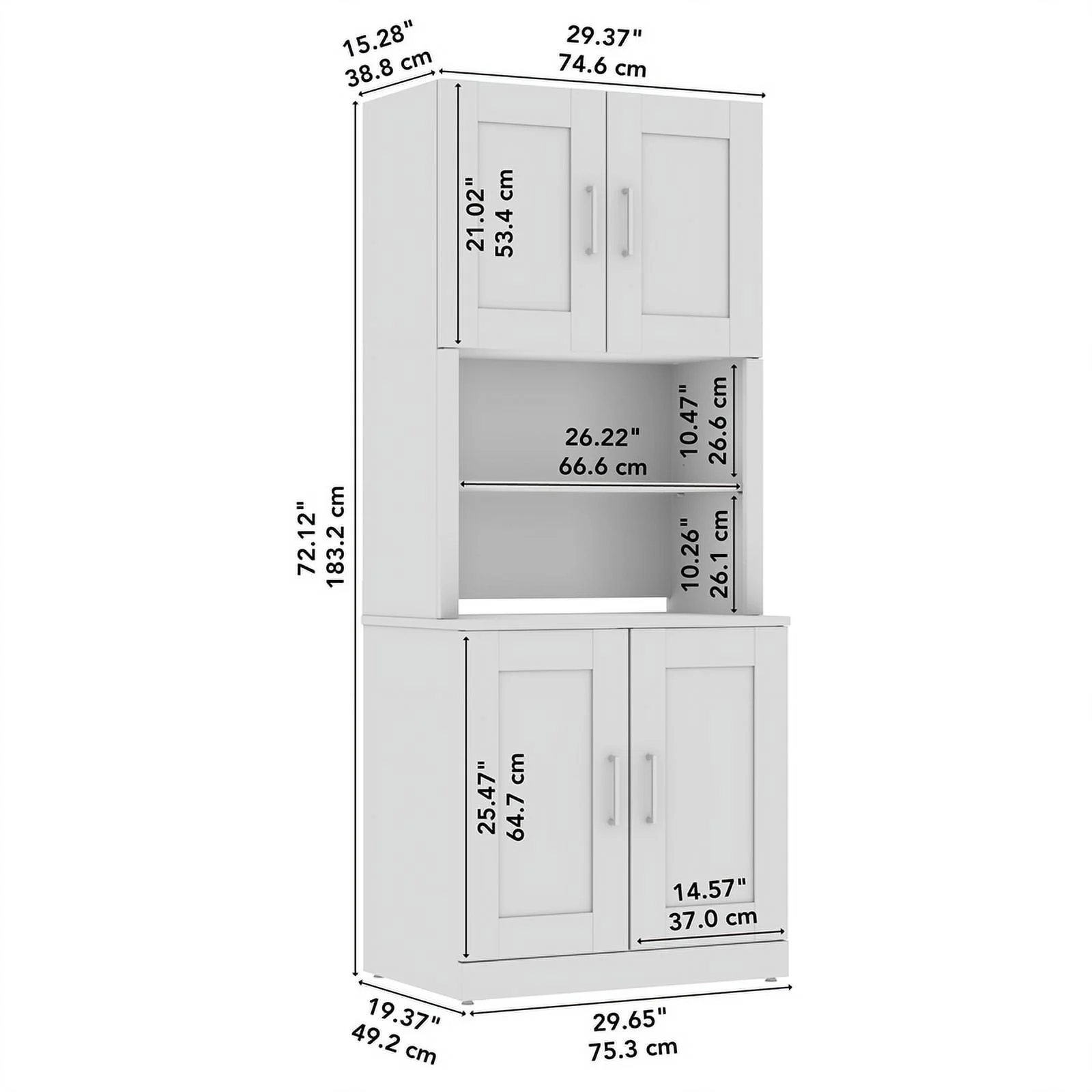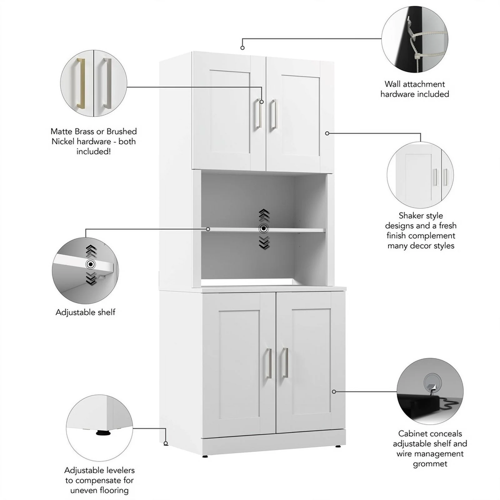 Bowery Hill Storage Cabinet with Doors and Hutch in White - Engineered Wood