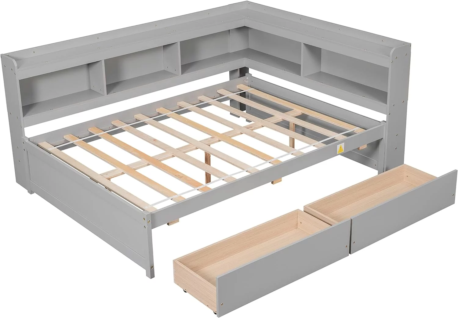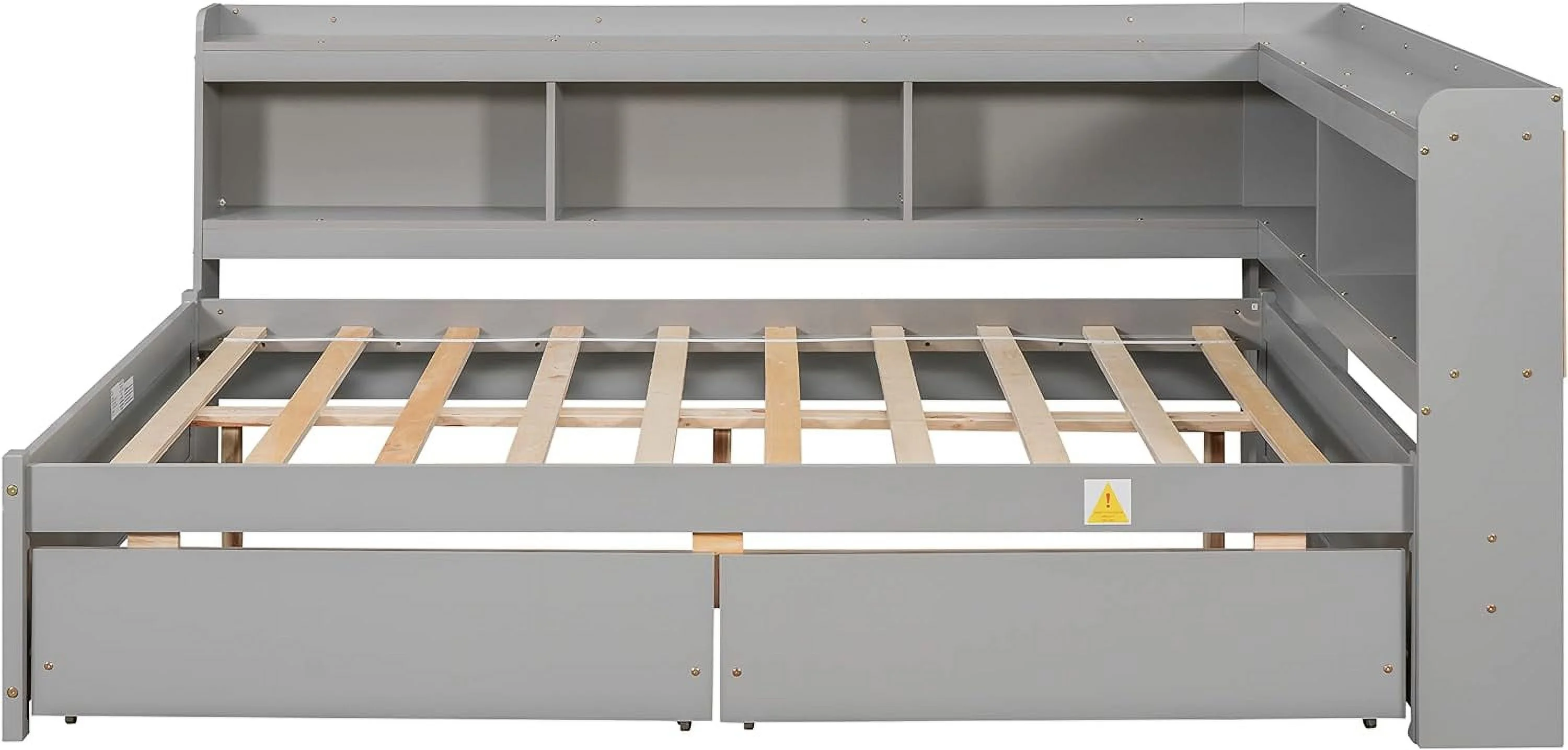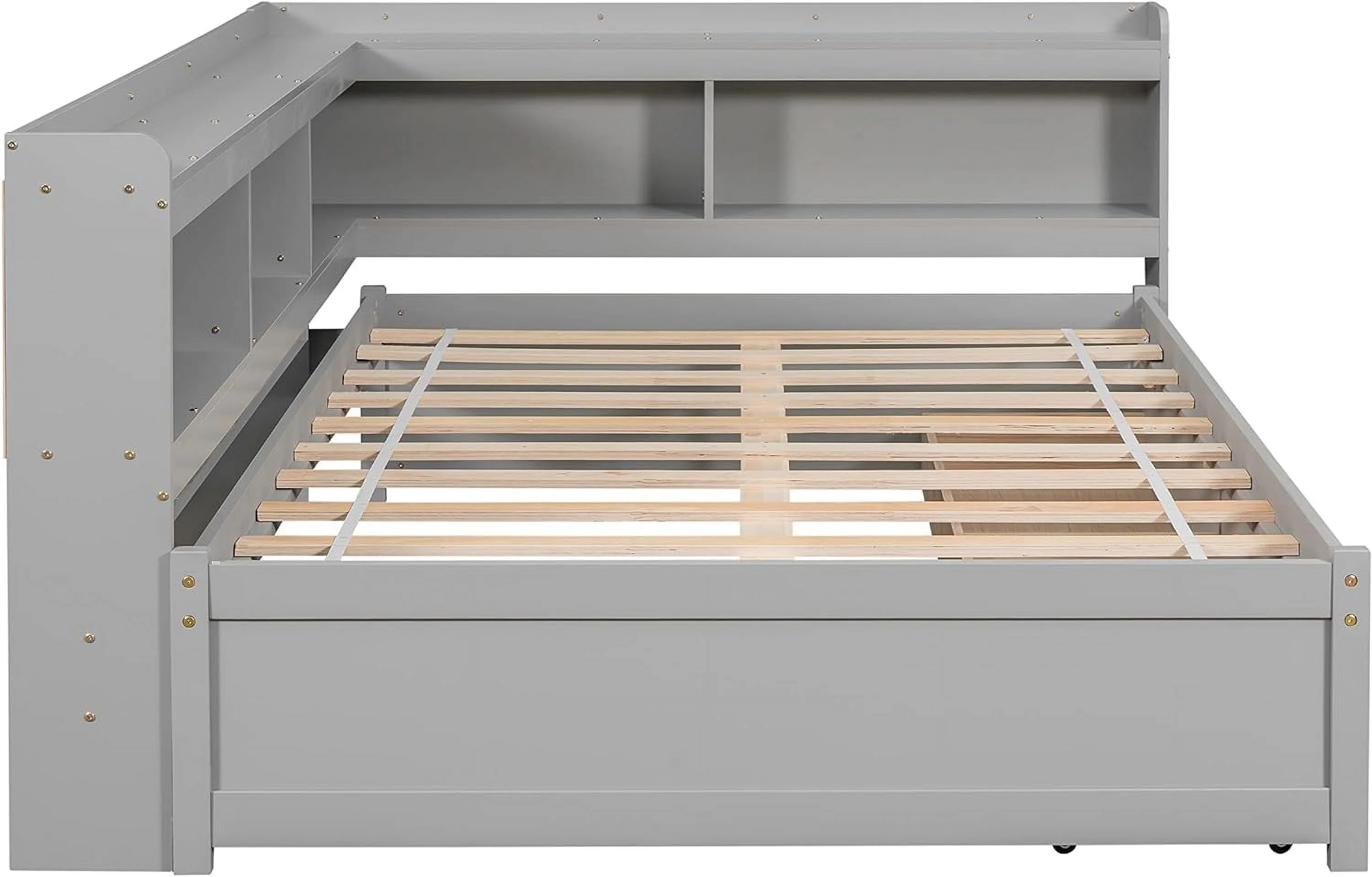 Full Size Daybed, Daybed Wih A rudle, Wood Bed Frame Wih Size rudle Bed For Kids/Gues Bedroom, o Box Sprig Required, Grey