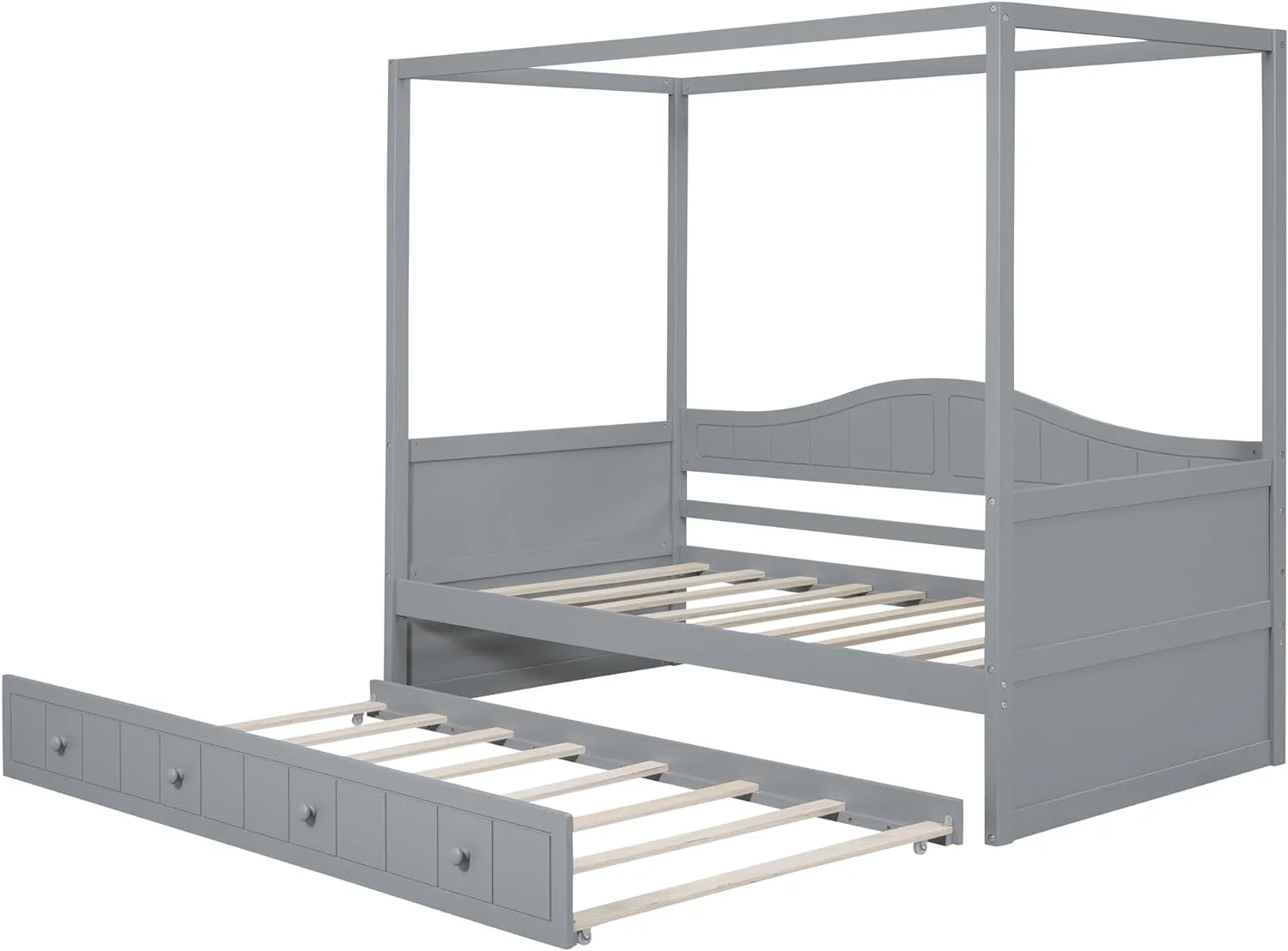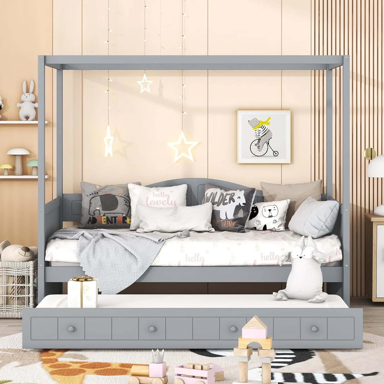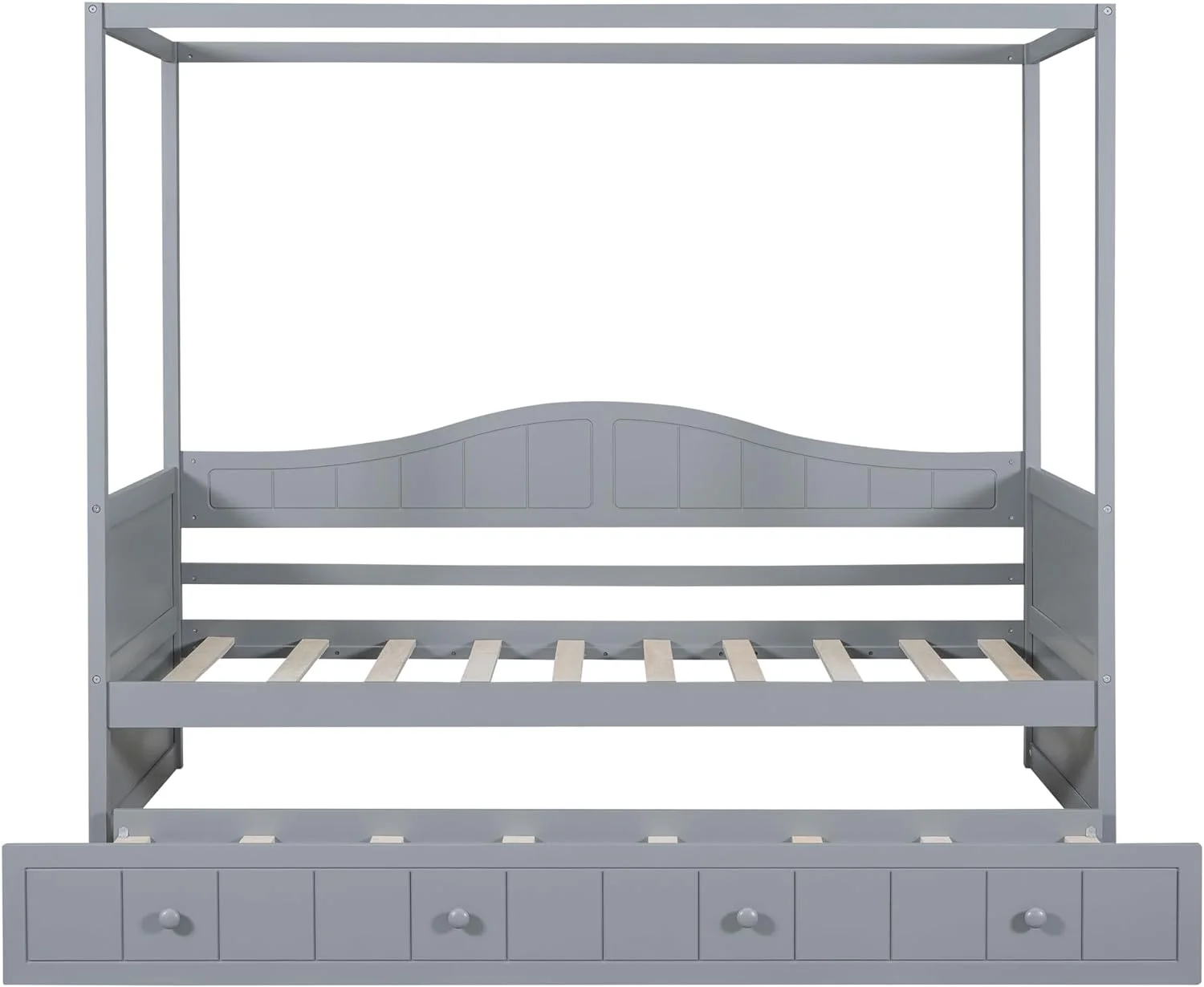 Daybed With Trundle Wood Day Bed Frame For Living Room Bedroom Dual-Use Sofa Beds For Kids Guests Sleepovers, Size, Gray