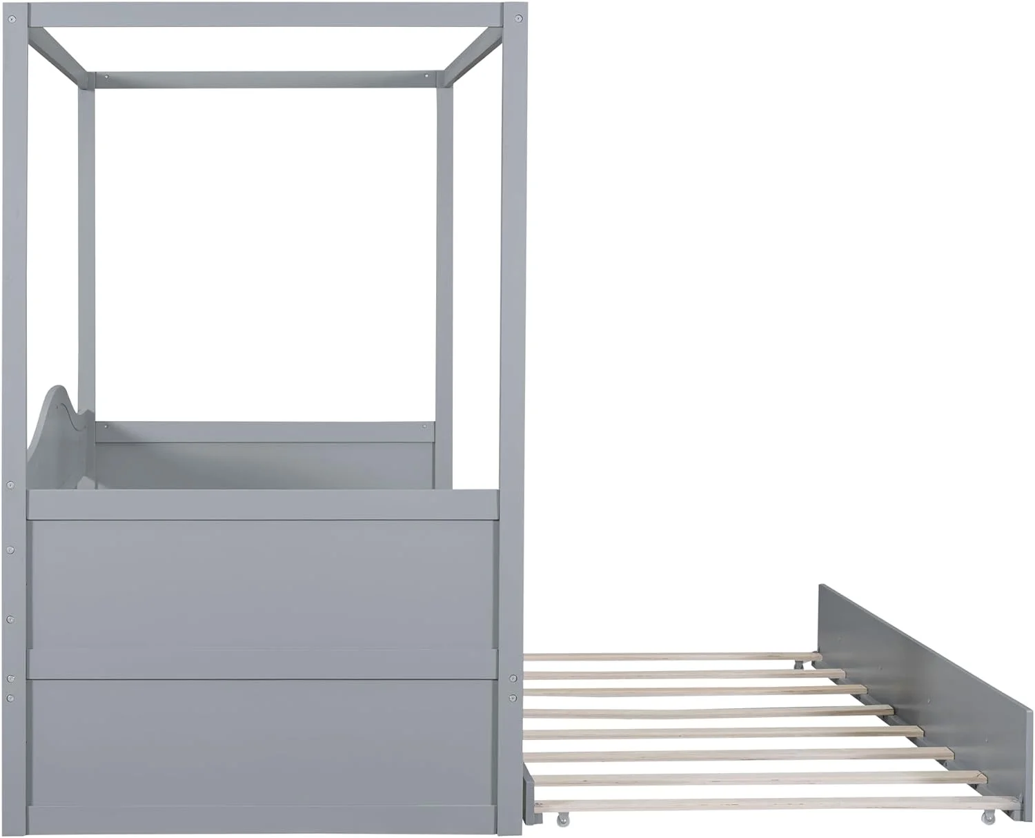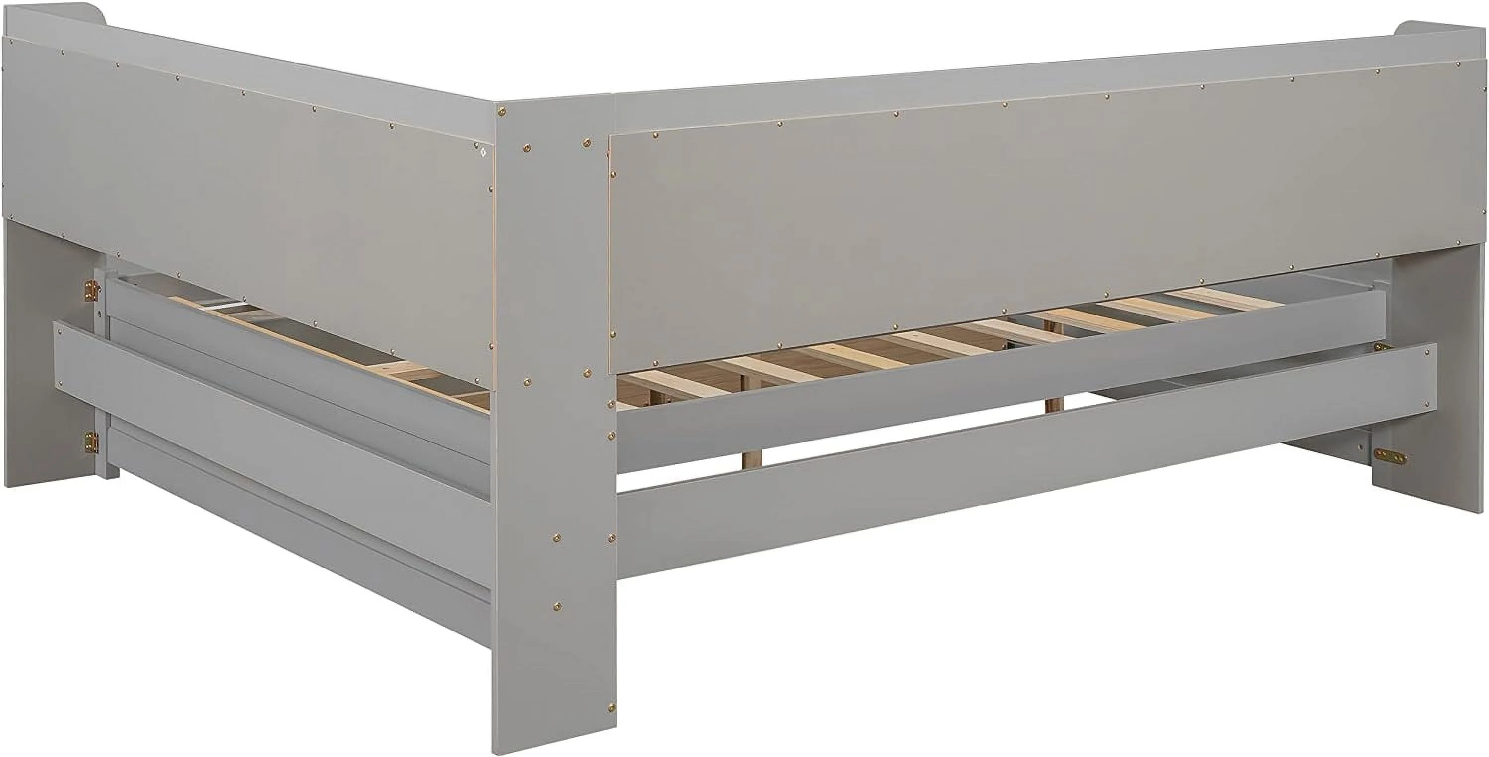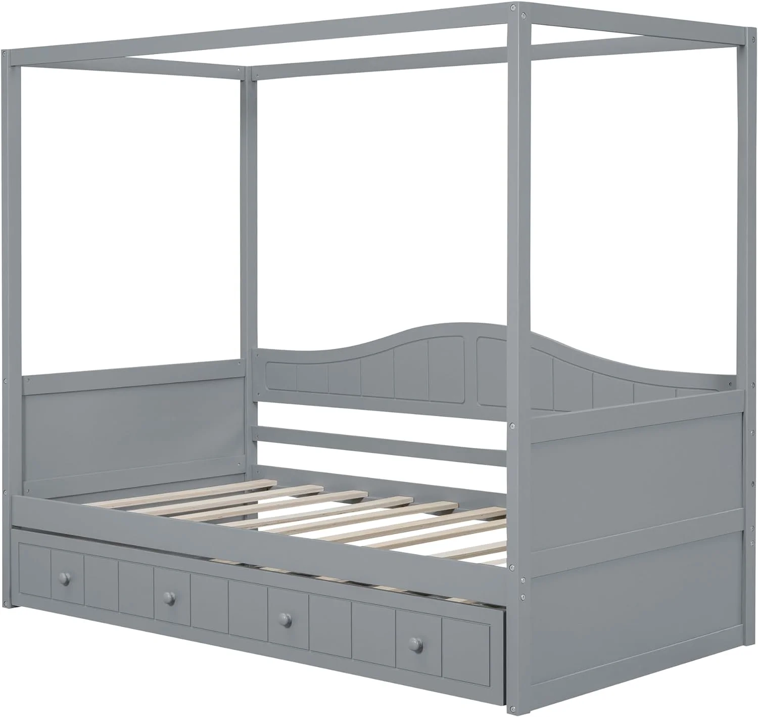 Daybed With Trundle Wood Day Bed Frame For Living Room Bedroom Dual-Use Sofa Beds For Kids Guests Sleepovers, Size, Gray