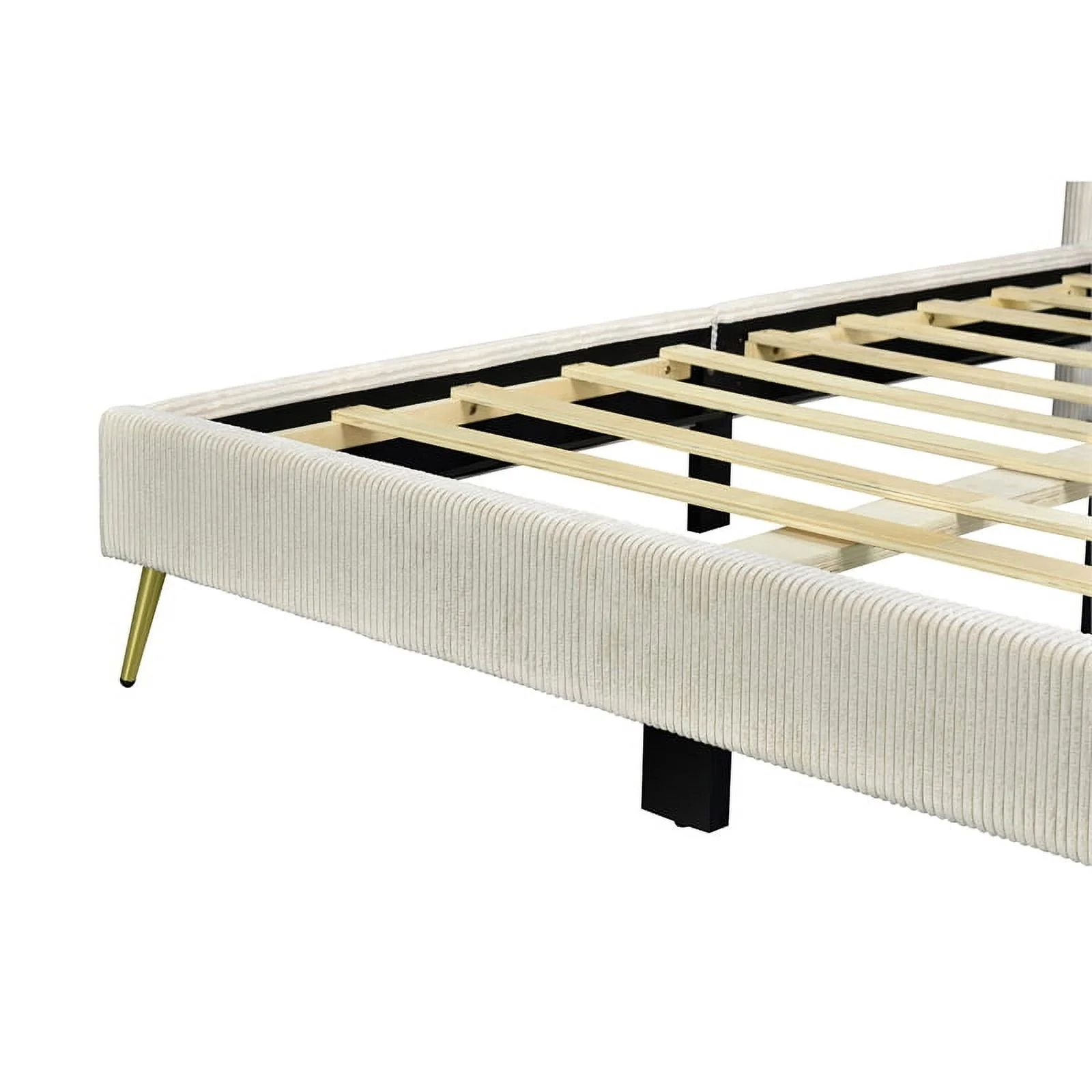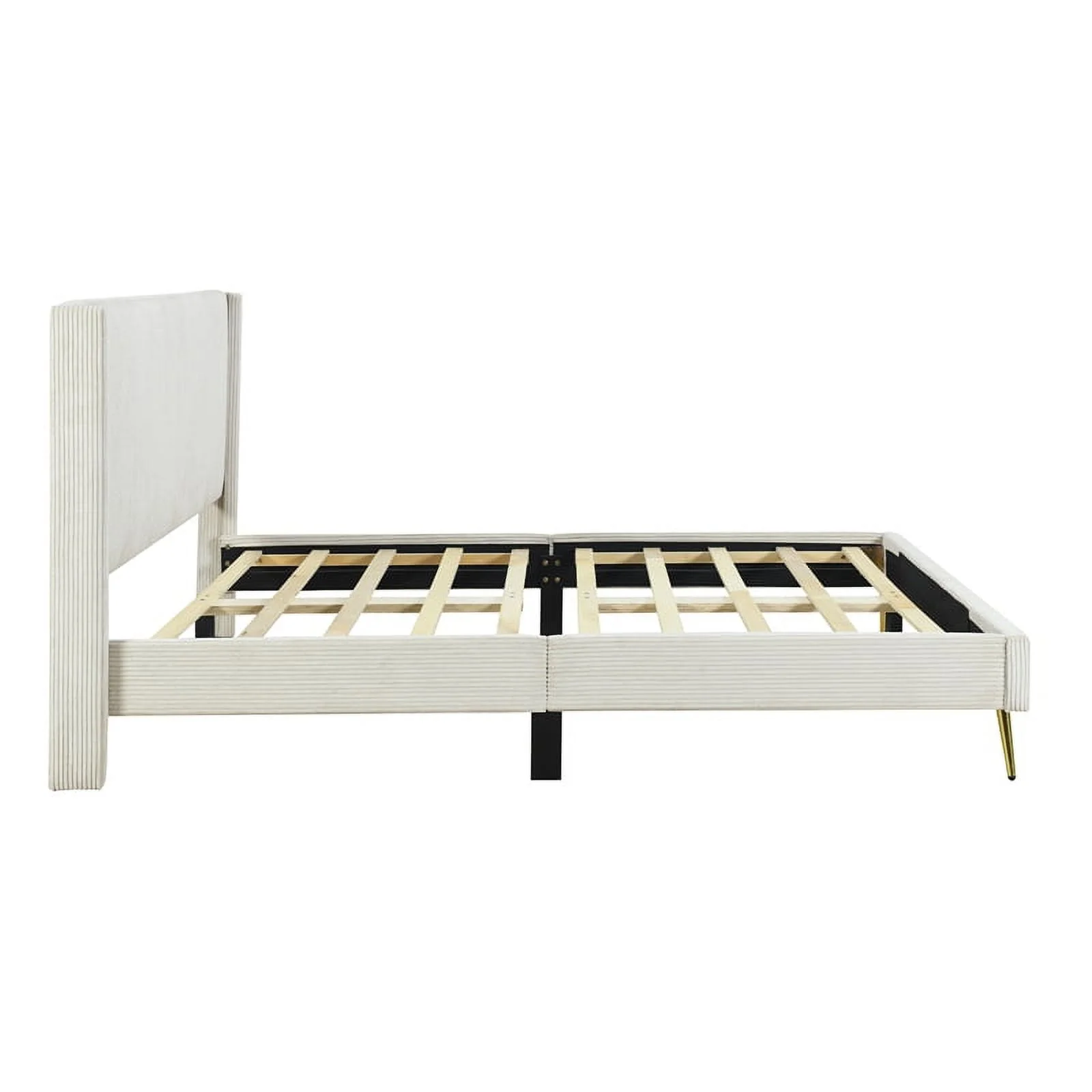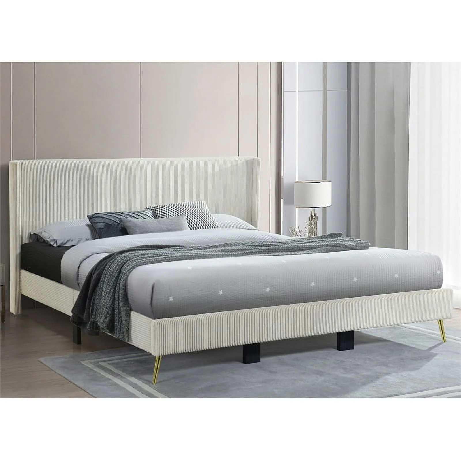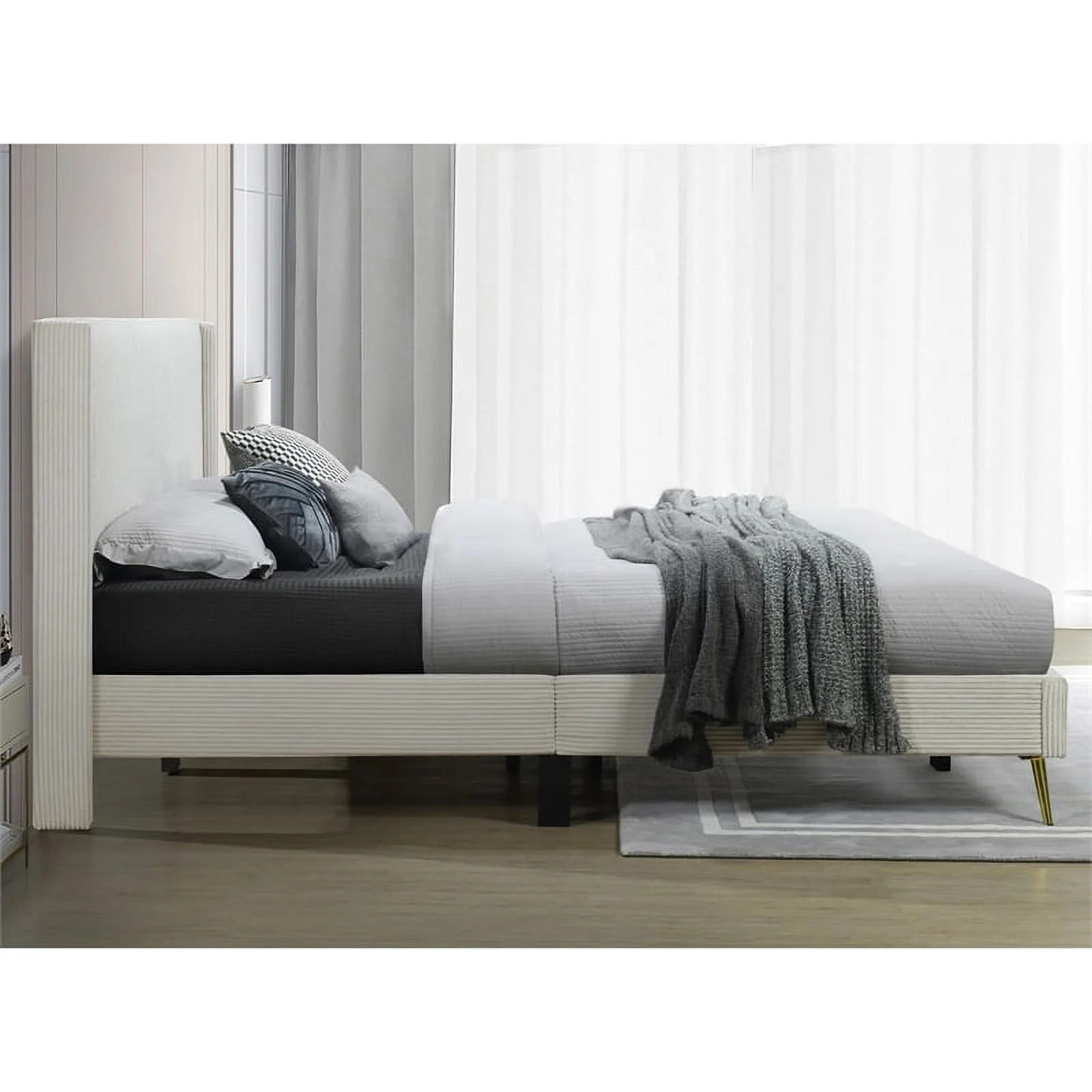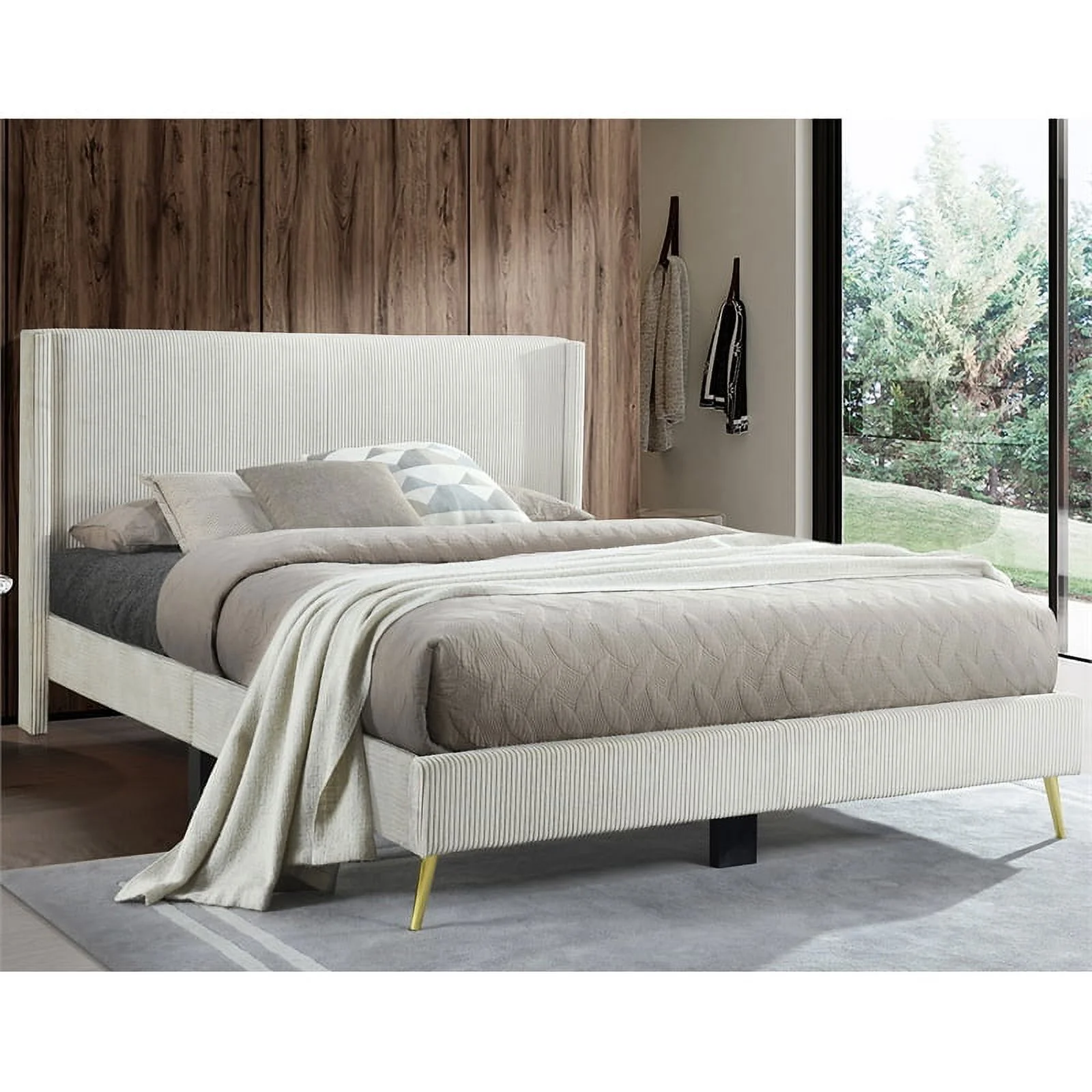 Better Home Products Vita Solid Wood & Velvet Full Size Platform Bed in Cream