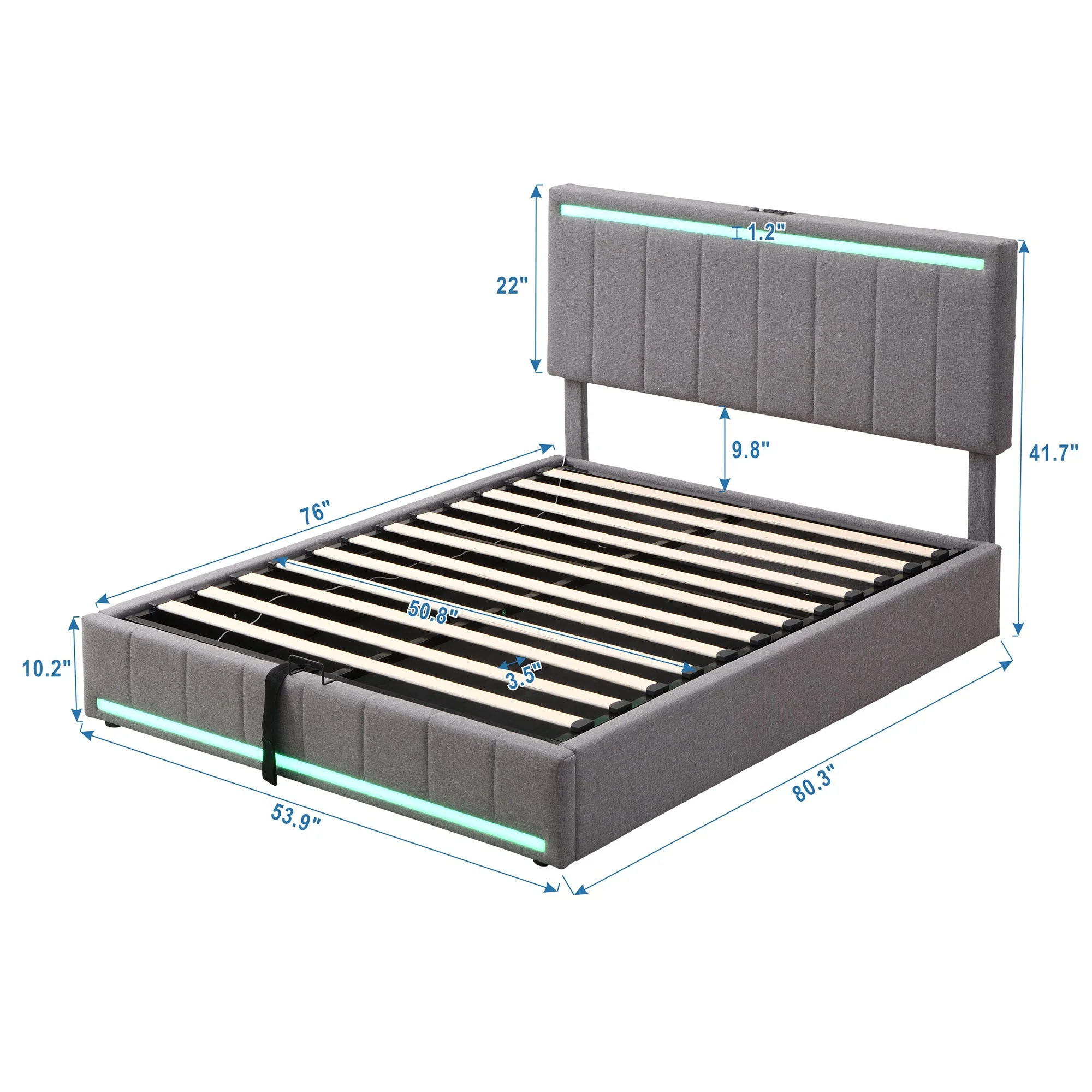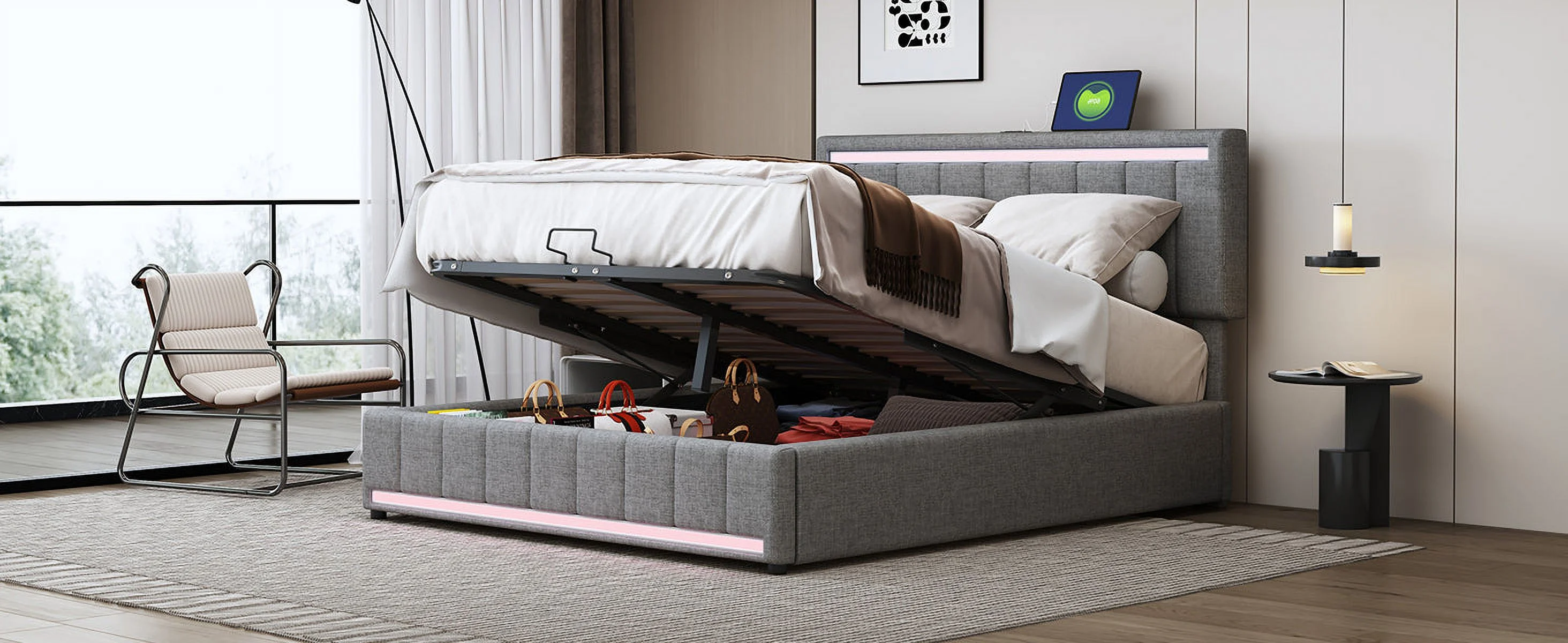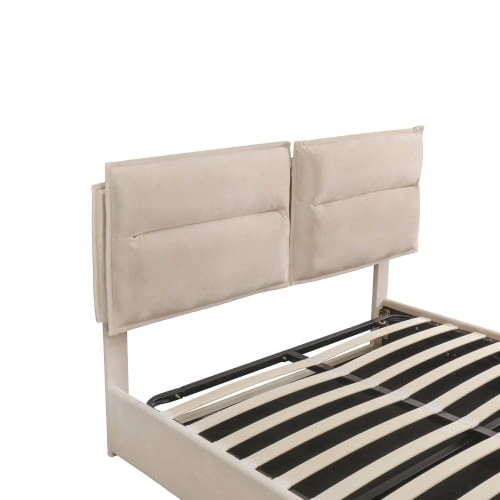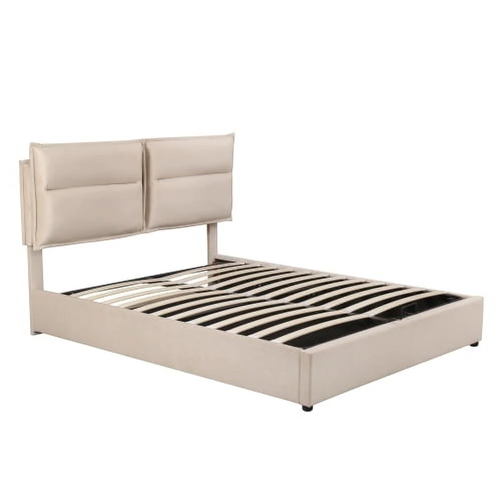Upholstered Platform Bed With A Hydraulic Storage System, Queen Size, Beige