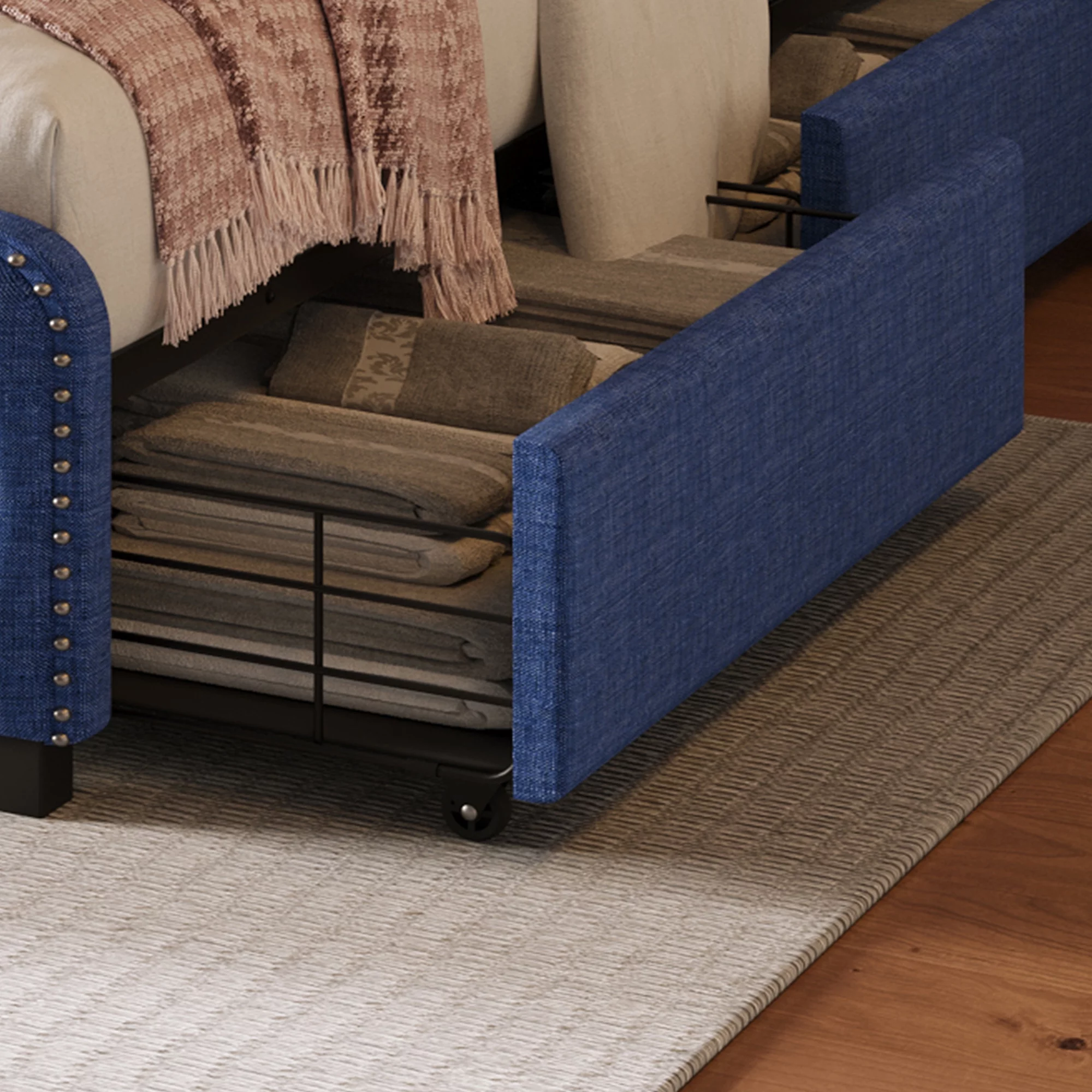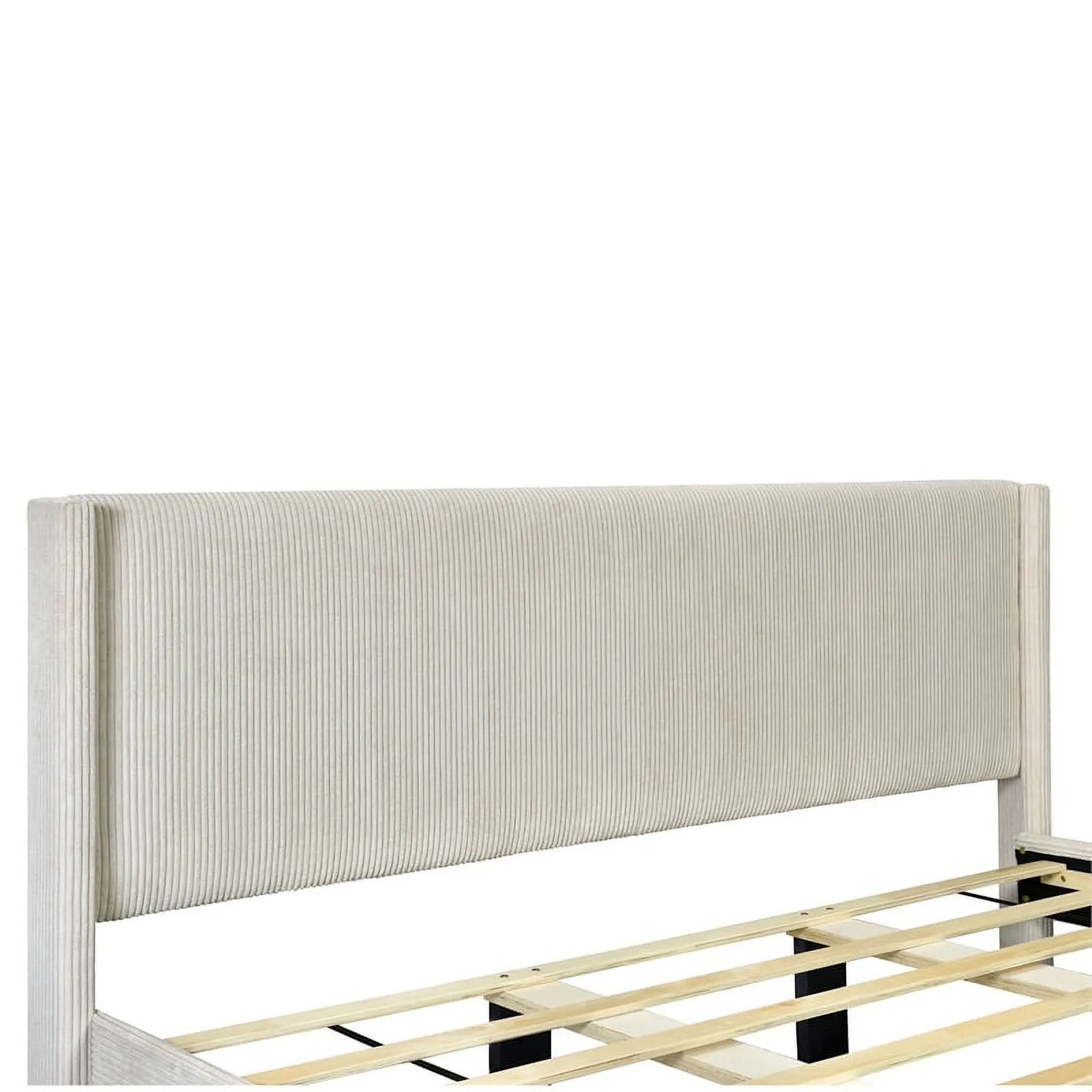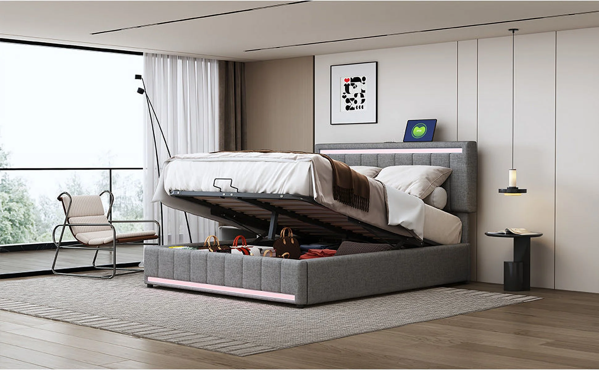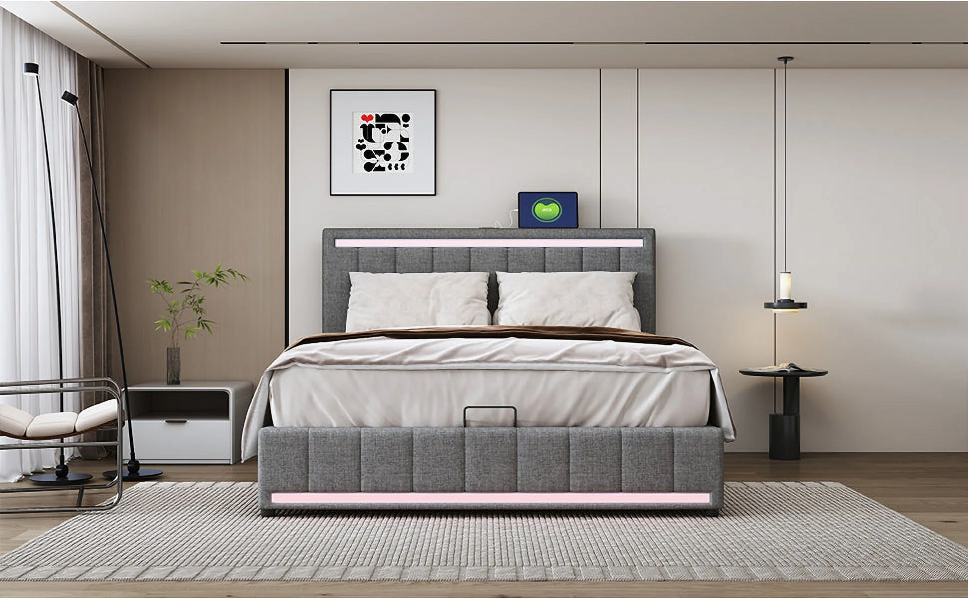 Upholstered Platform Bed With A Hydraulic Storage System, Queen Size, Beige