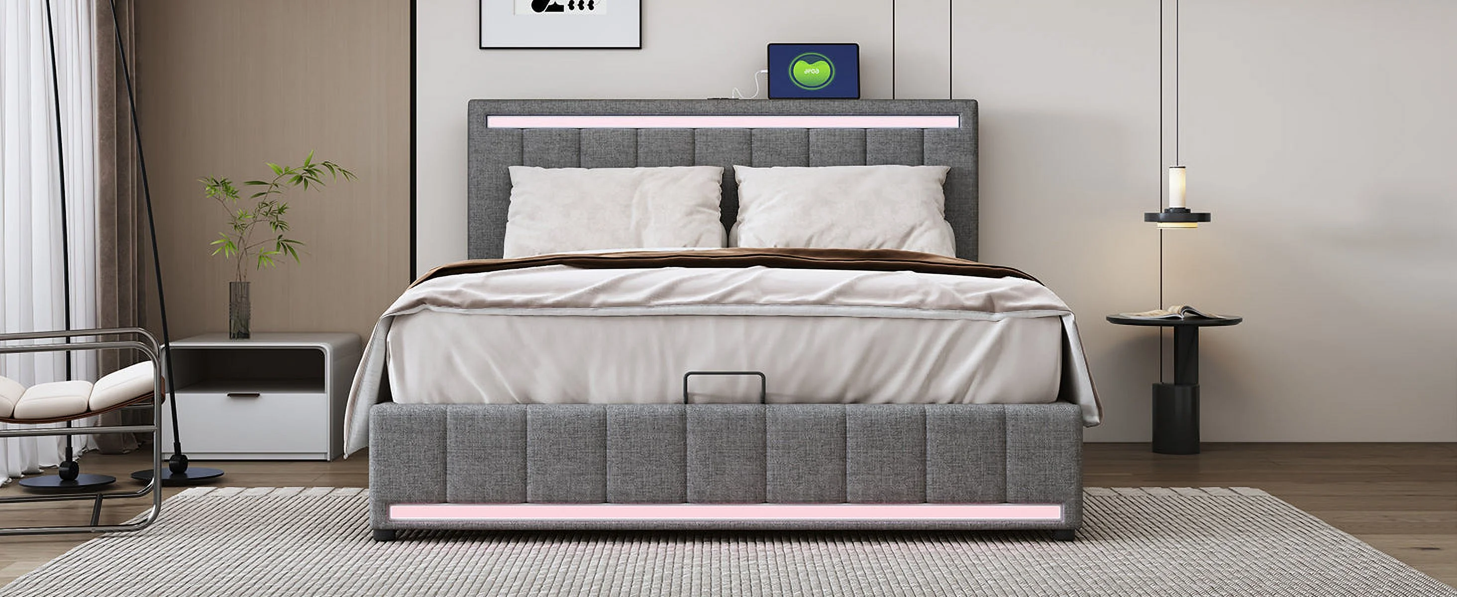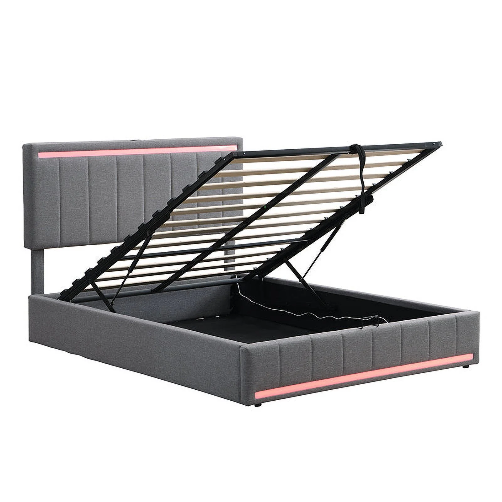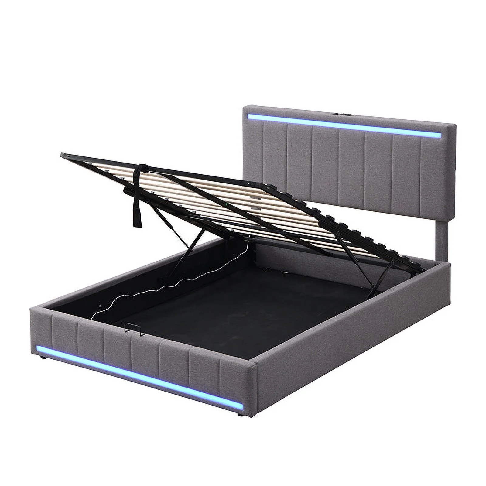 Vesper II Full Size Platform Bed with Hydraulic Storage System - Gray