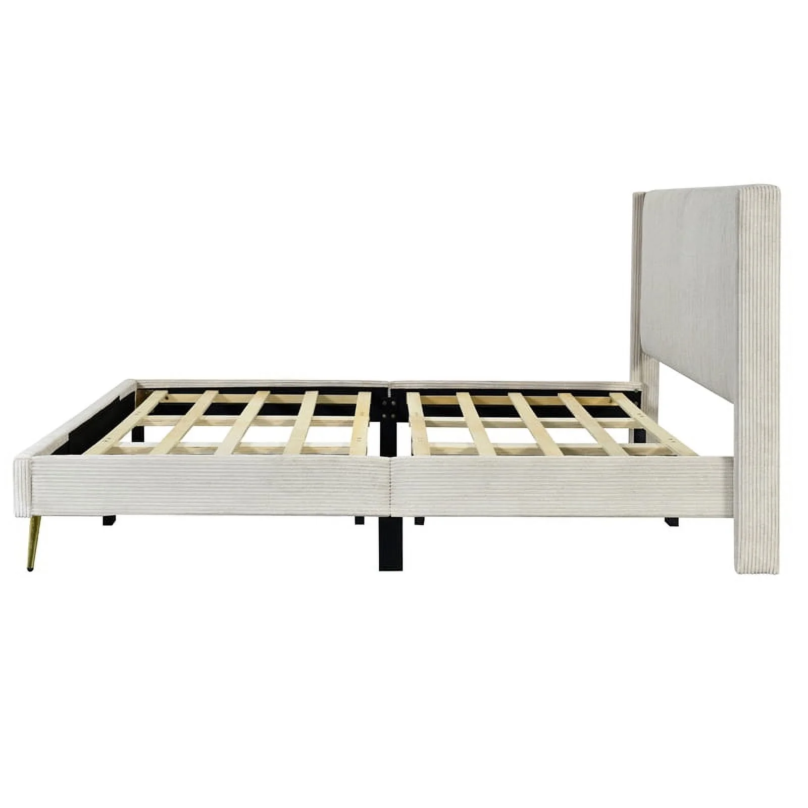 Better Home Products Vita Solid Wood & Velvet Platform King Size Bed in Cream