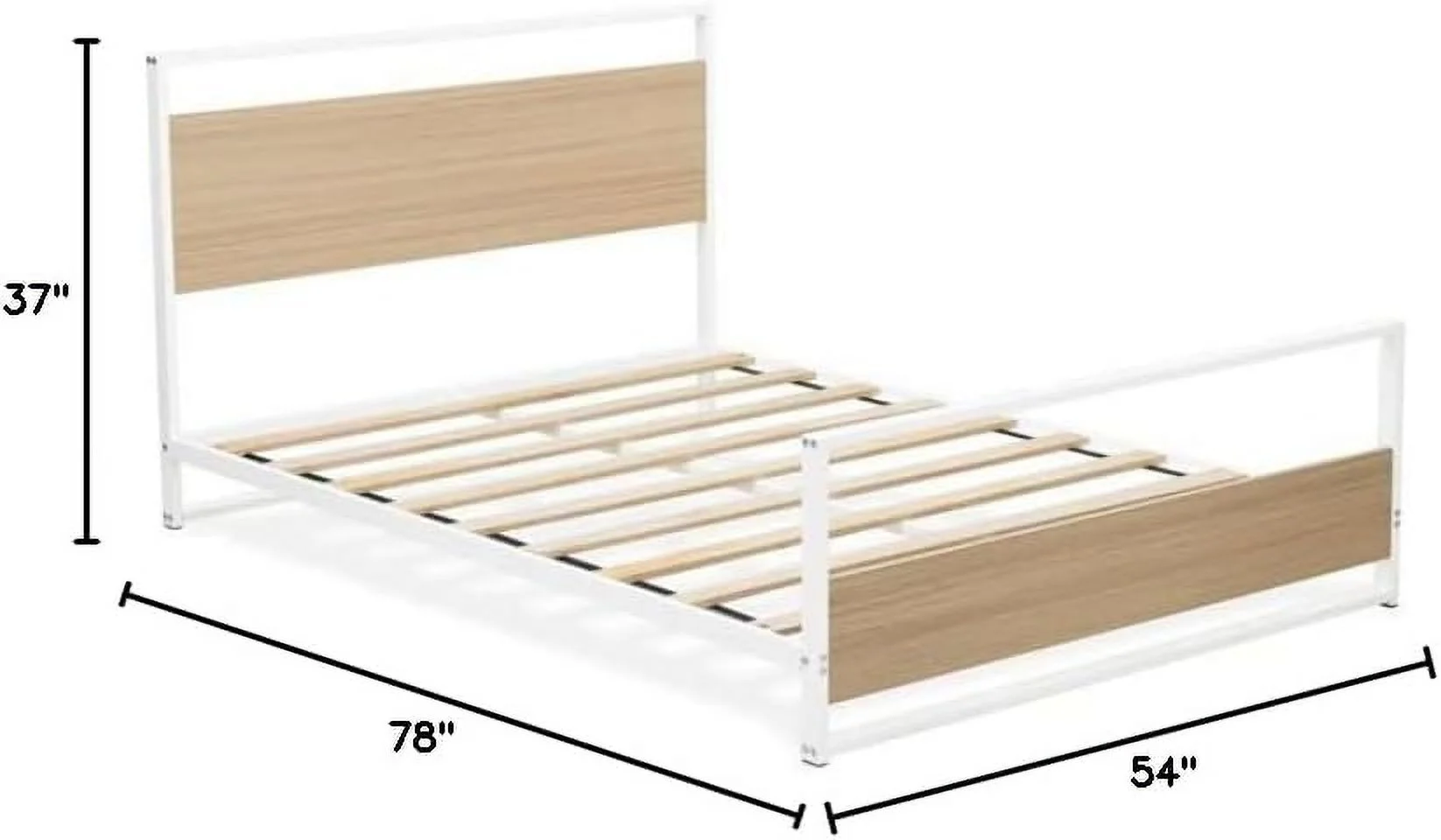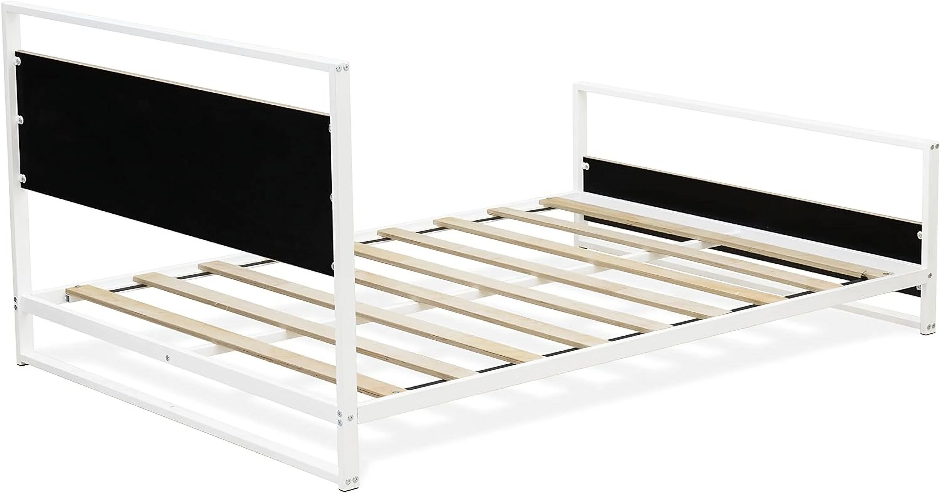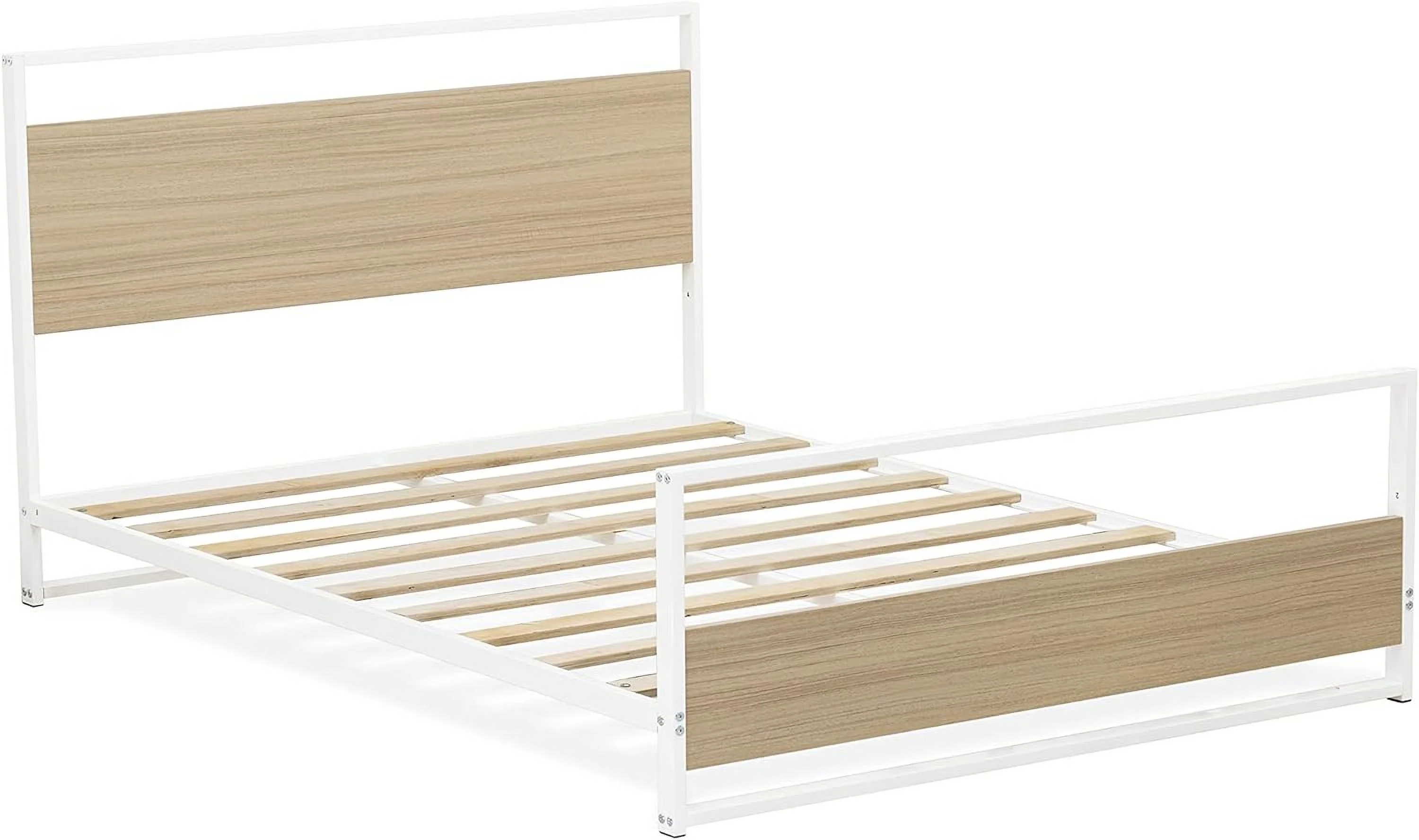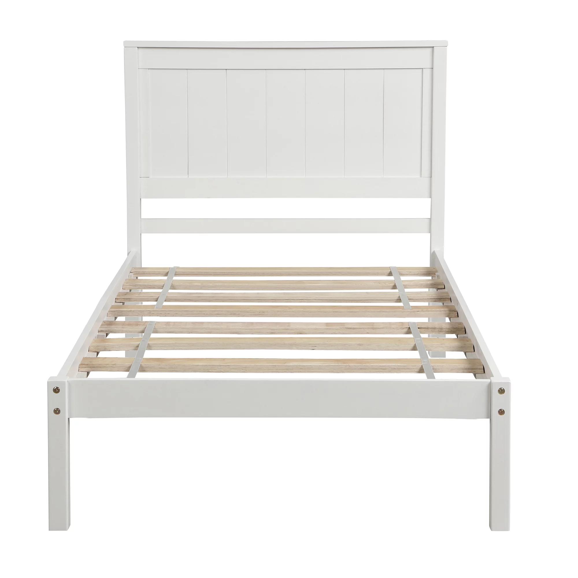 Platform Bed Frame with Headboard , Wood Slat Support , No Box Spring Needed ,Twin,White(OLD SKU:WF191418AAK)