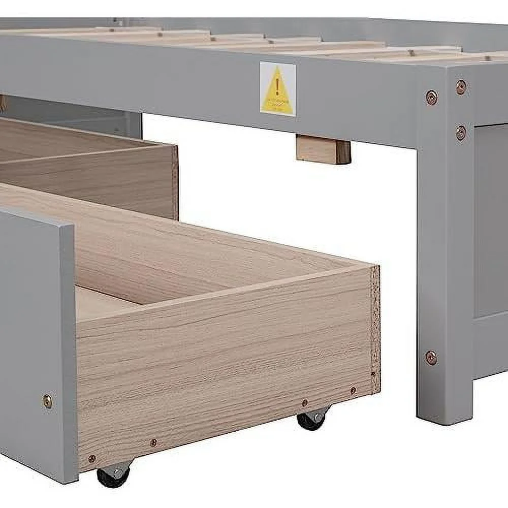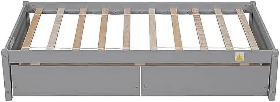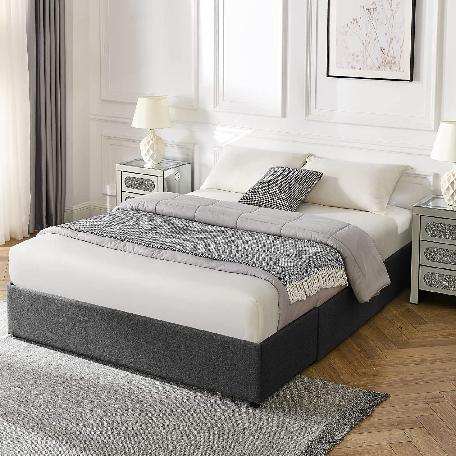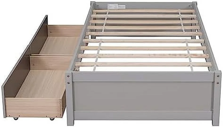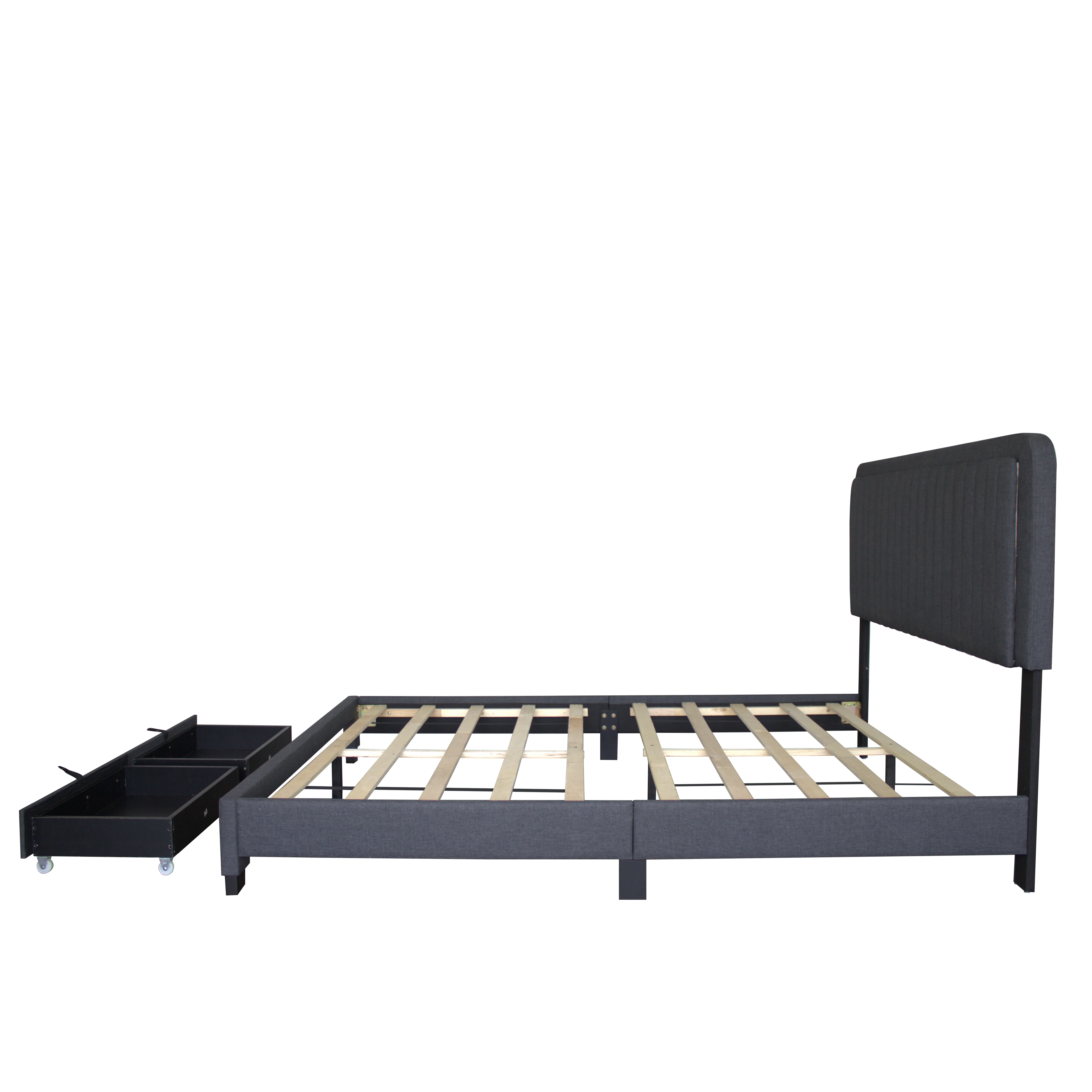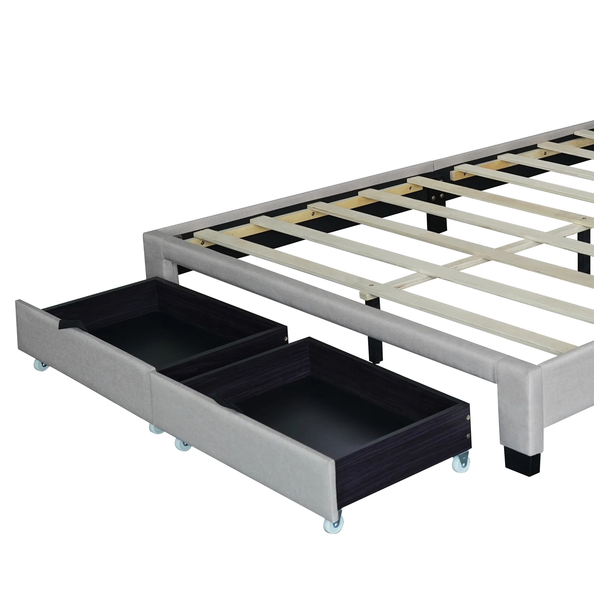 Solid Wood Size Platform Bed With Two Storage Drawers, Size Storage Platform Bed, No Box Spring Needed, Grey