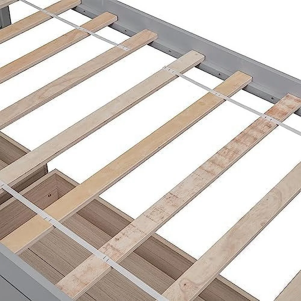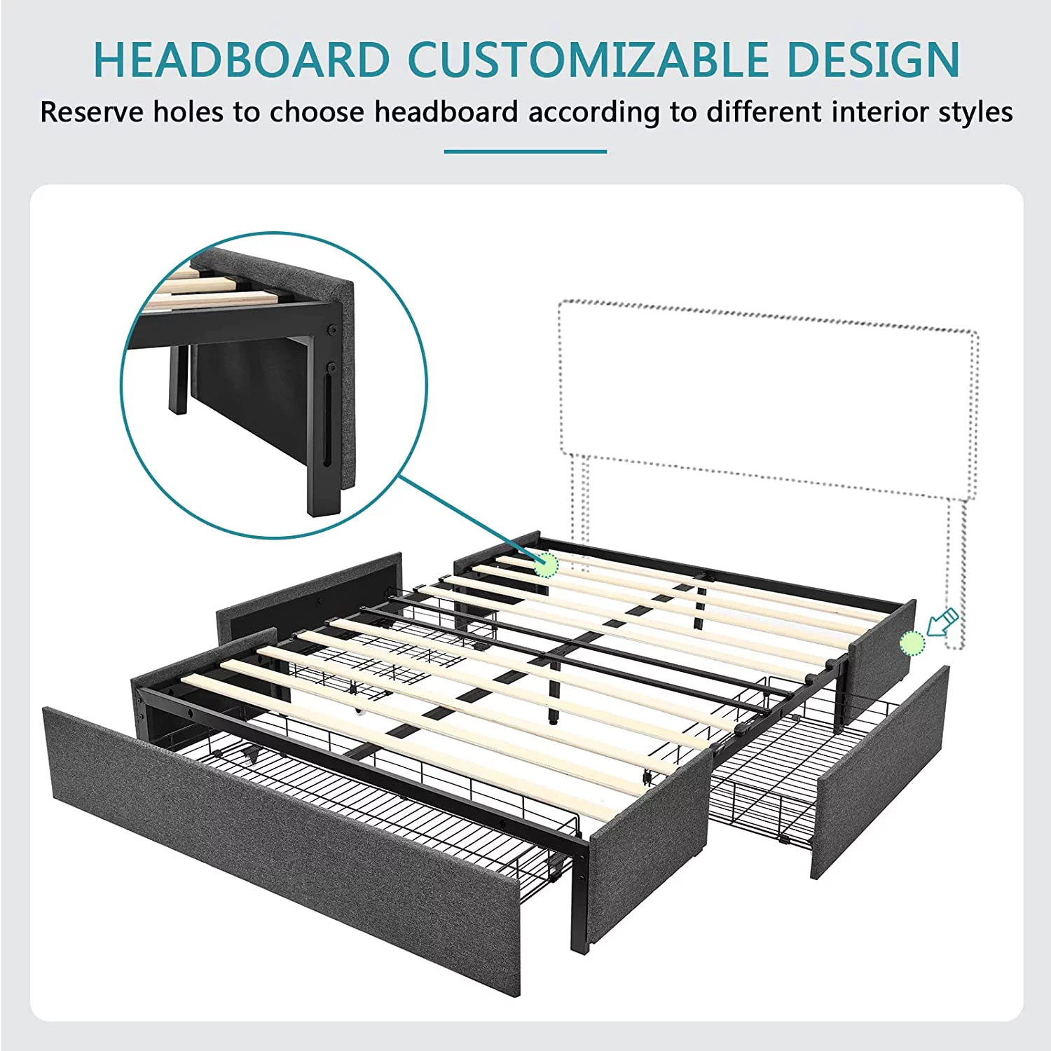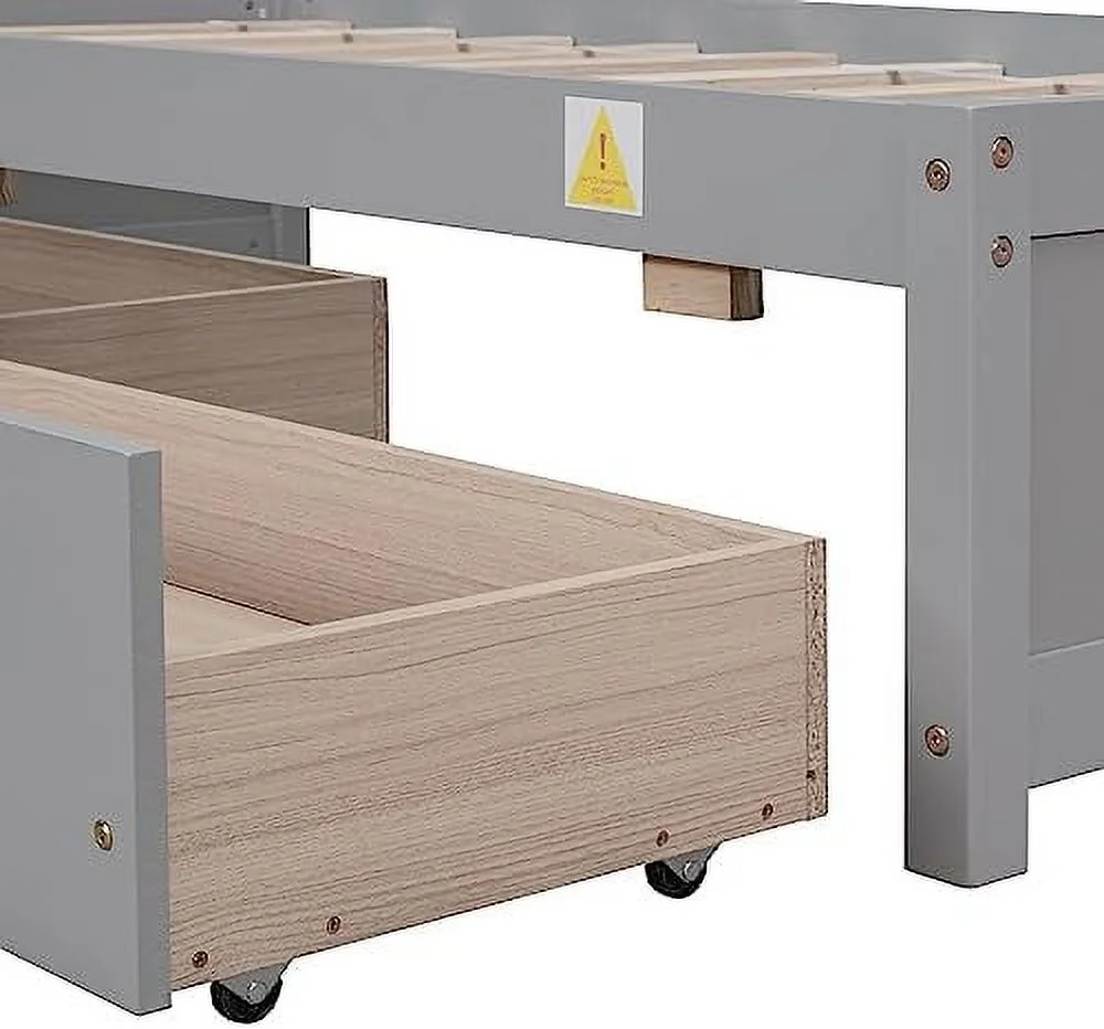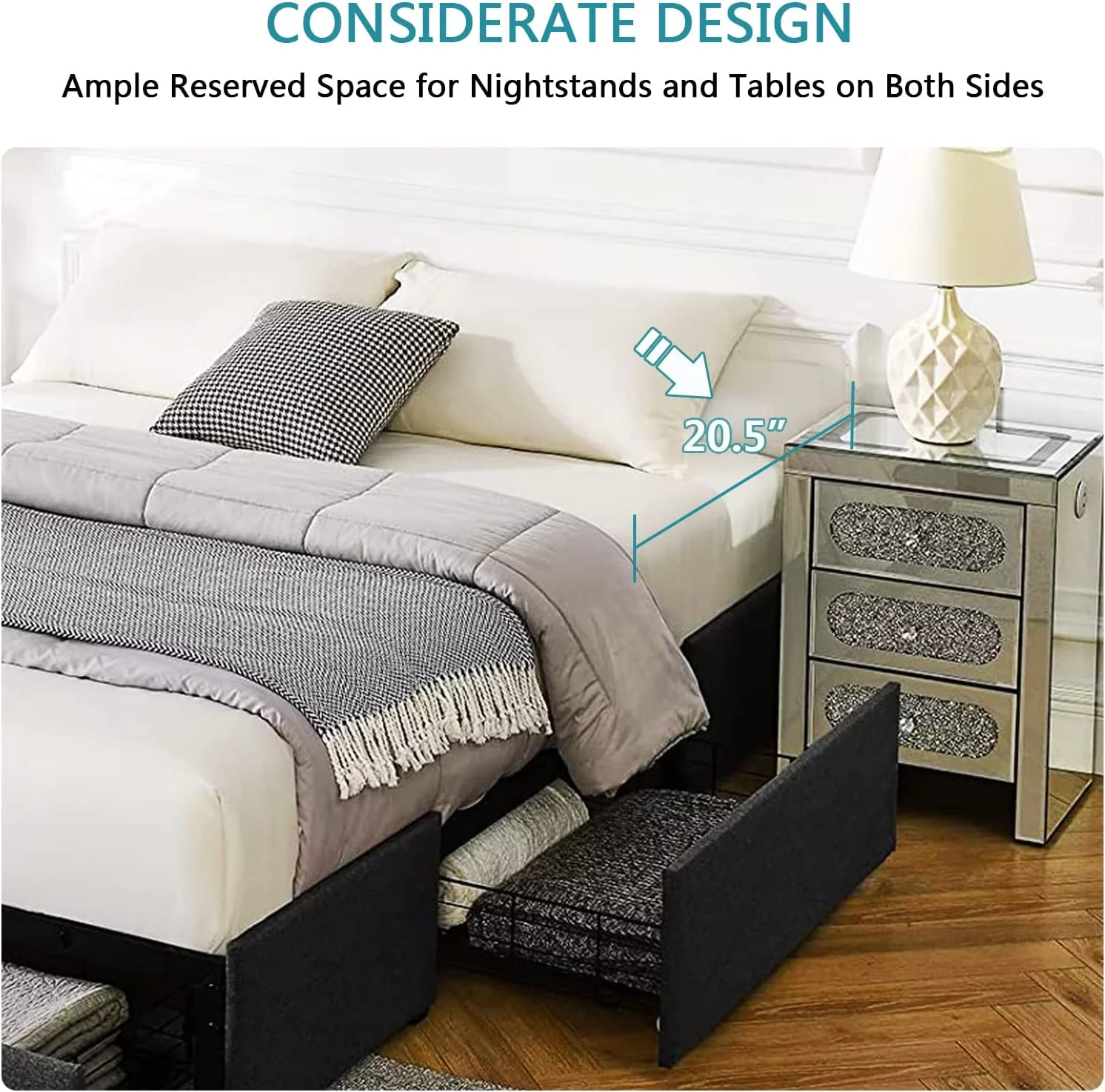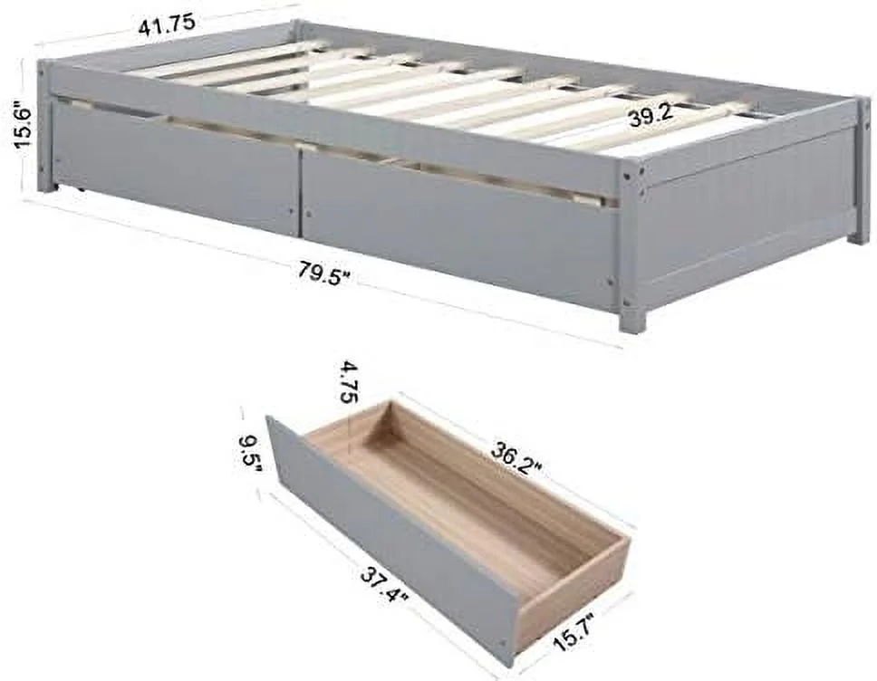 Solid Wood Size Platform Bed With Two Storage Drawers, Size Storage Platform Bed, No Box Spring Needed, Grey