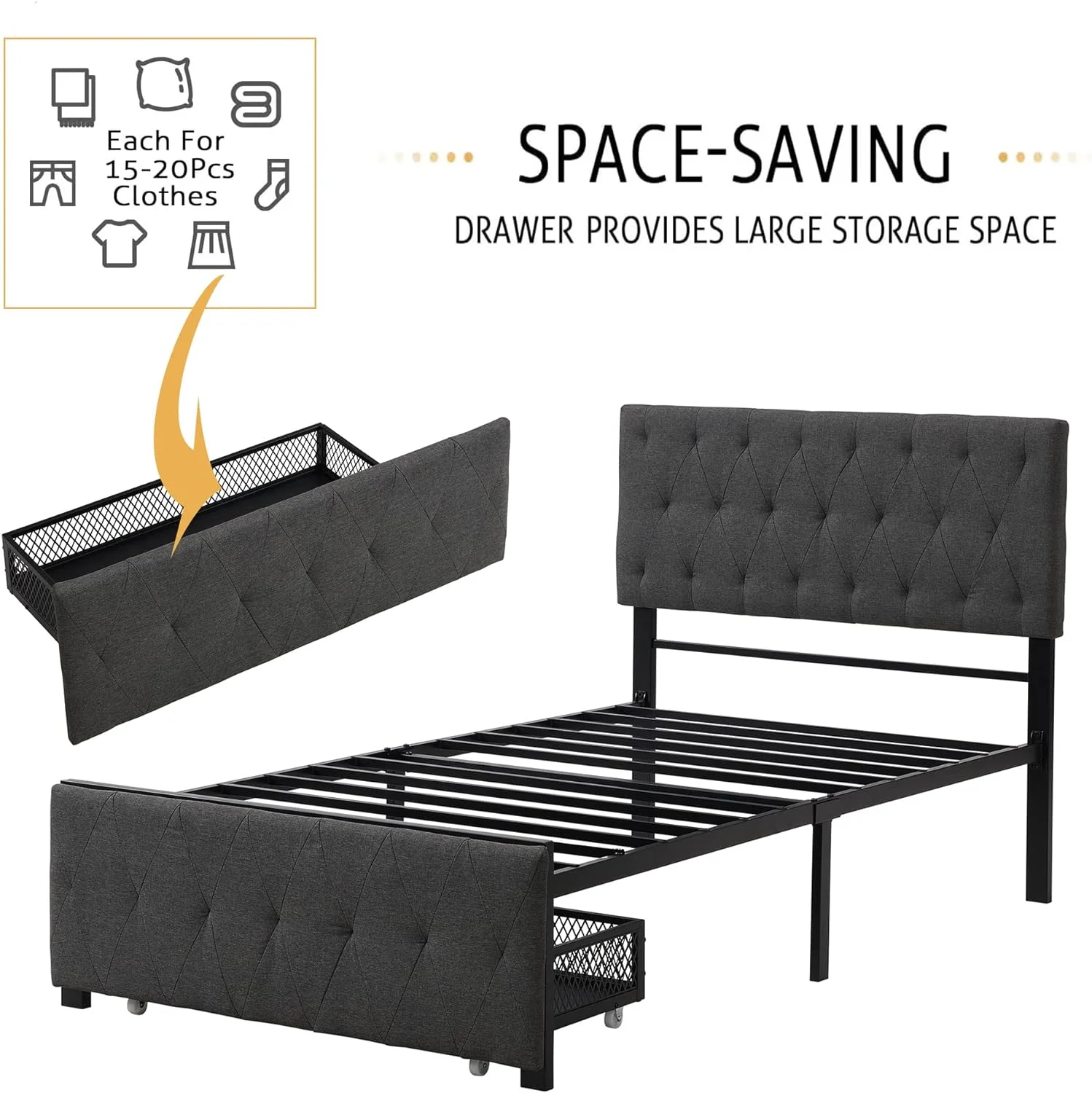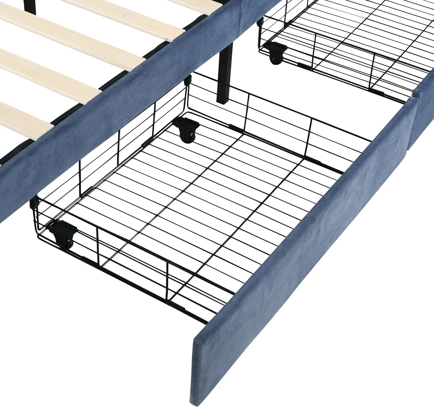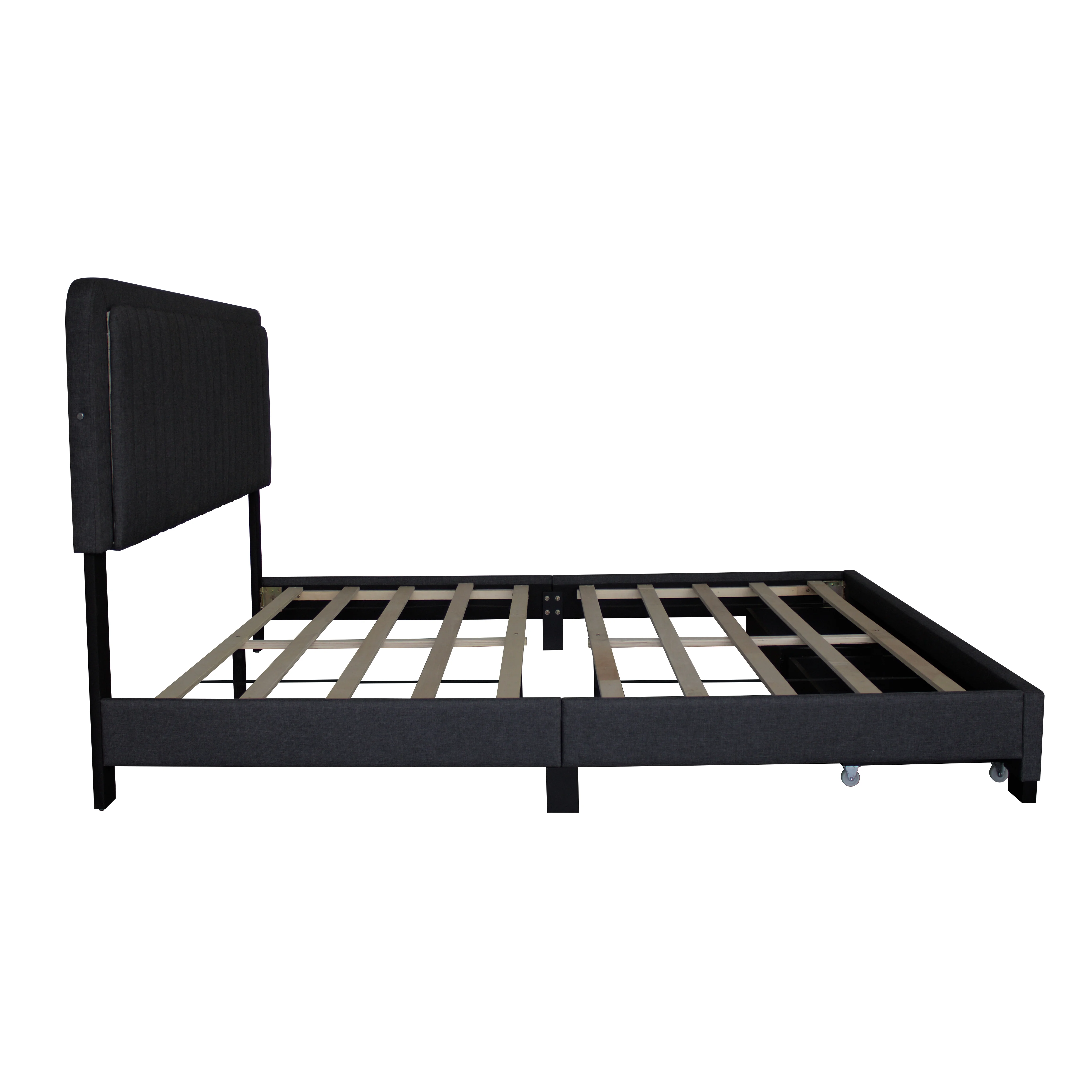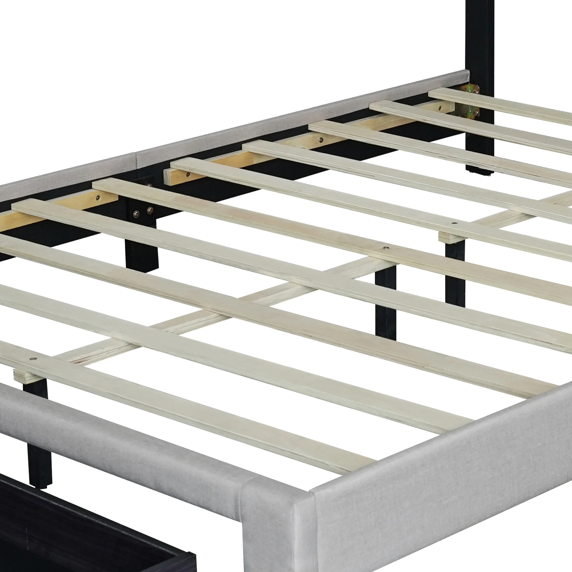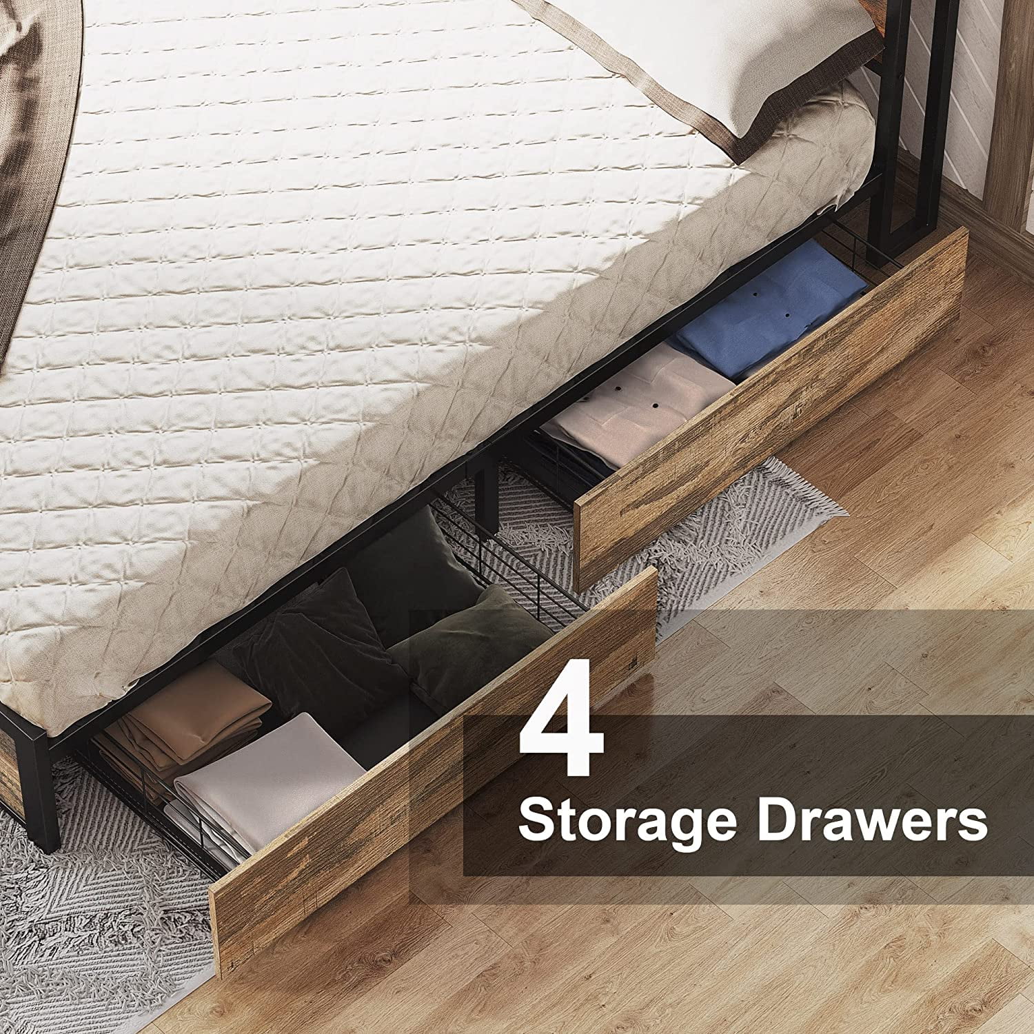 Solid Wood Size Platform Bed With Two Storage Drawers, Size Storage Platform Bed, No Box Spring Needed, Grey