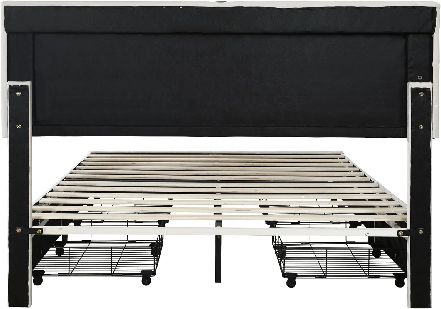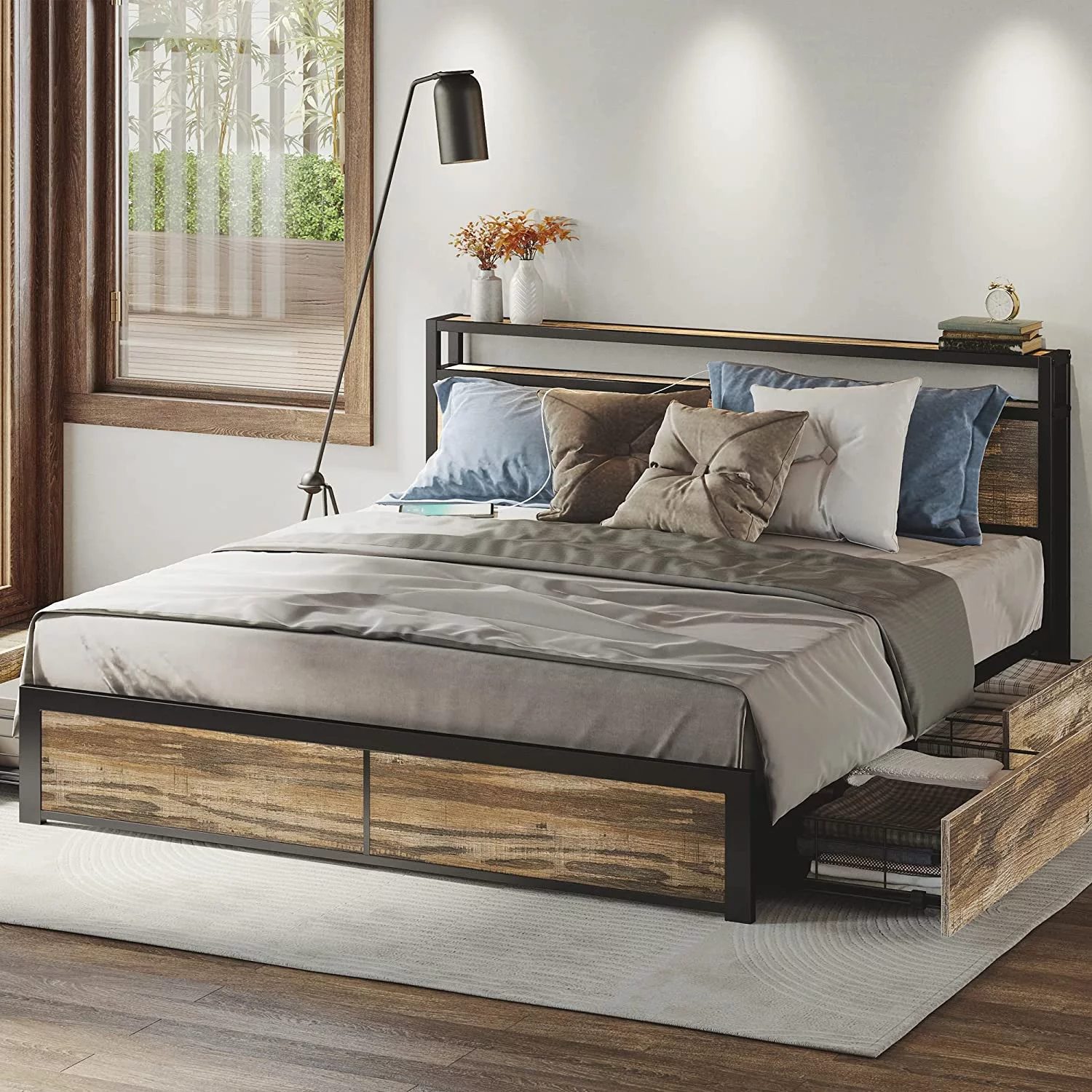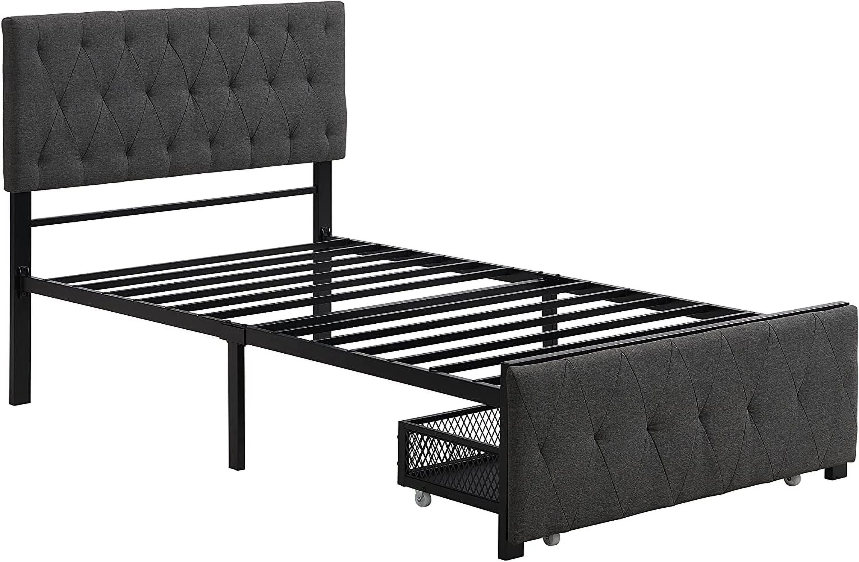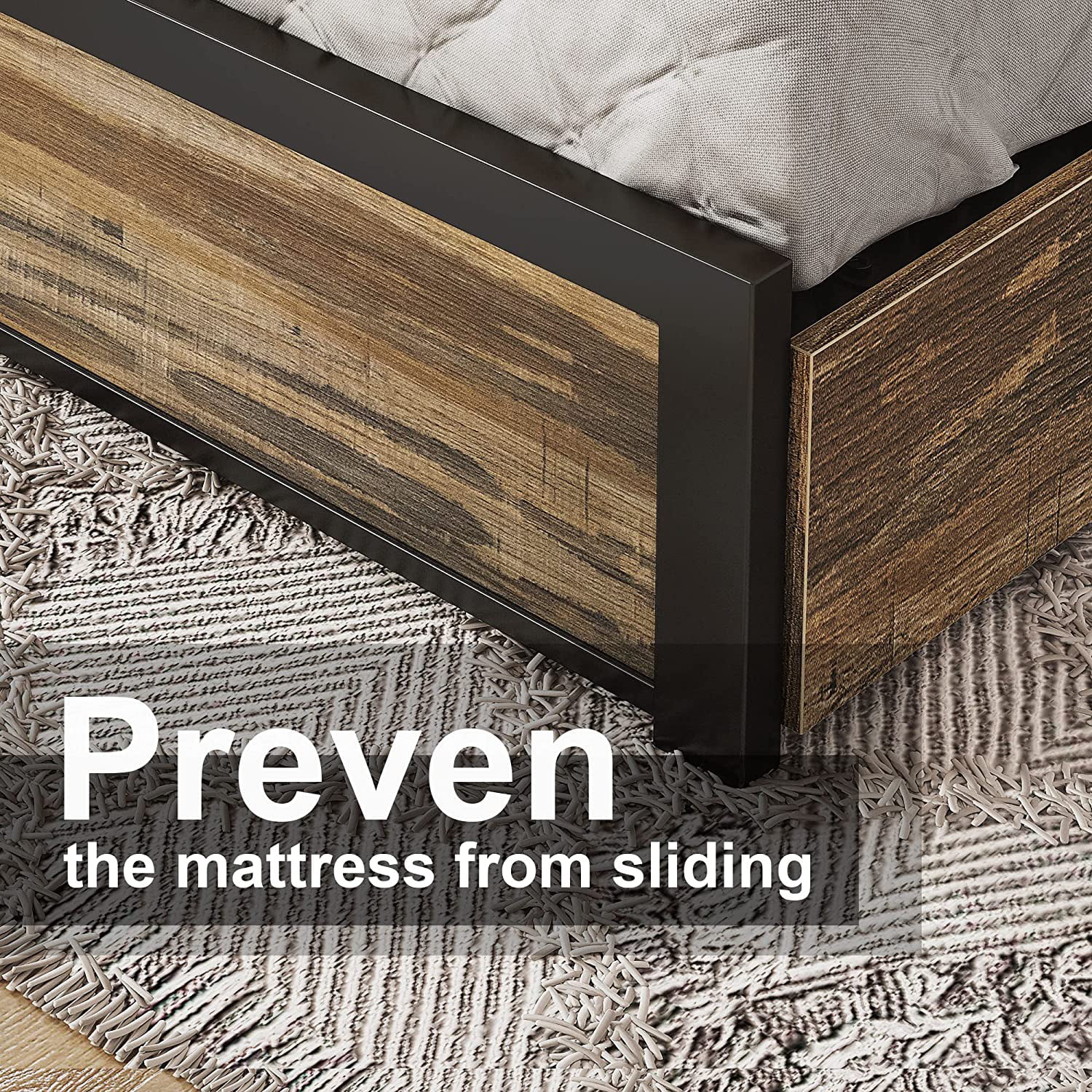 Solid Wood Size Platform Bed With Two Storage Drawers, Size Storage Platform Bed, No Box Spring Needed, Grey