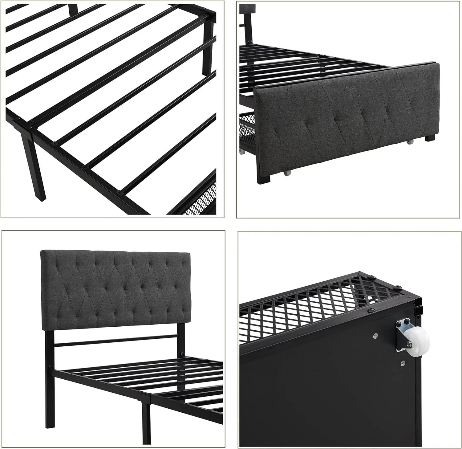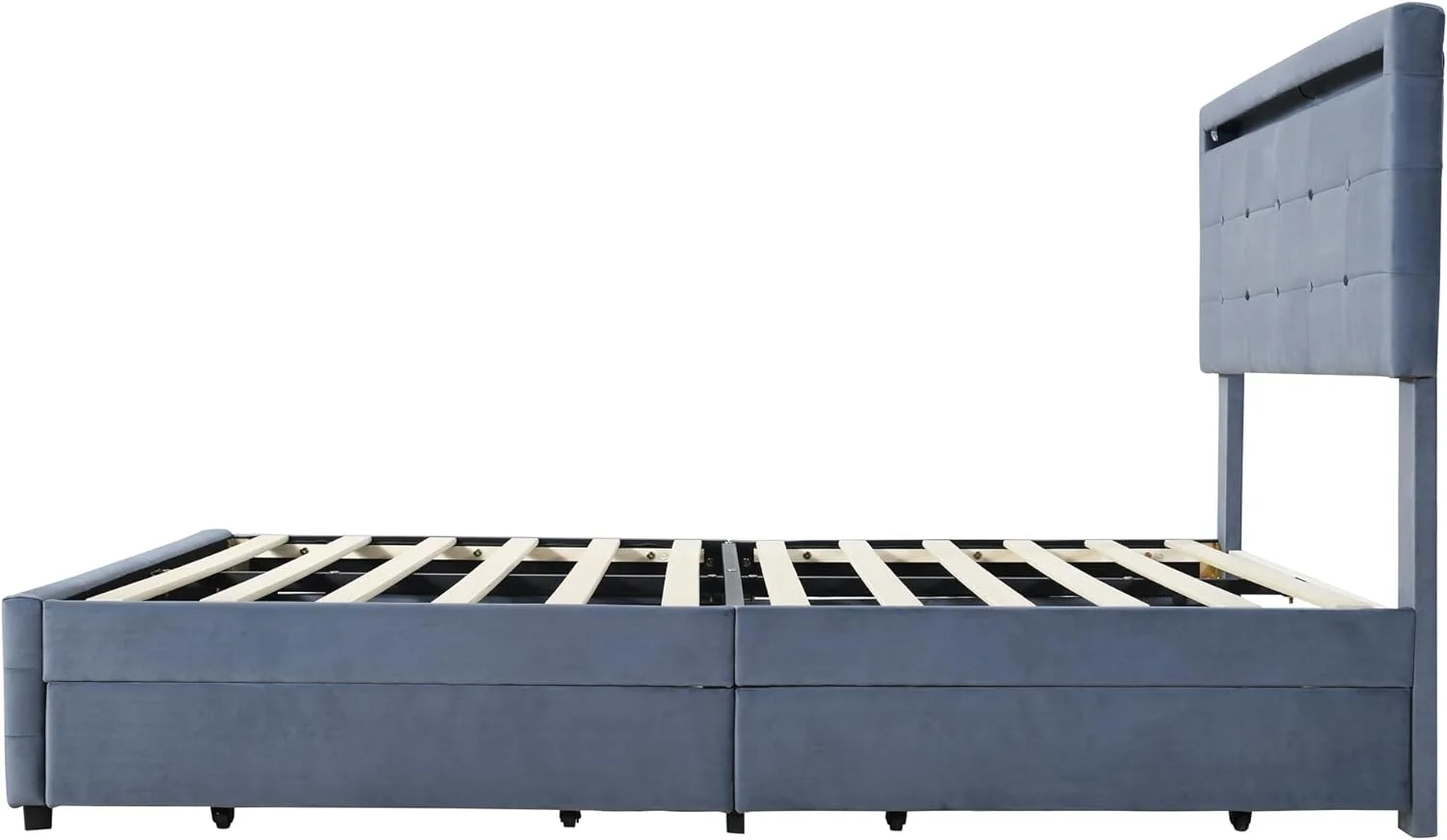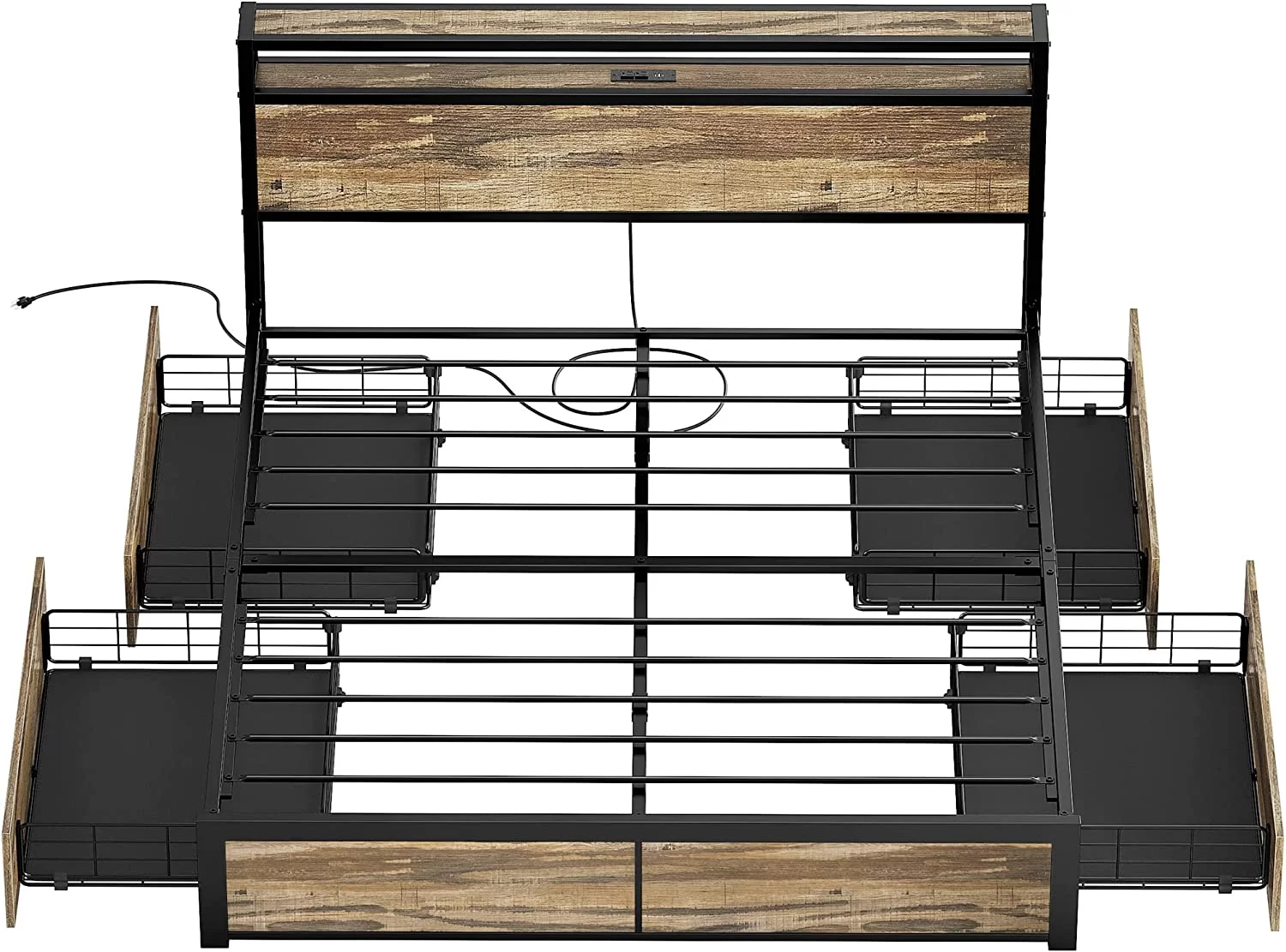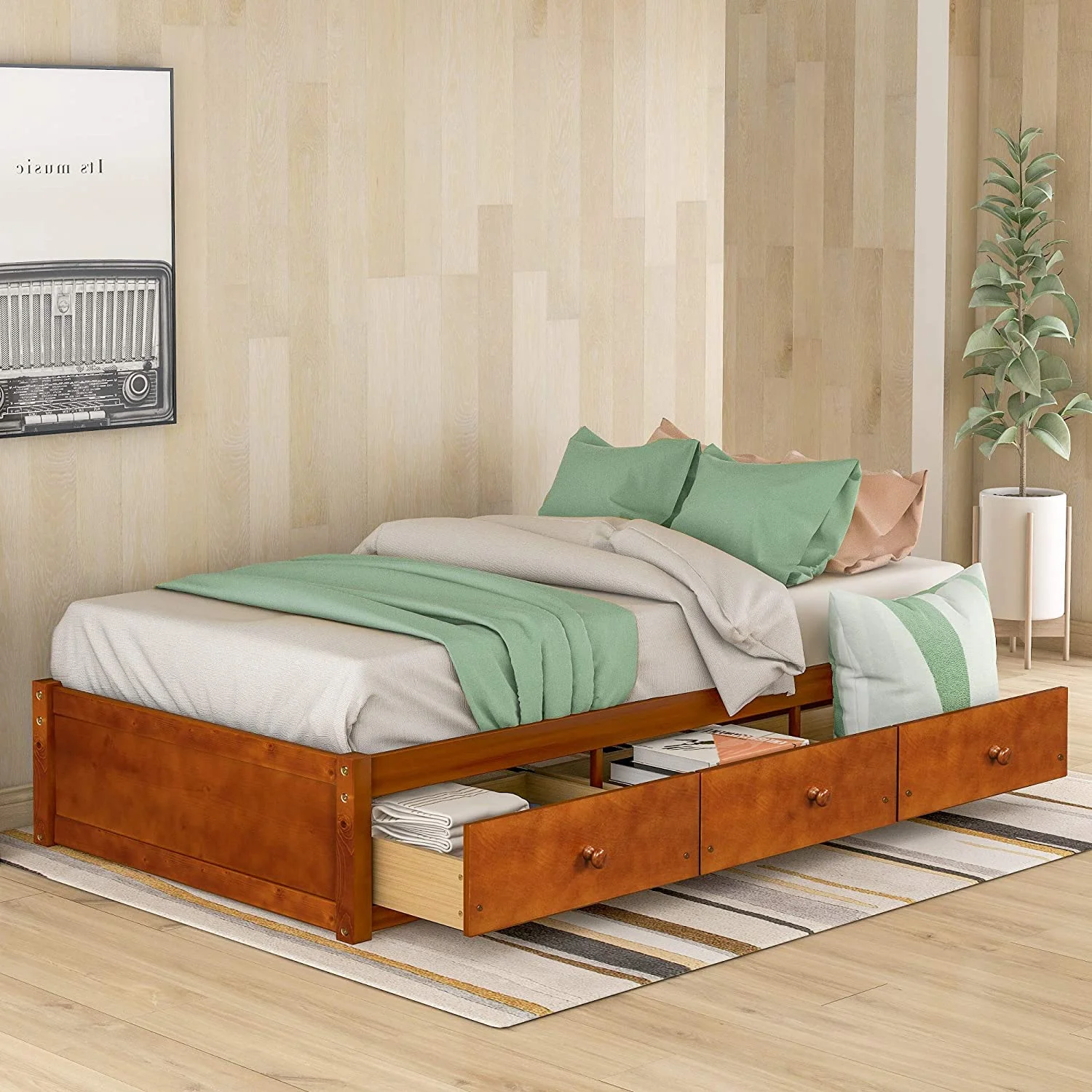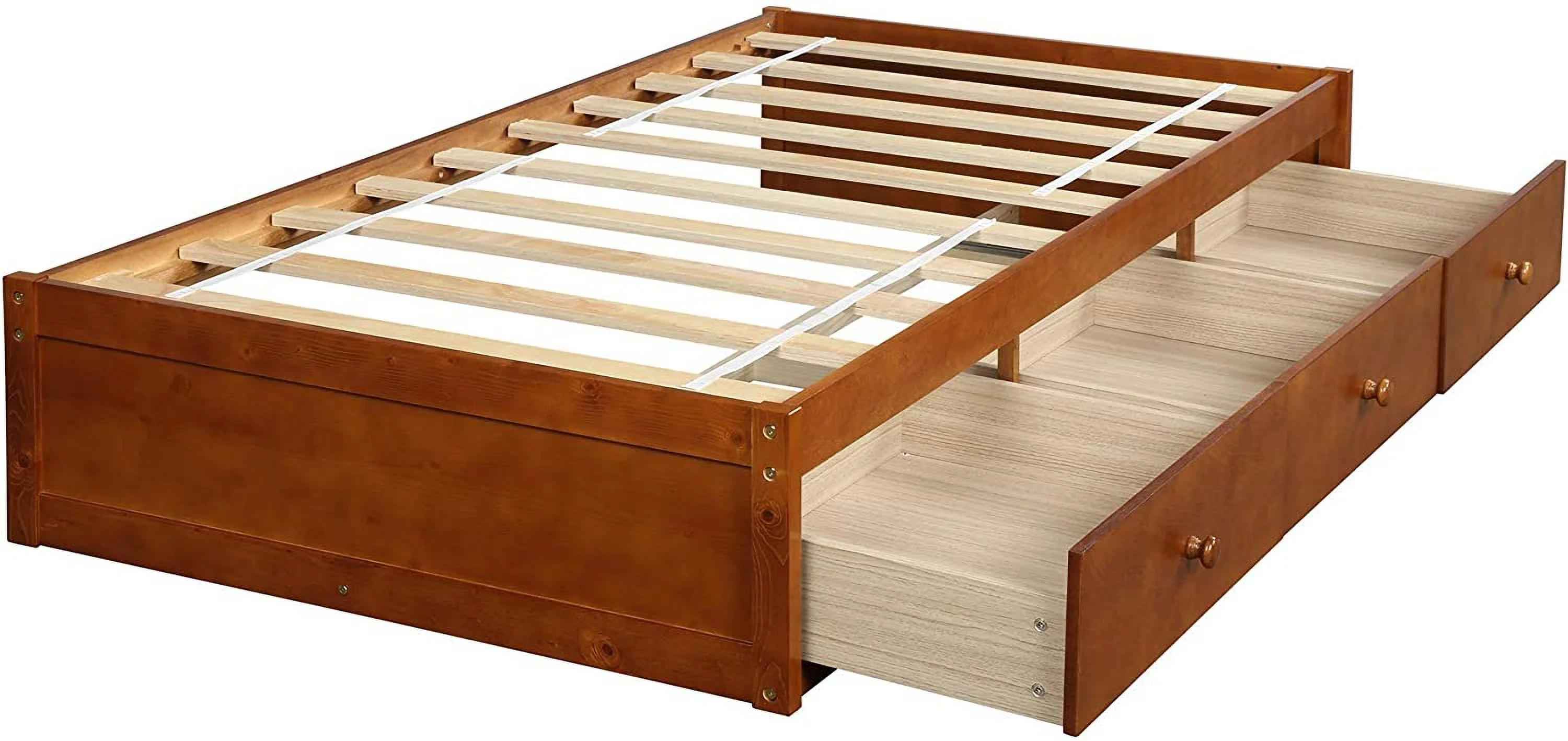 Solid Wood Size Platform Bed With Two Storage Drawers, Size Storage Platform Bed, No Box Spring Needed, Grey