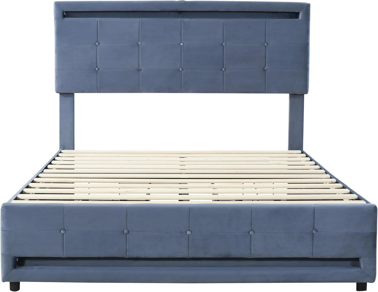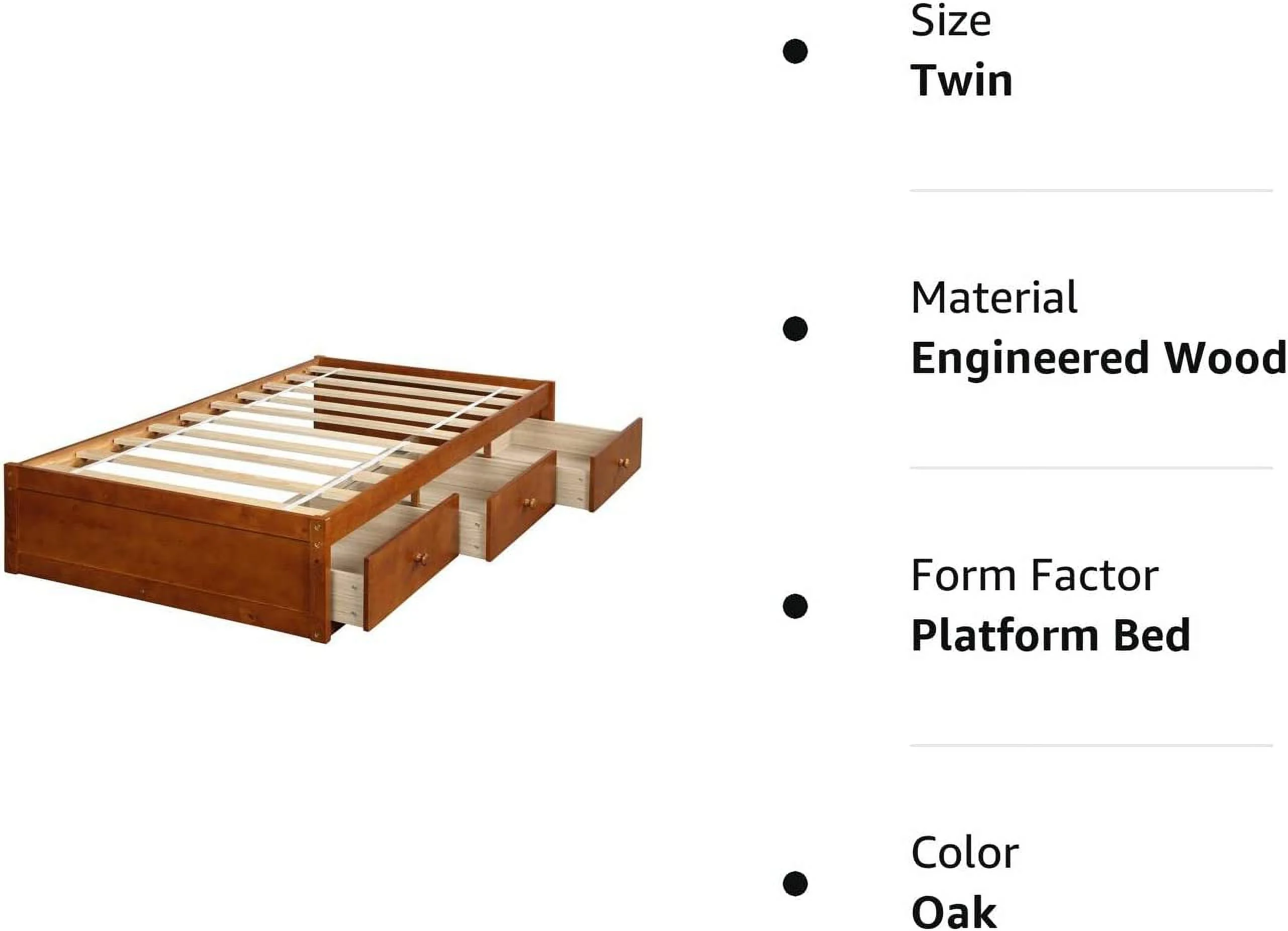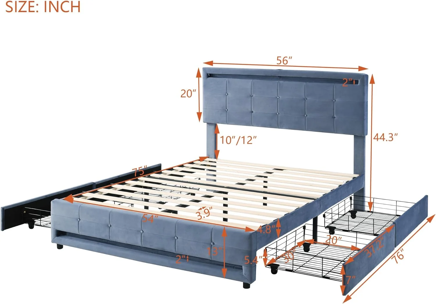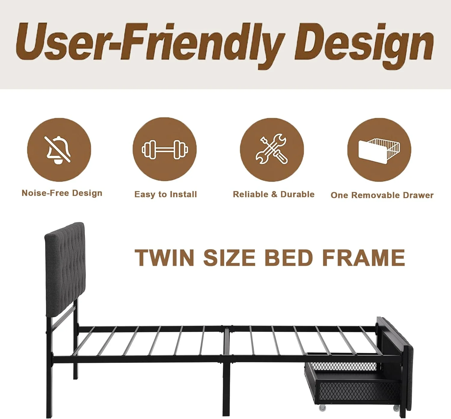 Solid Wood Size Platform Bed With Two Storage Drawers, Size Storage Platform Bed, No Box Spring Needed, Grey