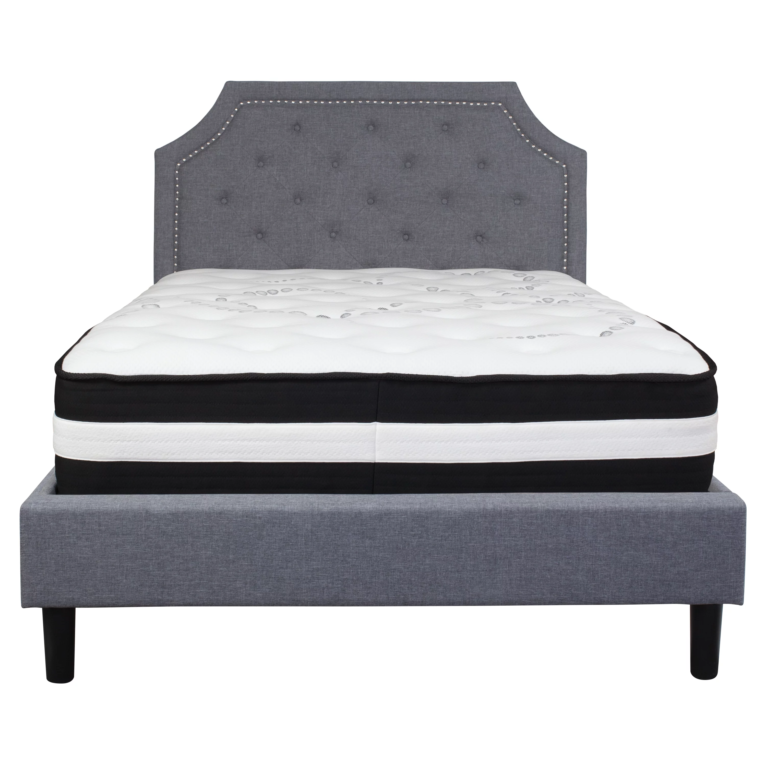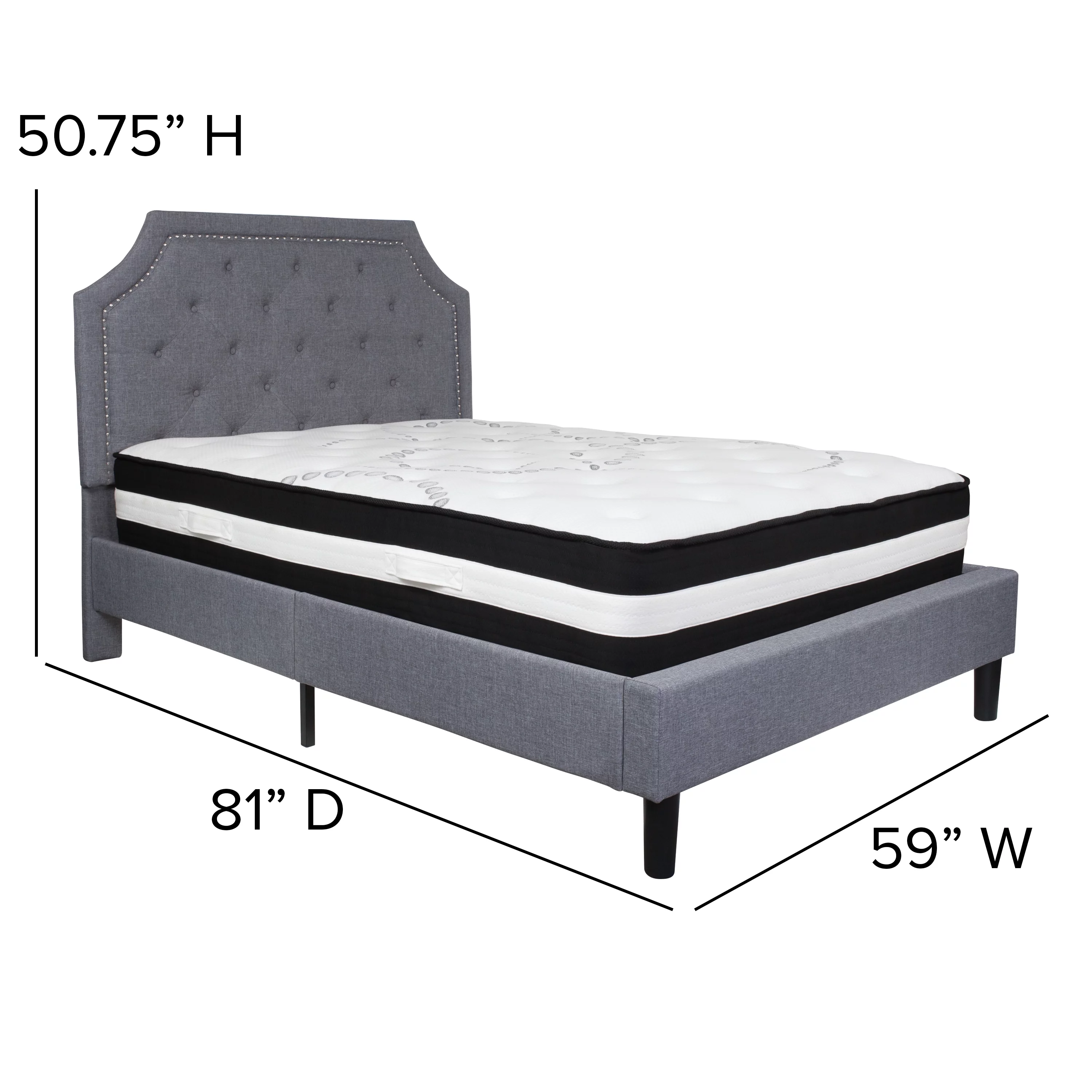 Flash Furniture Brighton Full Size Tufted Upholstered Platform Bed in Light Gray Fabric with Pocket Spring Mattress