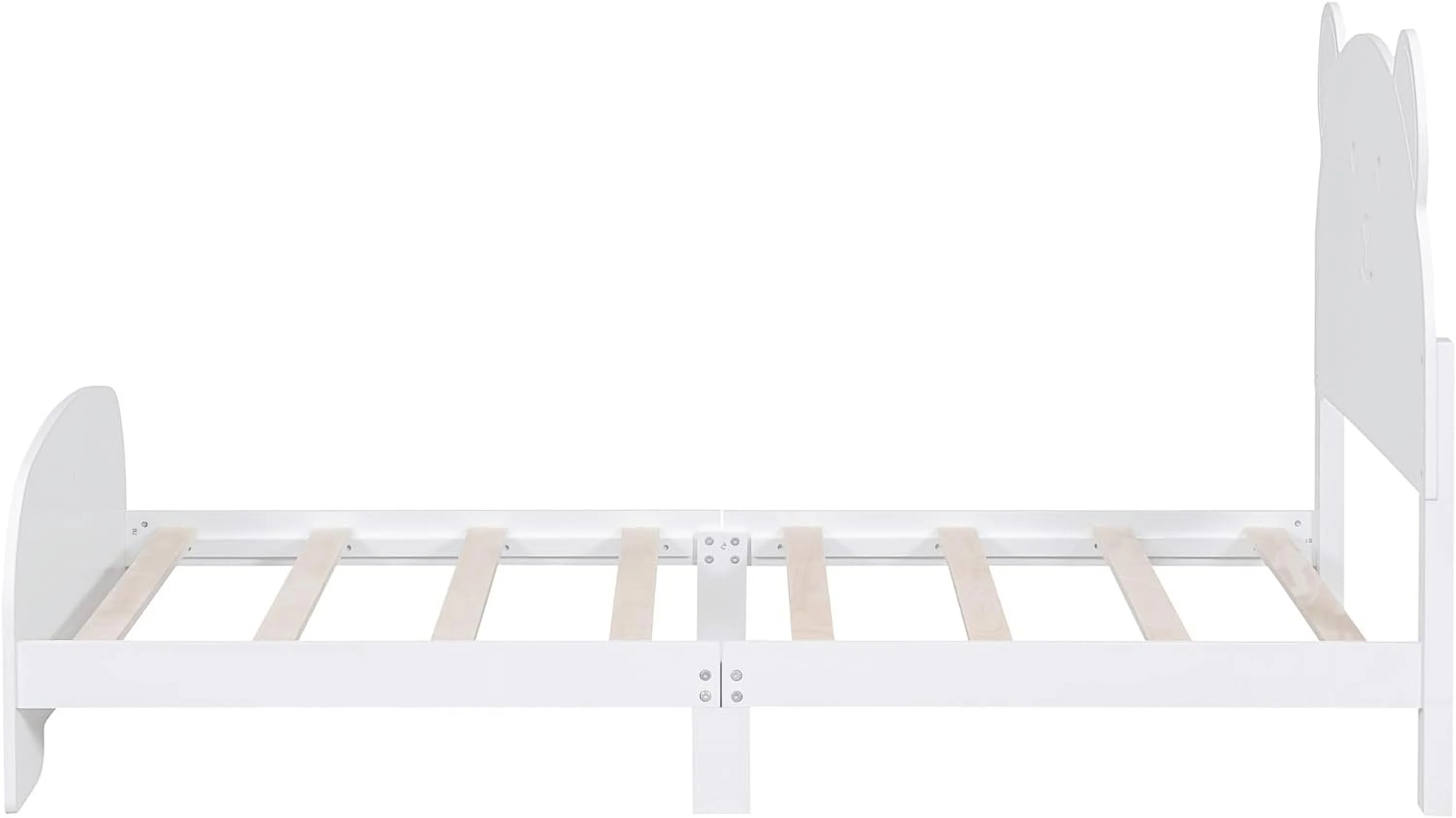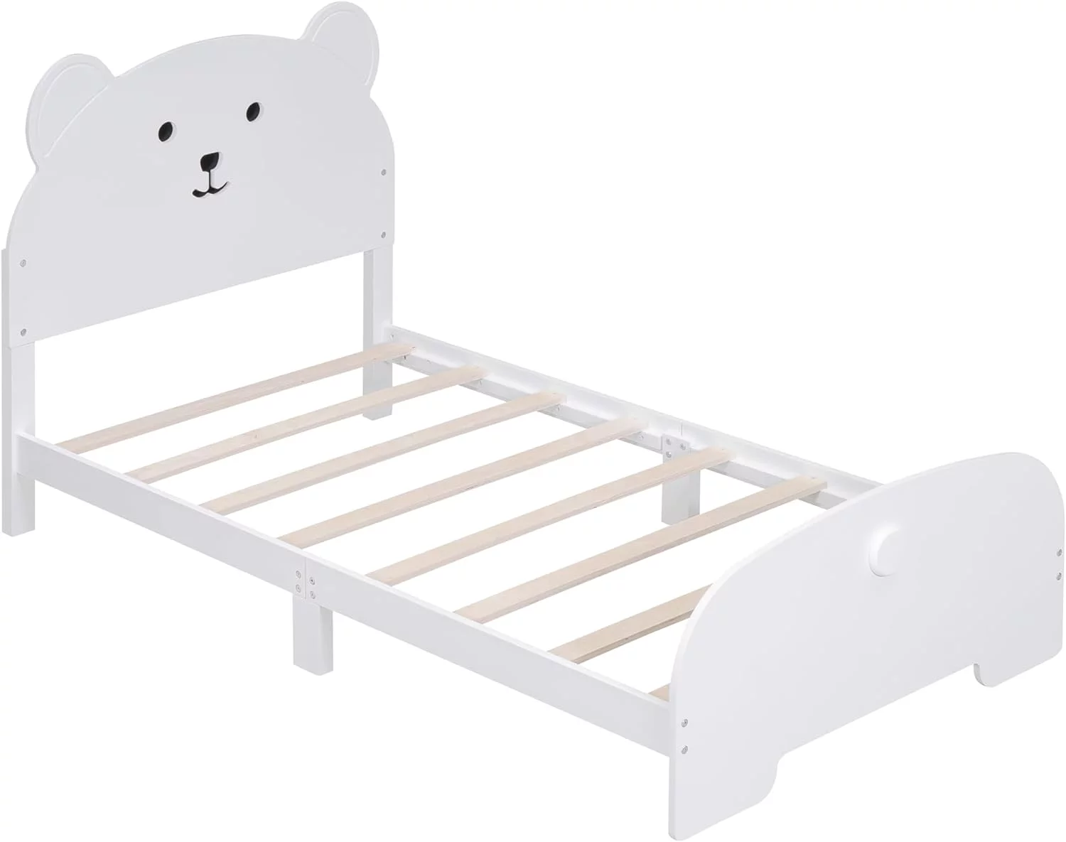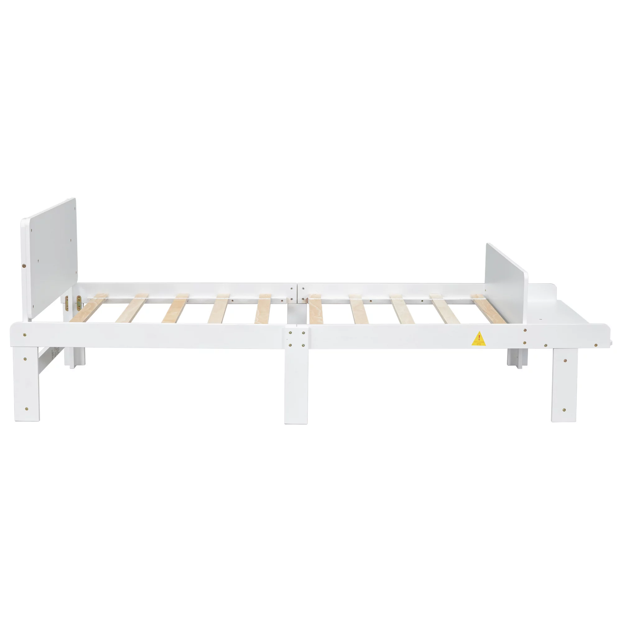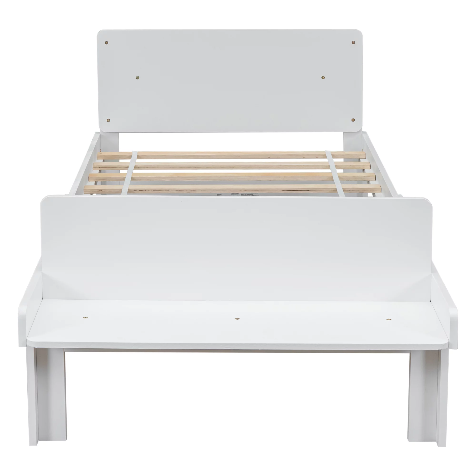 KAMIDA Twin Size Bed Frame, Solid Wood Platform Bed Frame with Footboard Bench for Kids Teen, White