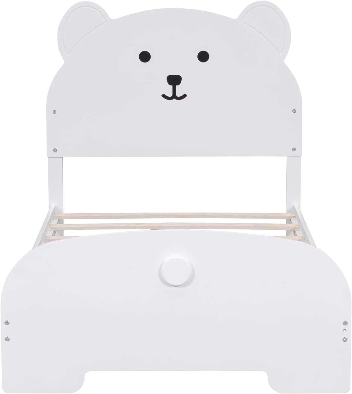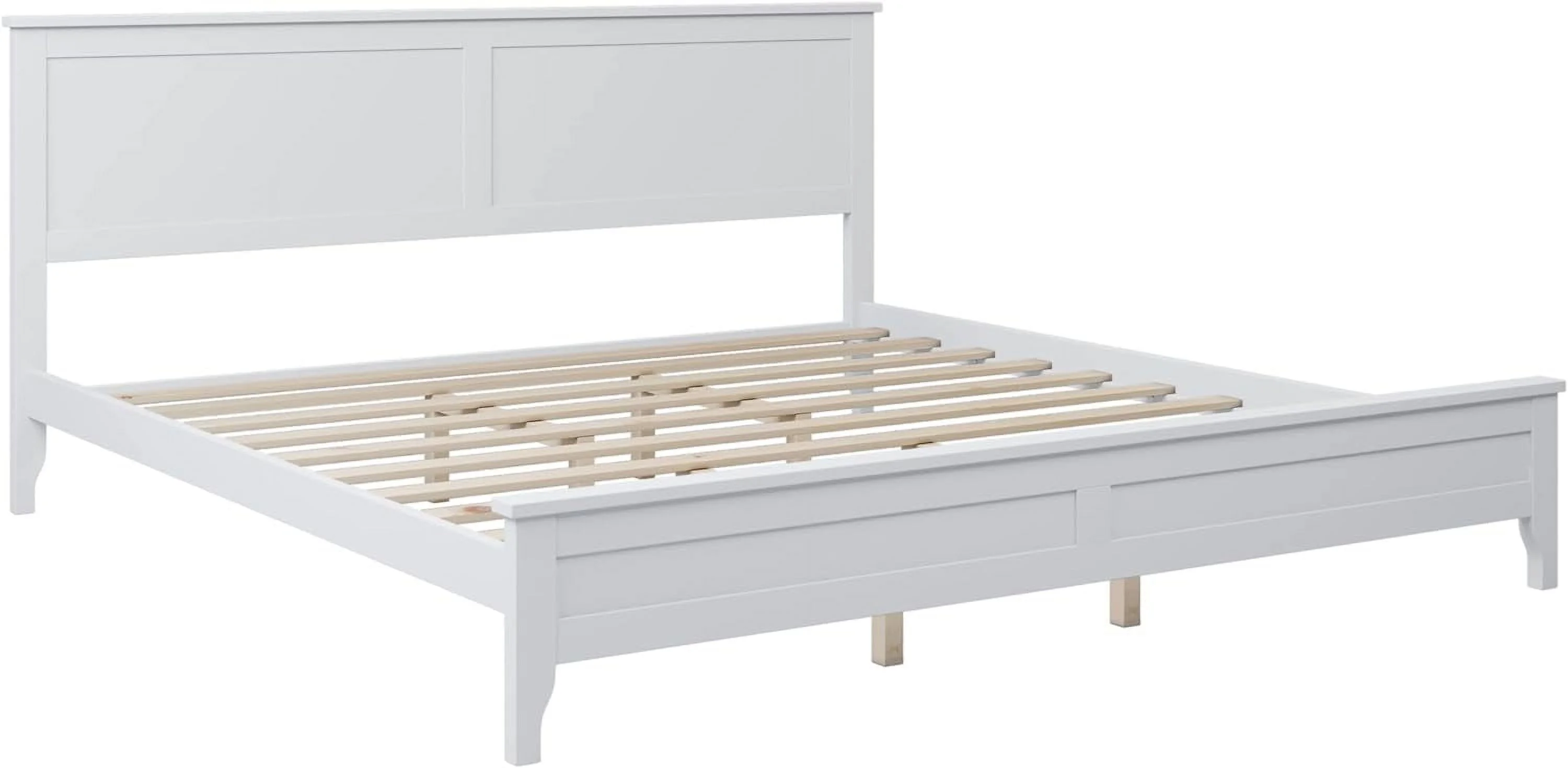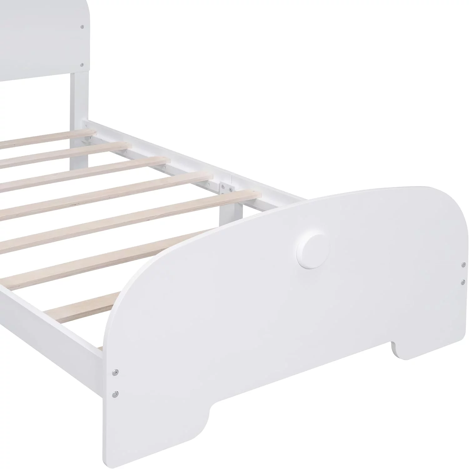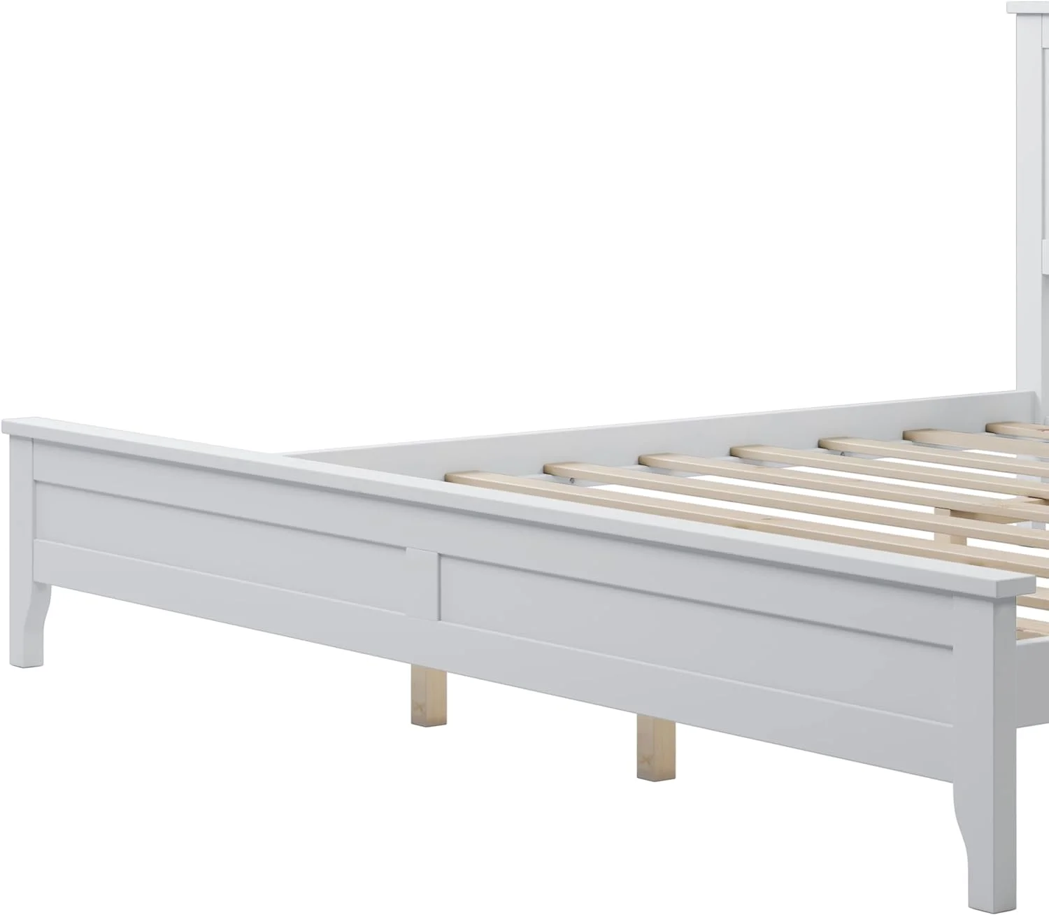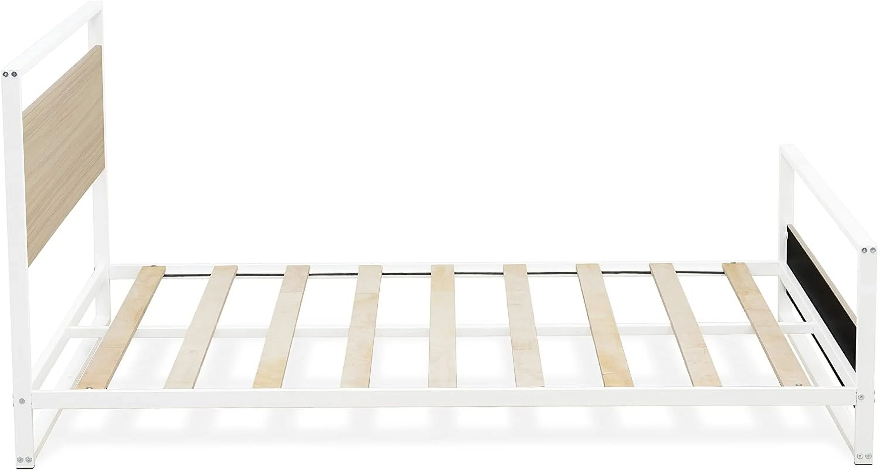KAMIDA Twin Size Bed Frame, Solid Wood Platform Bed Frame with Footboard Bench for Kids Teen, White