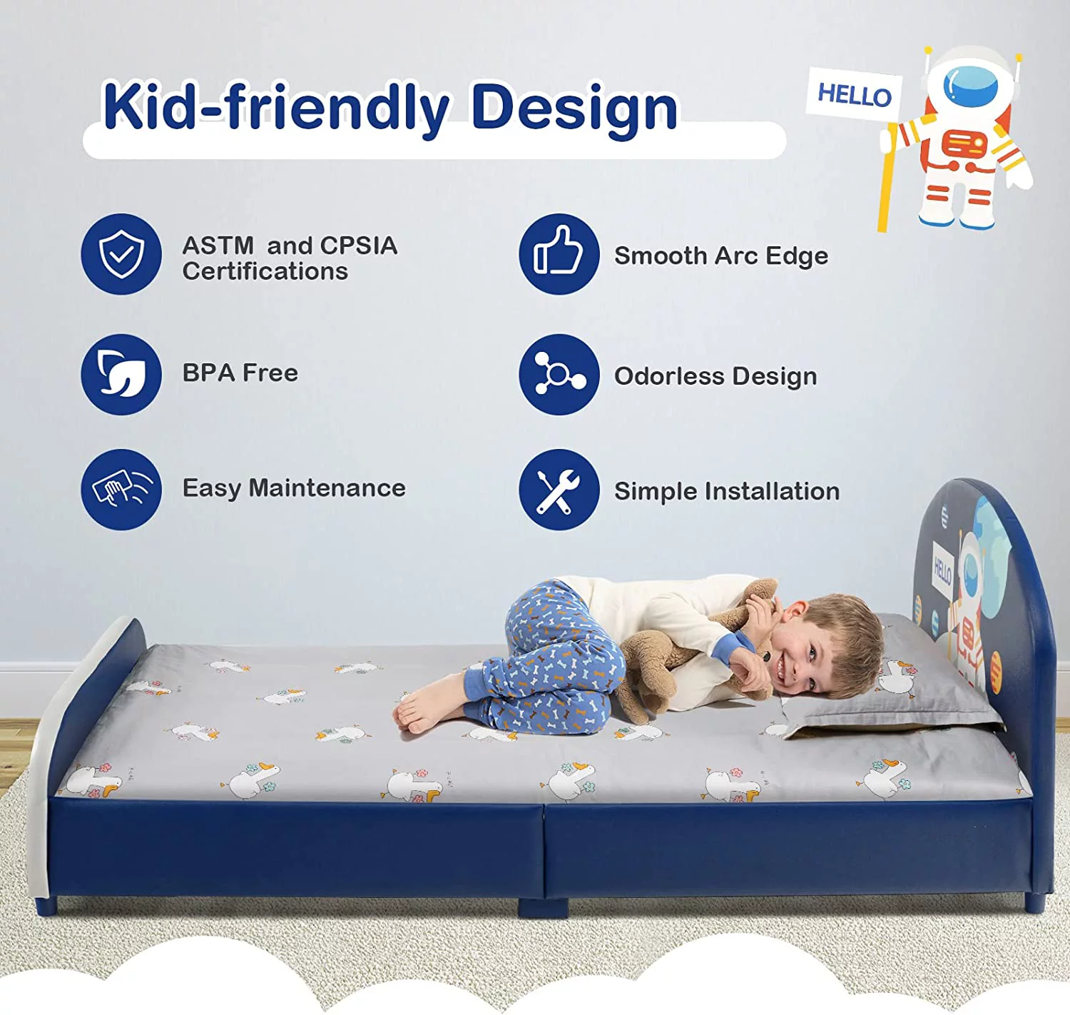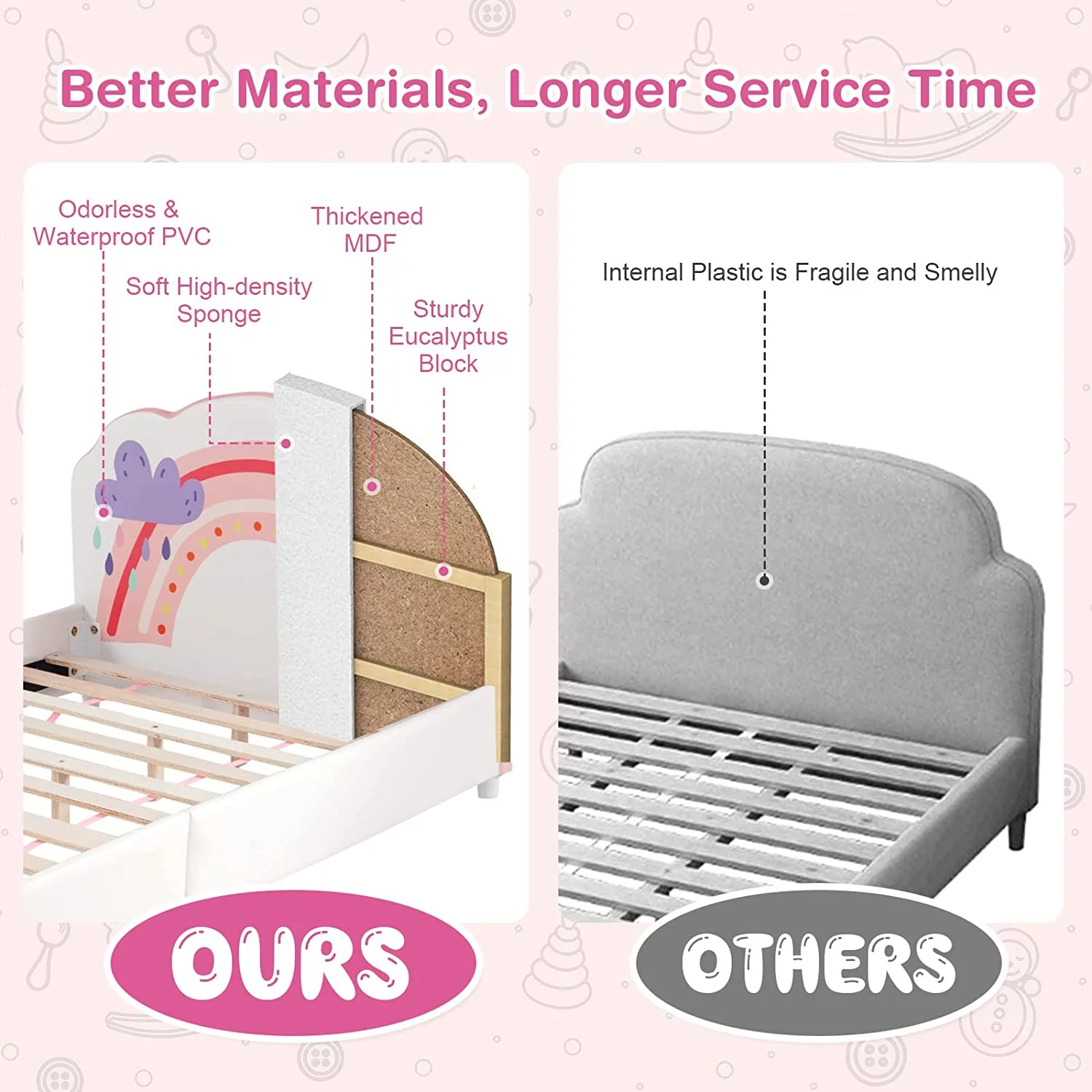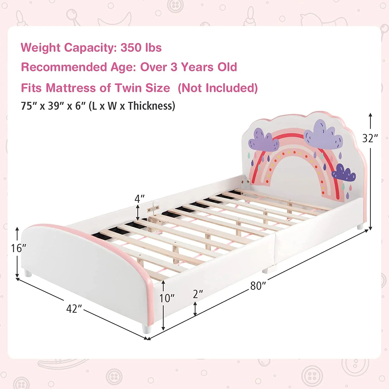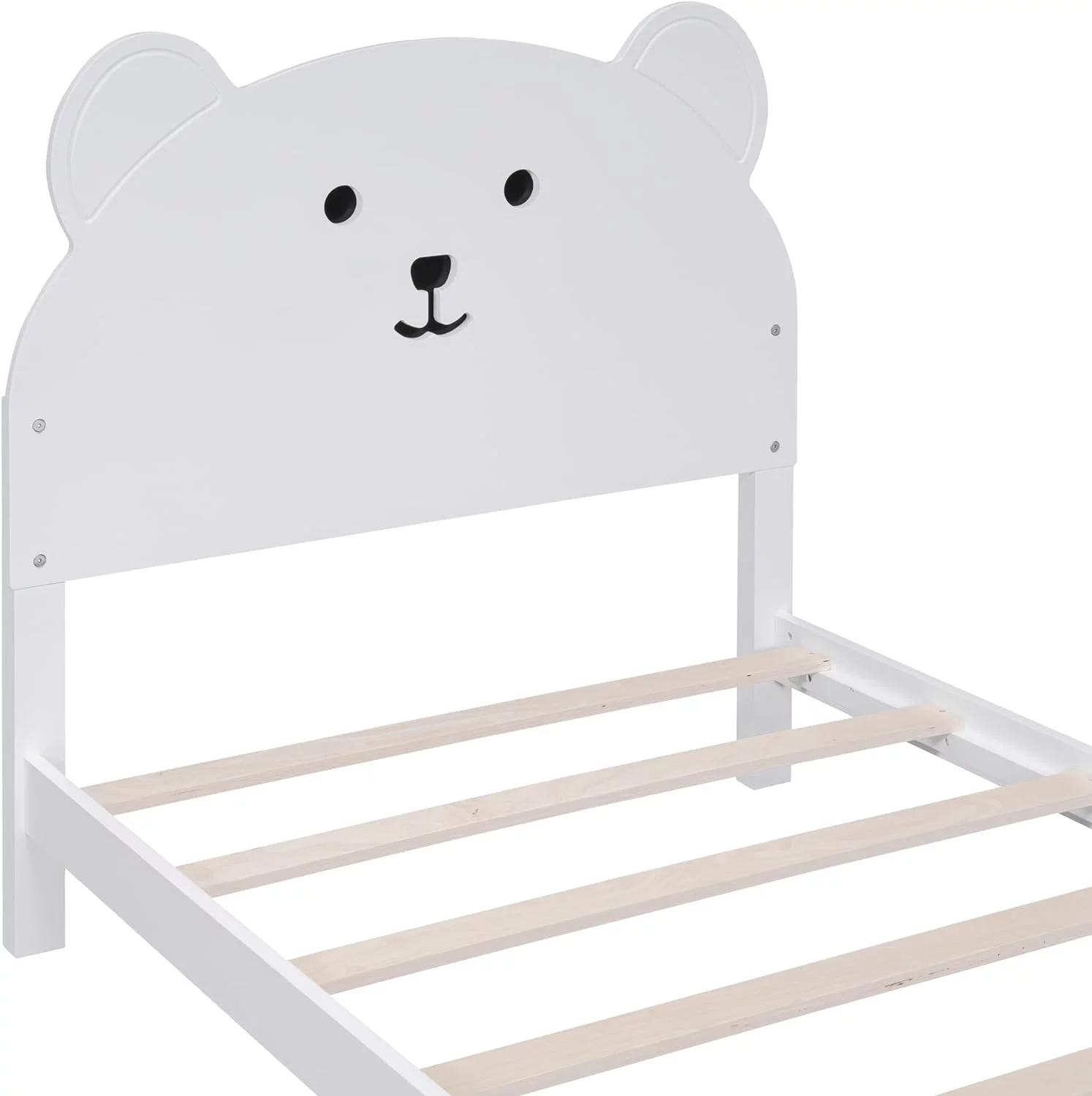 KAMIDA Twin Size Bed Frame, Solid Wood Platform Bed Frame with Footboard Bench for Kids Teen, White