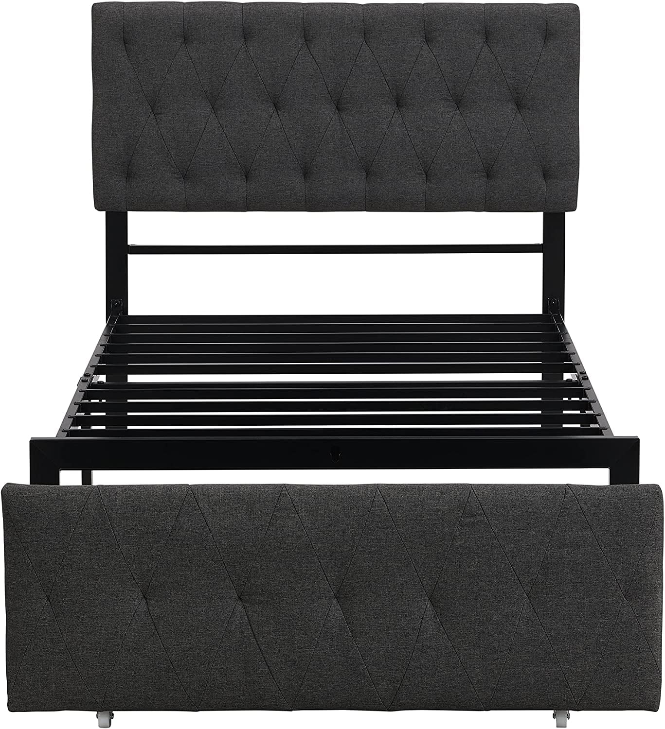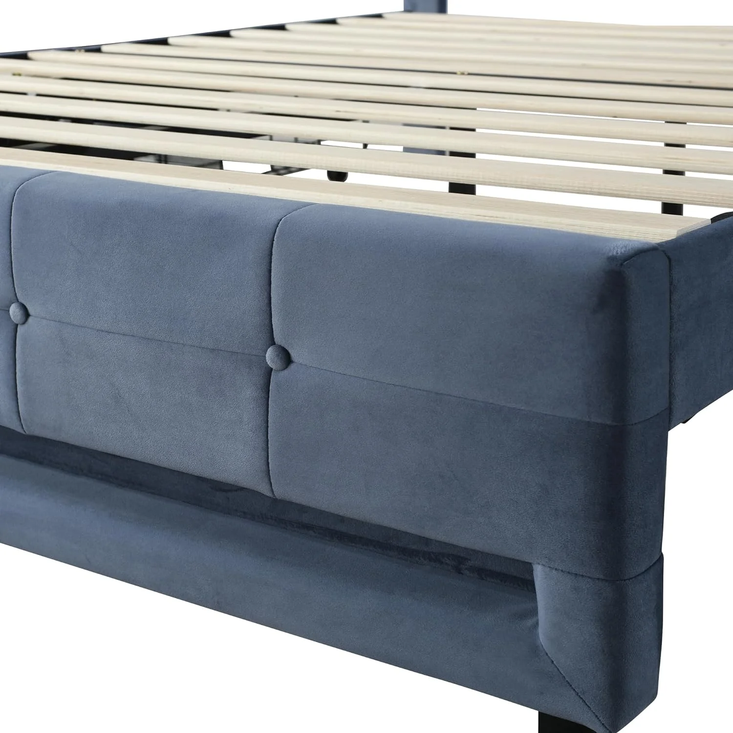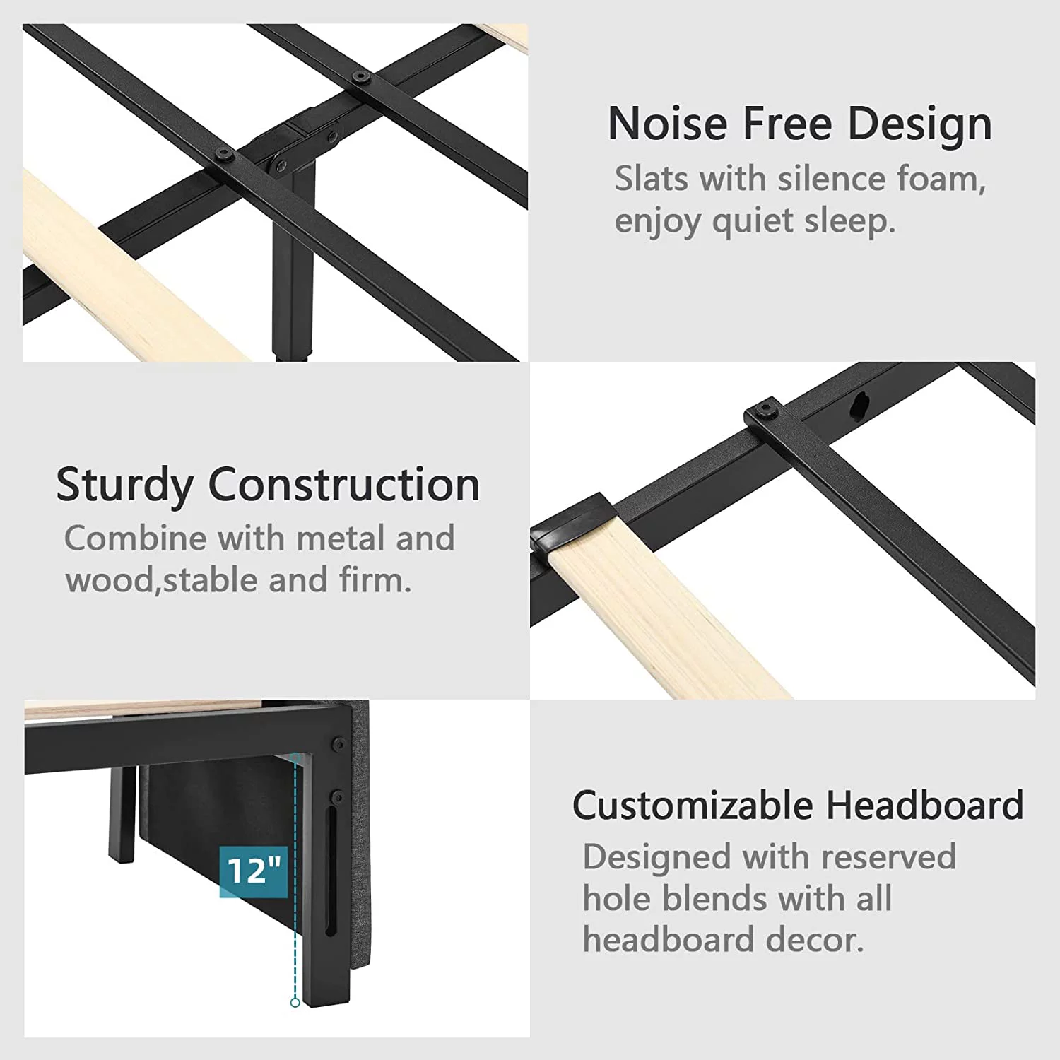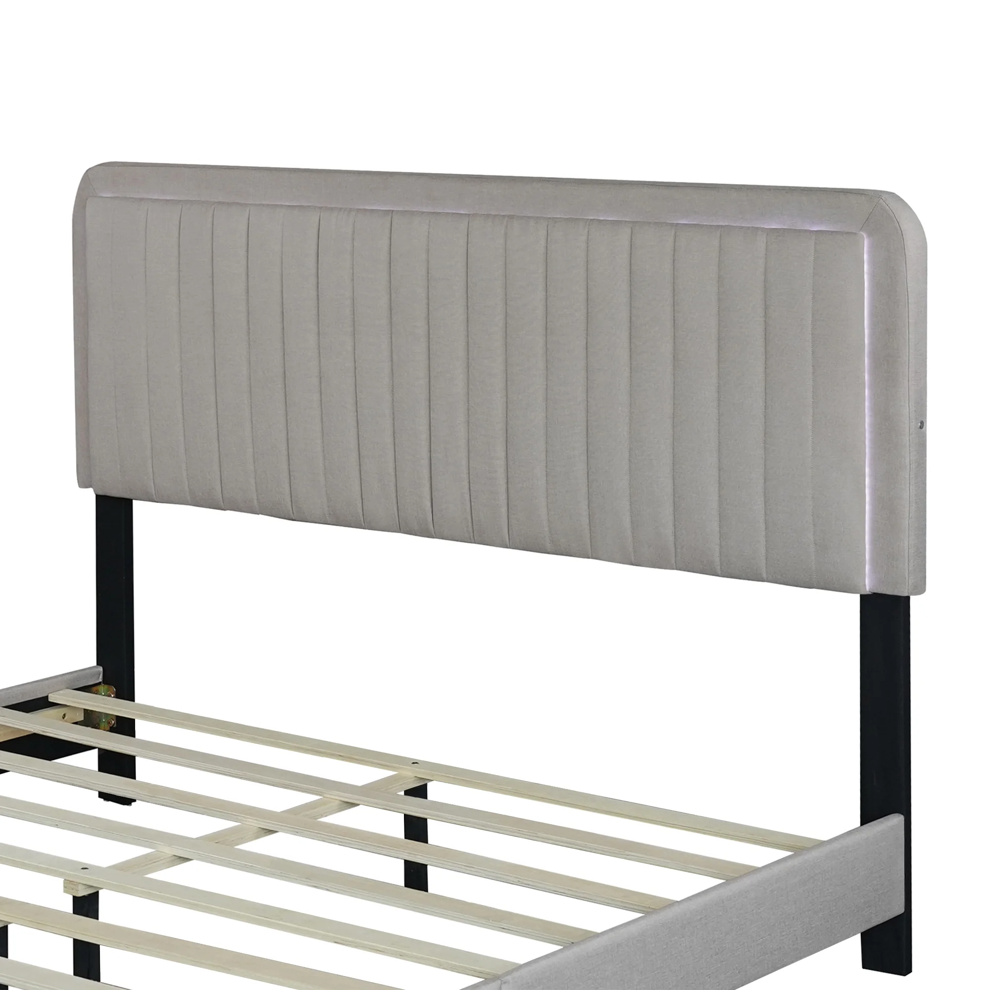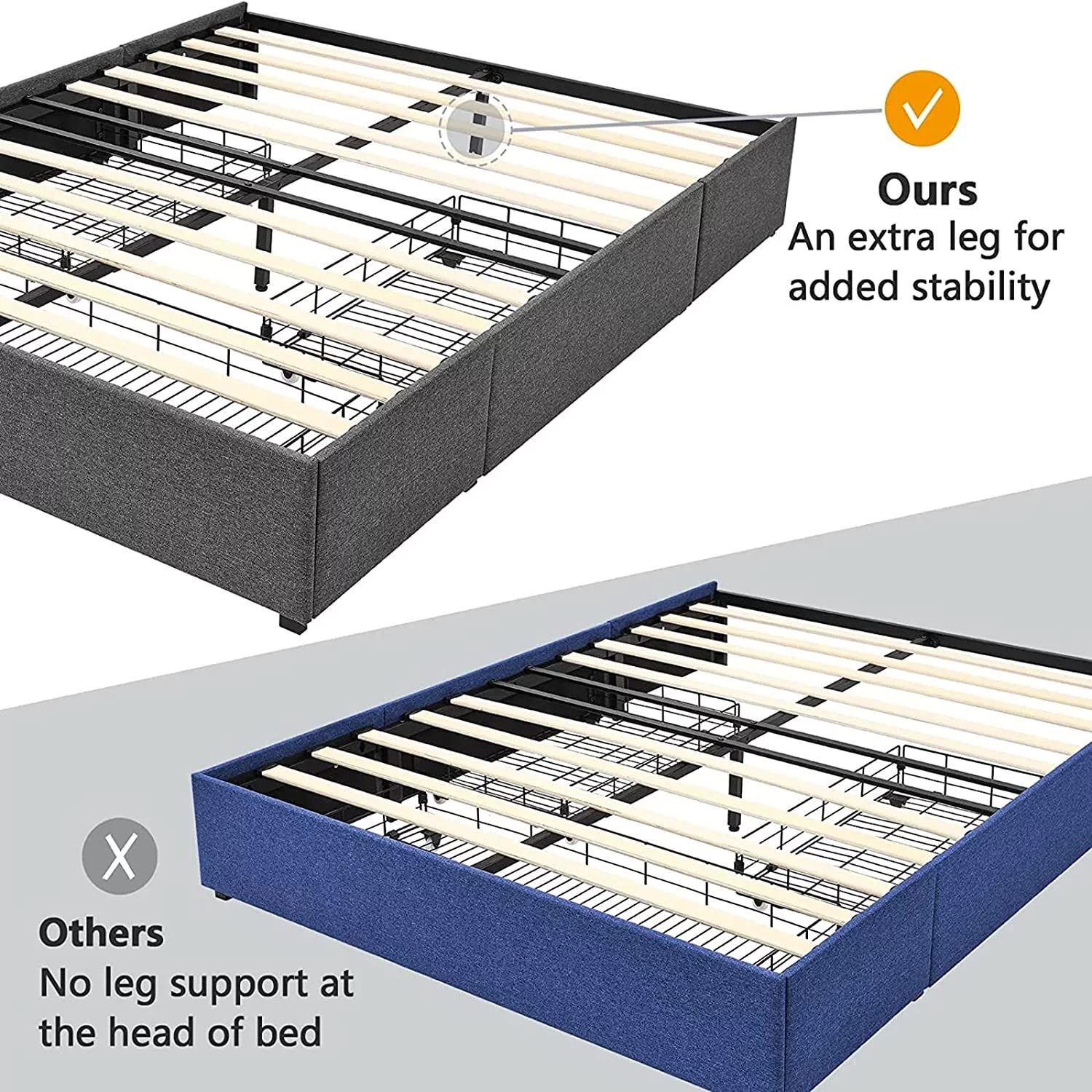 EUROCO Queen Size Upholstery Platform Bed with Storage Headboard and Footboard for Bedroom, Gray