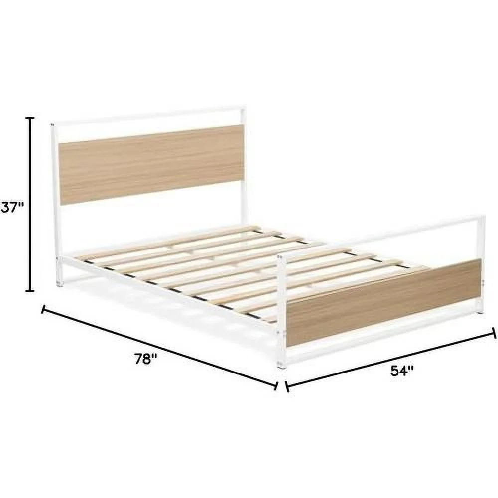 FOA Belkor Solid Wood White Full Platform Bed with 8" Memory Foam Mattress