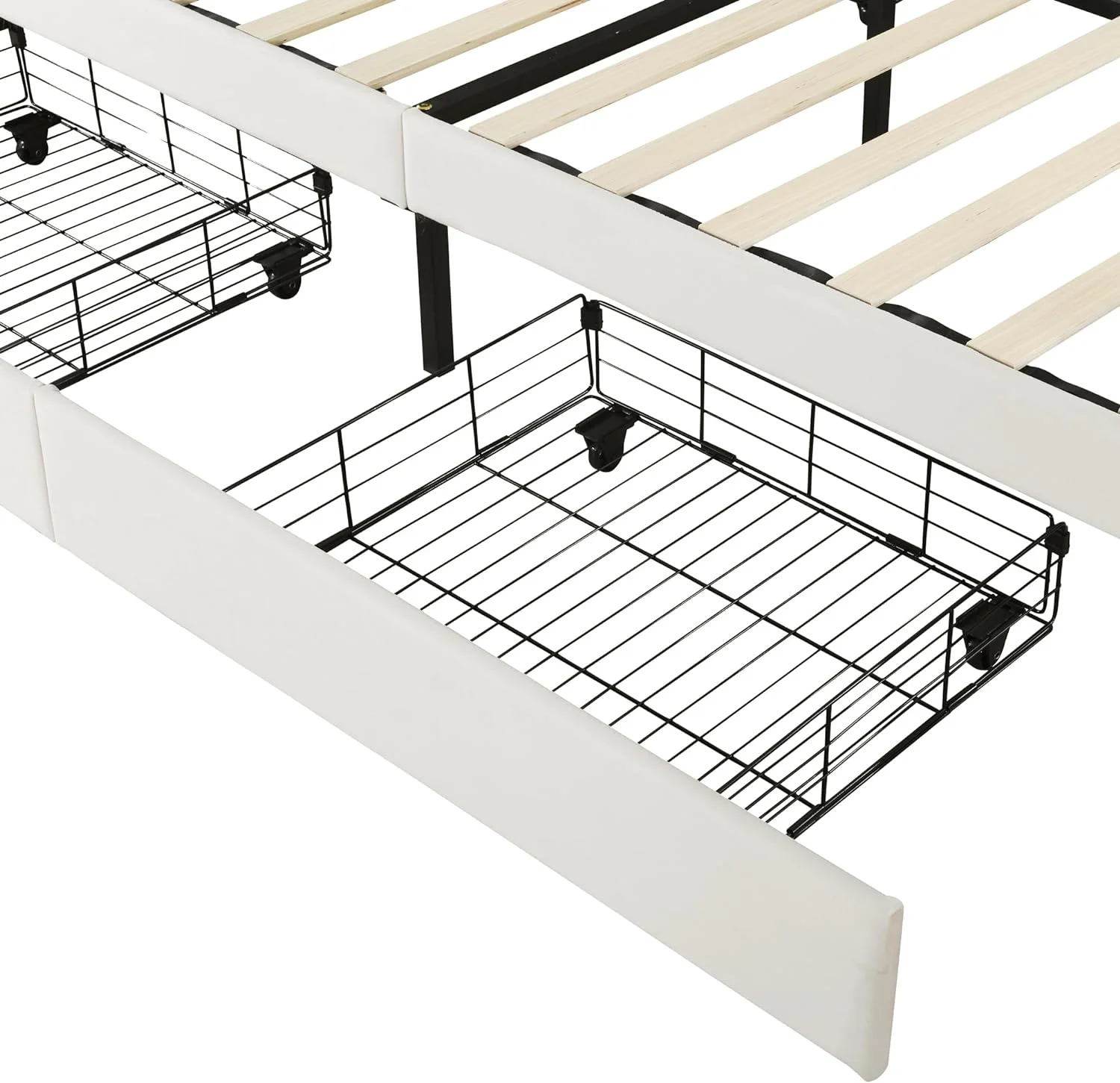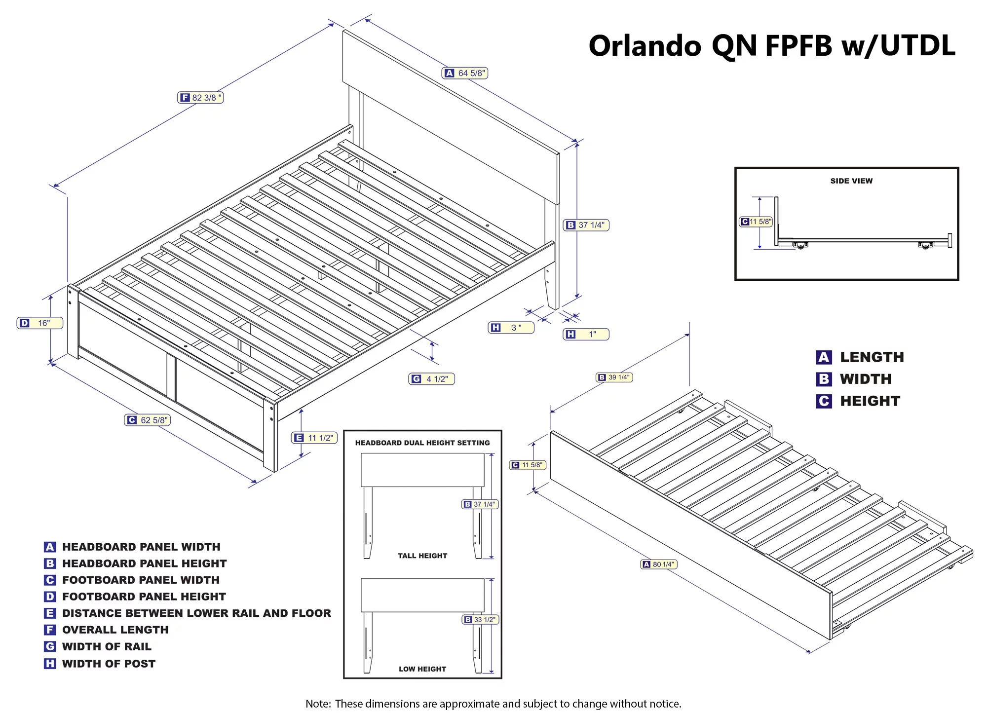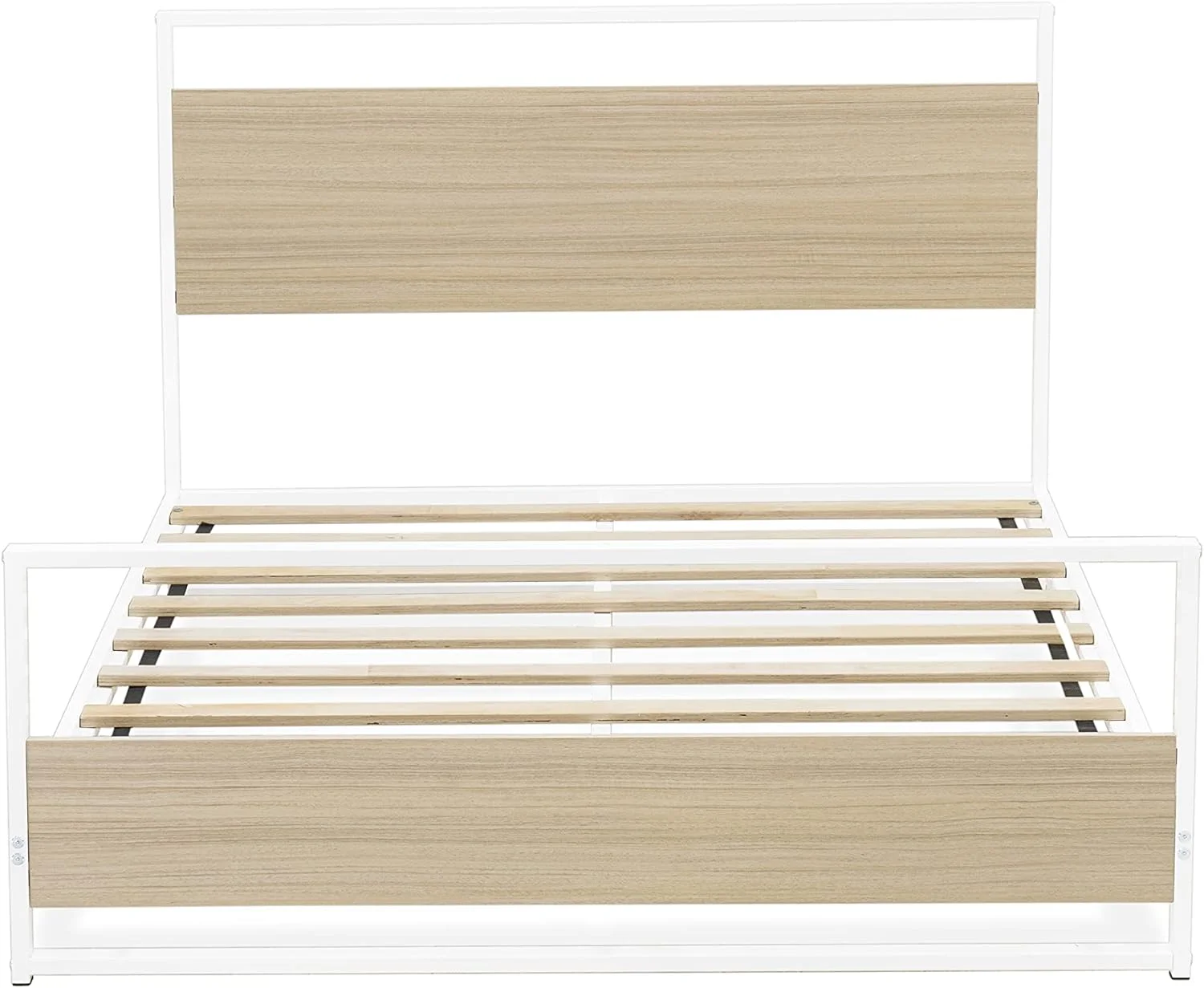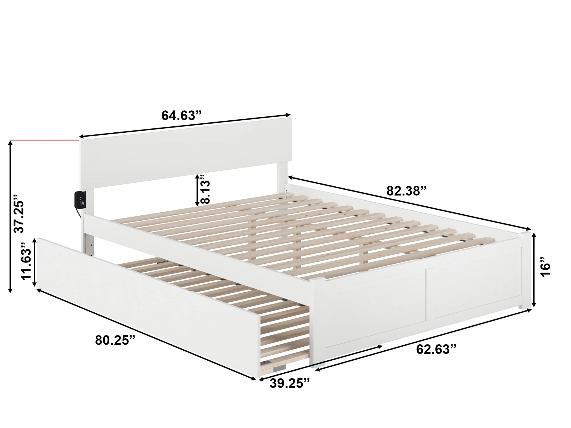 AFI Orlando Queen Wood Platform Bed with Headboard Footboard & Twin XL Trundle, White