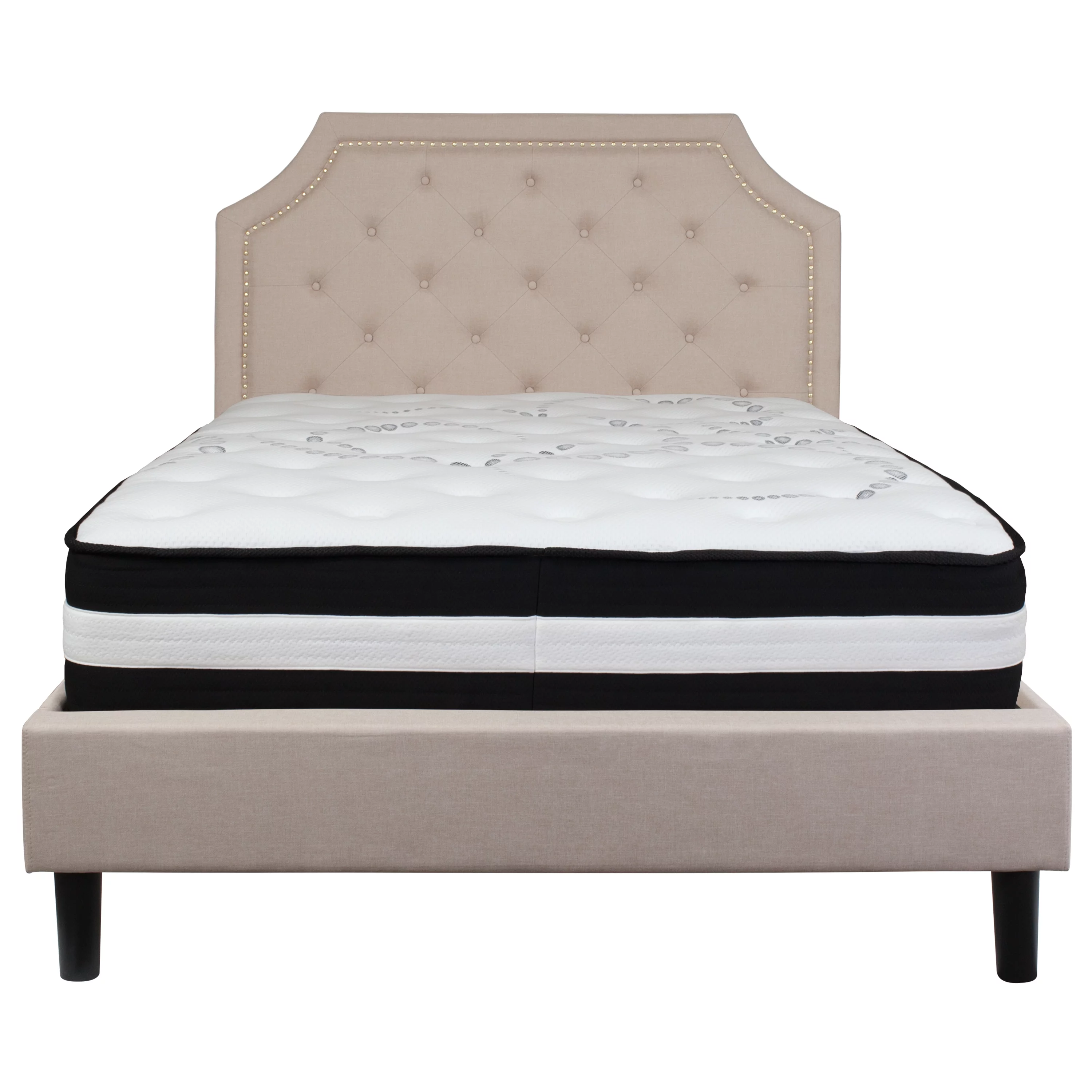 Flash Furniture Brighton Full Size Tufted Upholstered Platform Bed in Beige Fabric with Pocket Spring Mattress