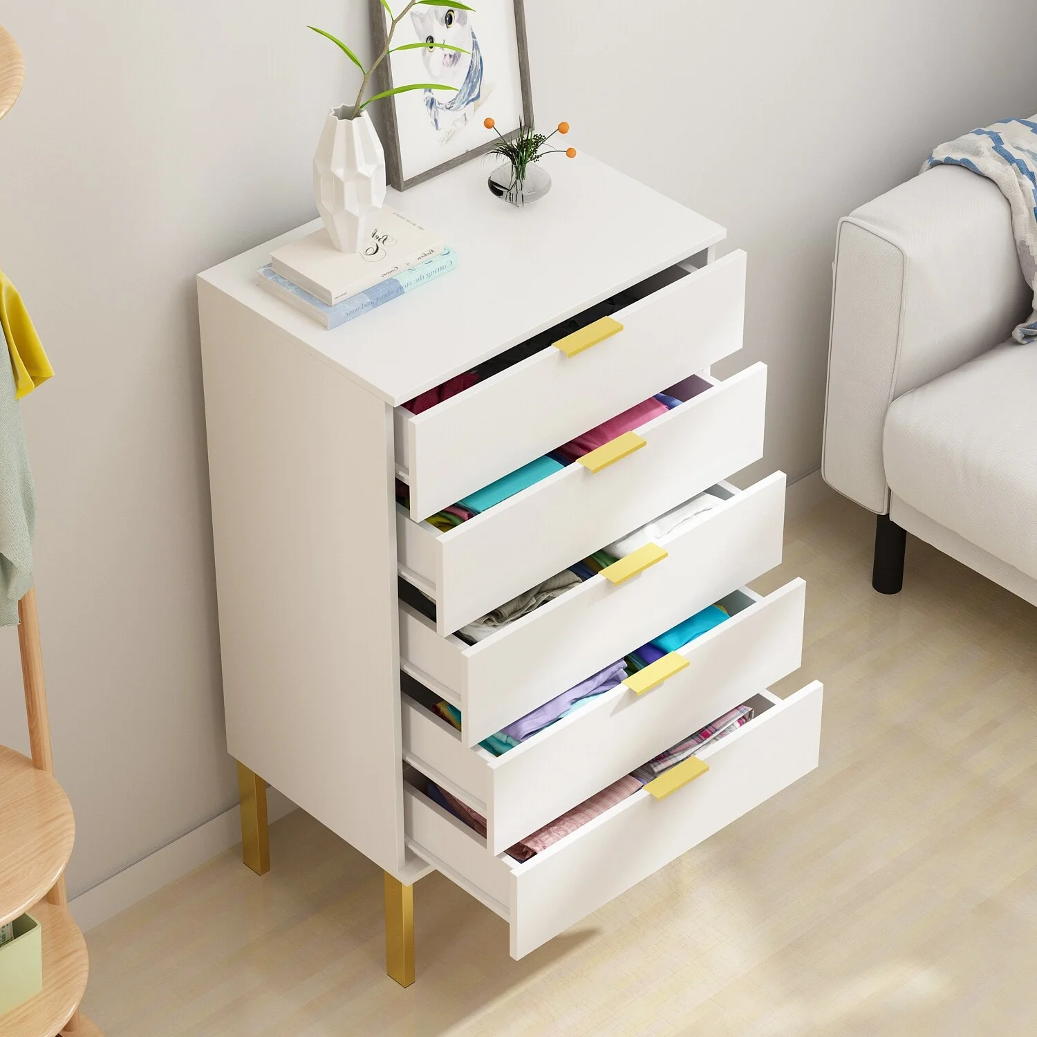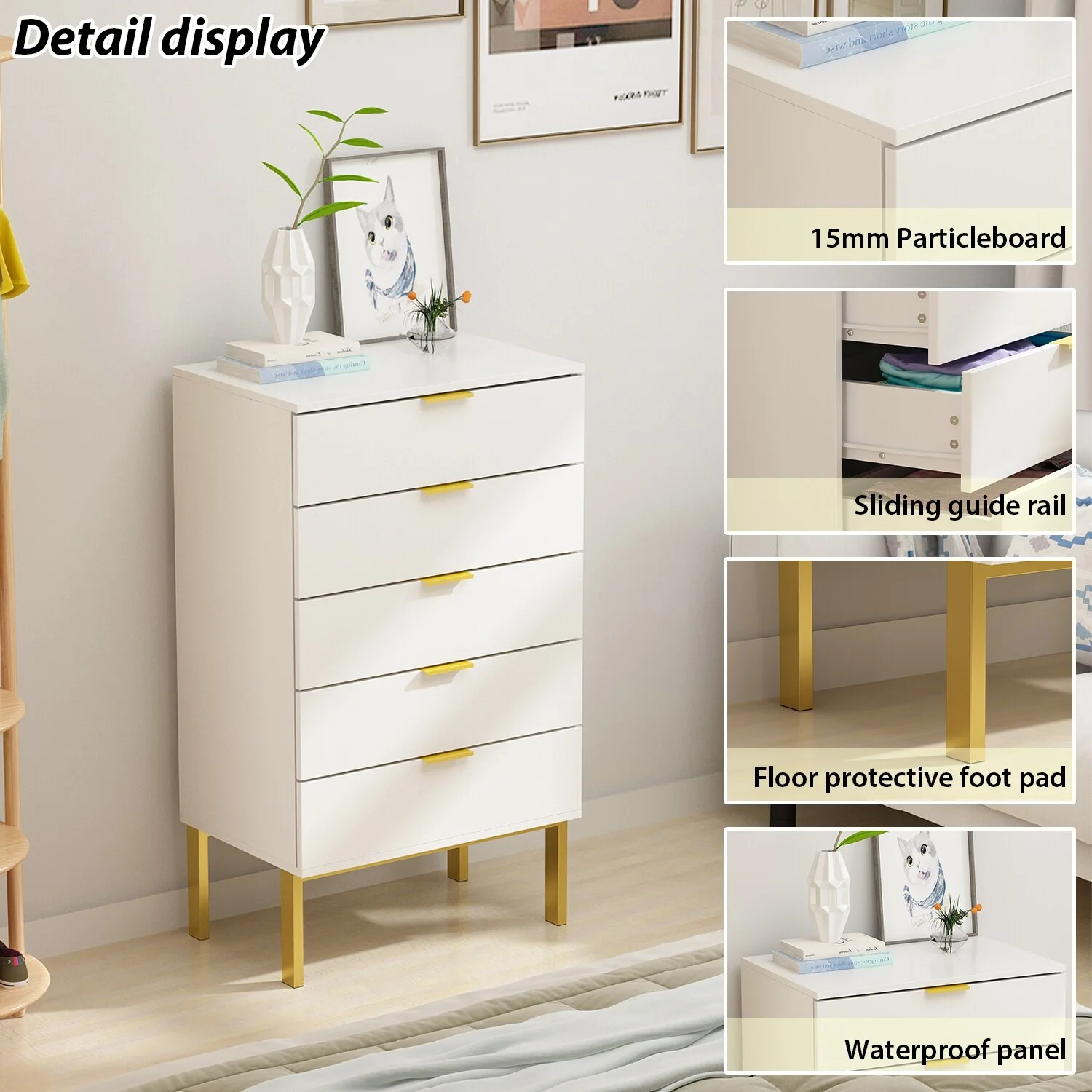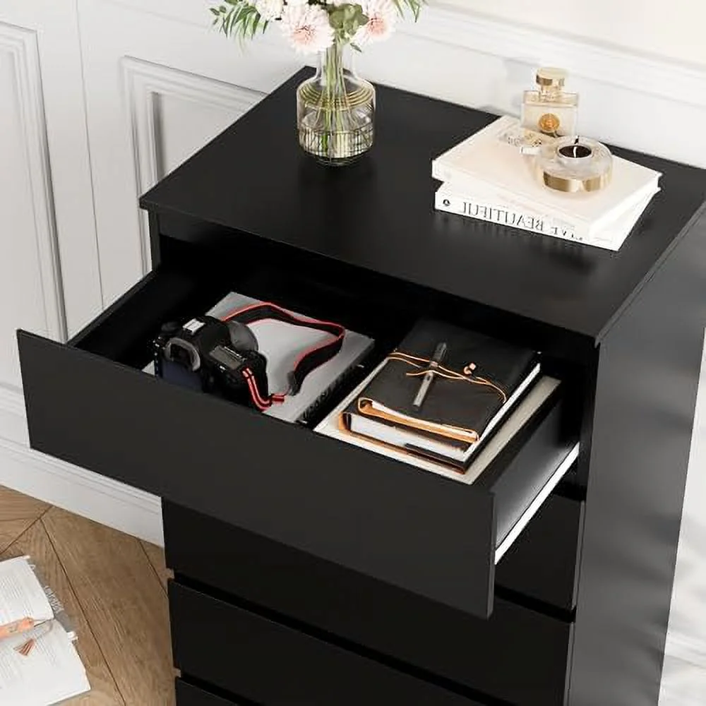 5 Drawer Dresser Chest of Drawers with Metal Leg Wood Dresser Storage Black