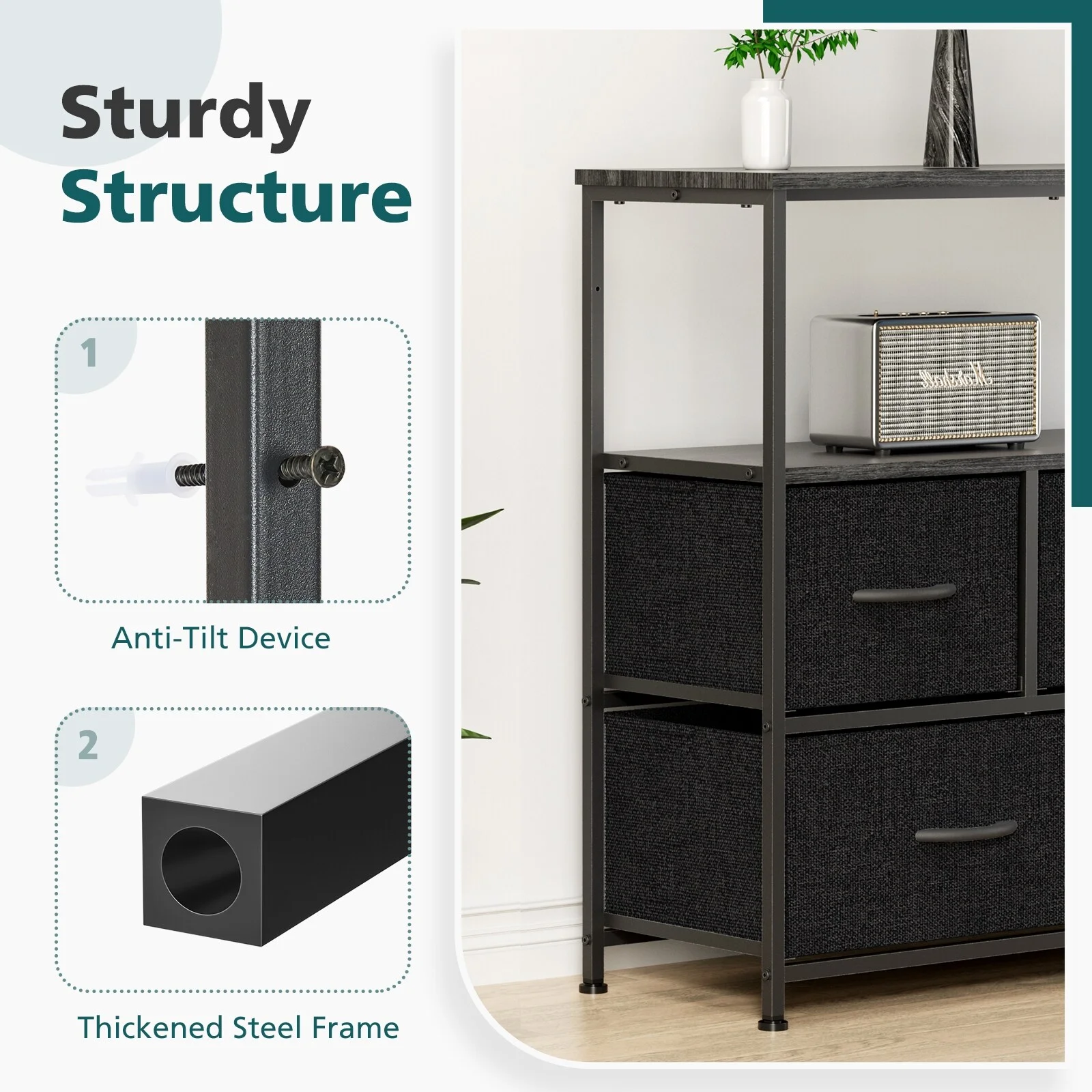 CoolArea 5-Drawer Dresser, Fabric Chest Storage Tower with Wooden Top and Open Shelf Black