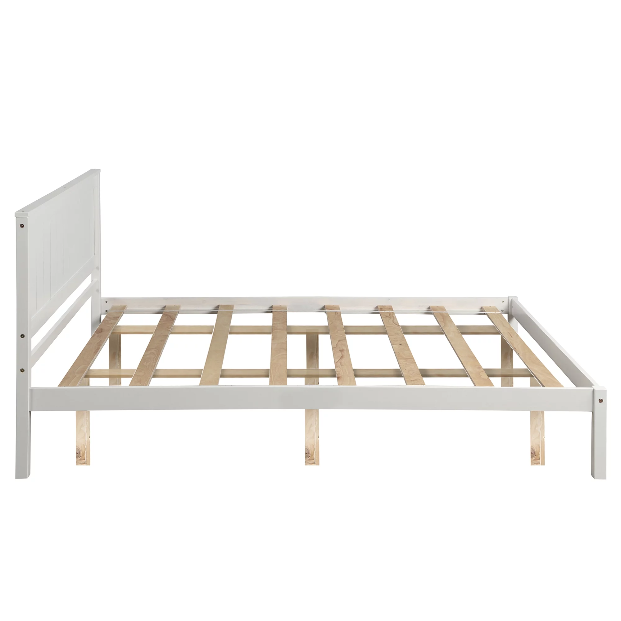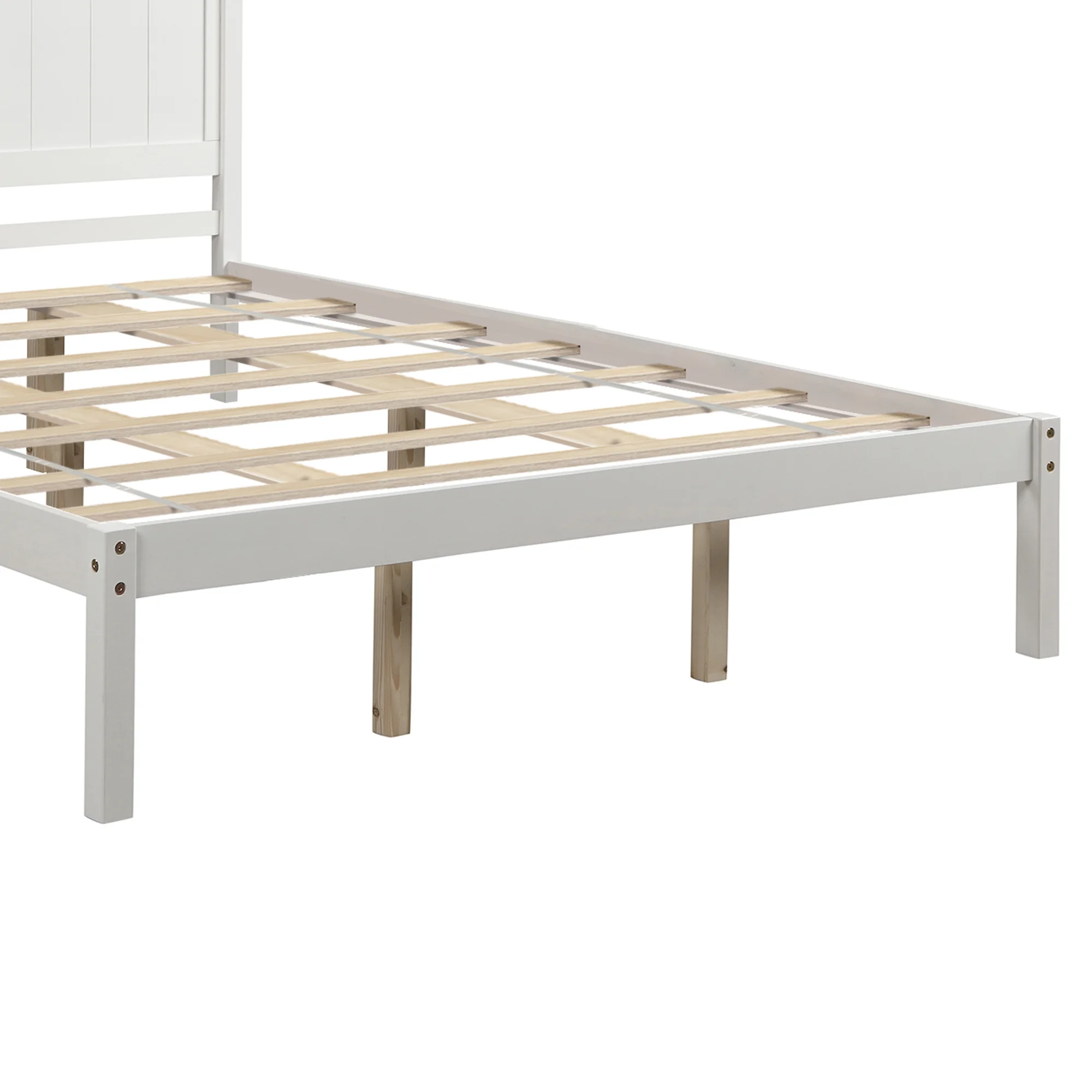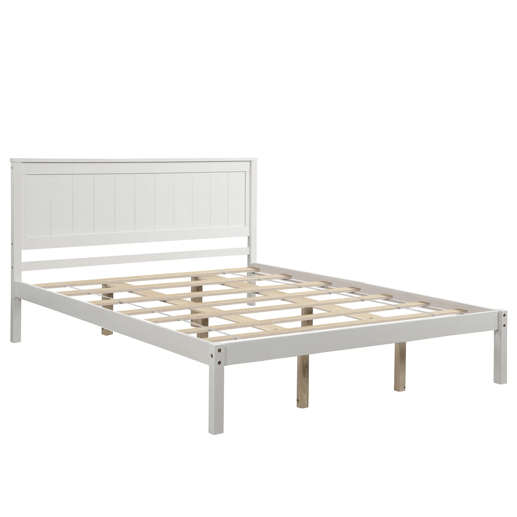 Platform Bed Frame with Headboard , Wood Slat Support , No Box Spring Needed ,Queen,White(OLD SKU:WF191420AAK)
