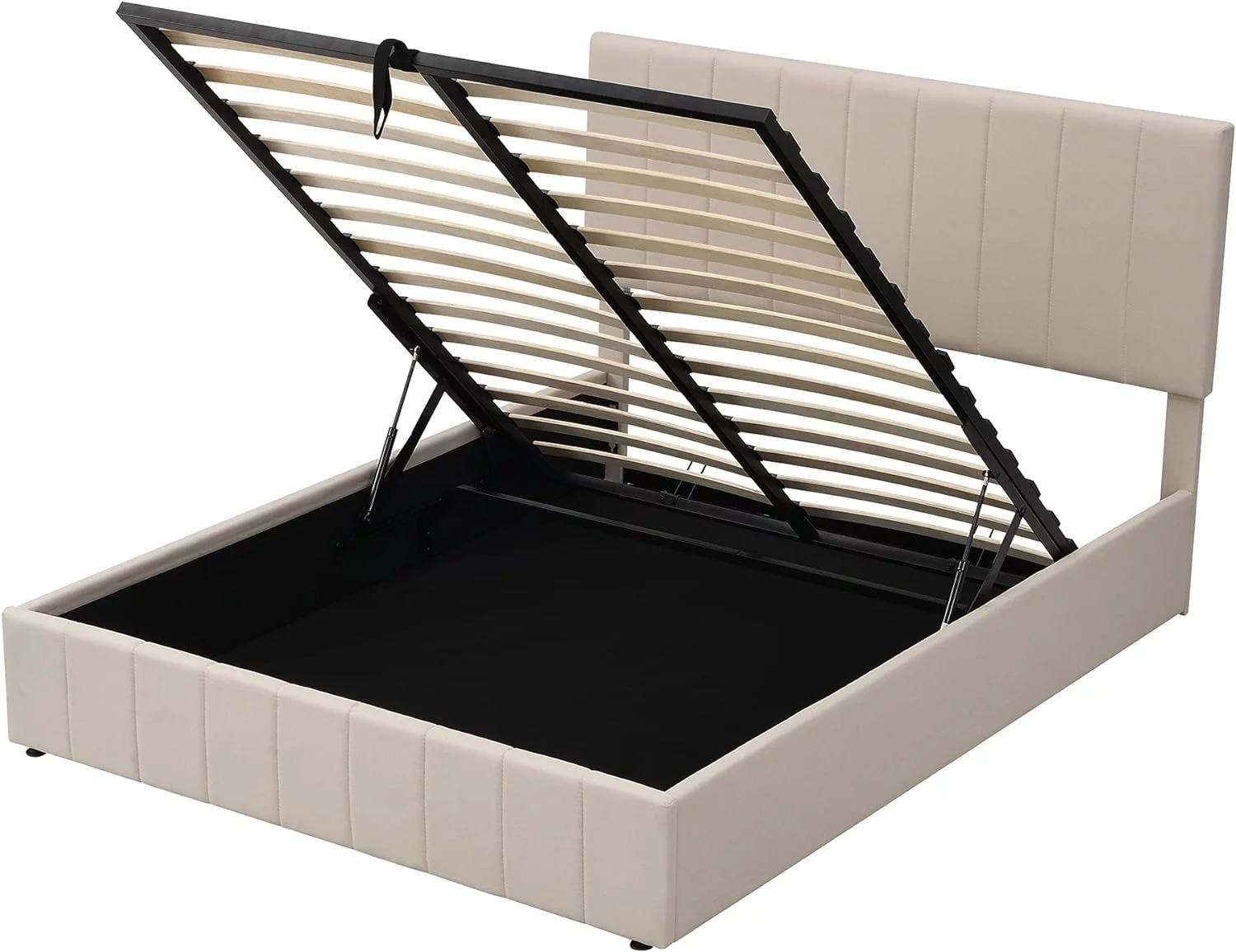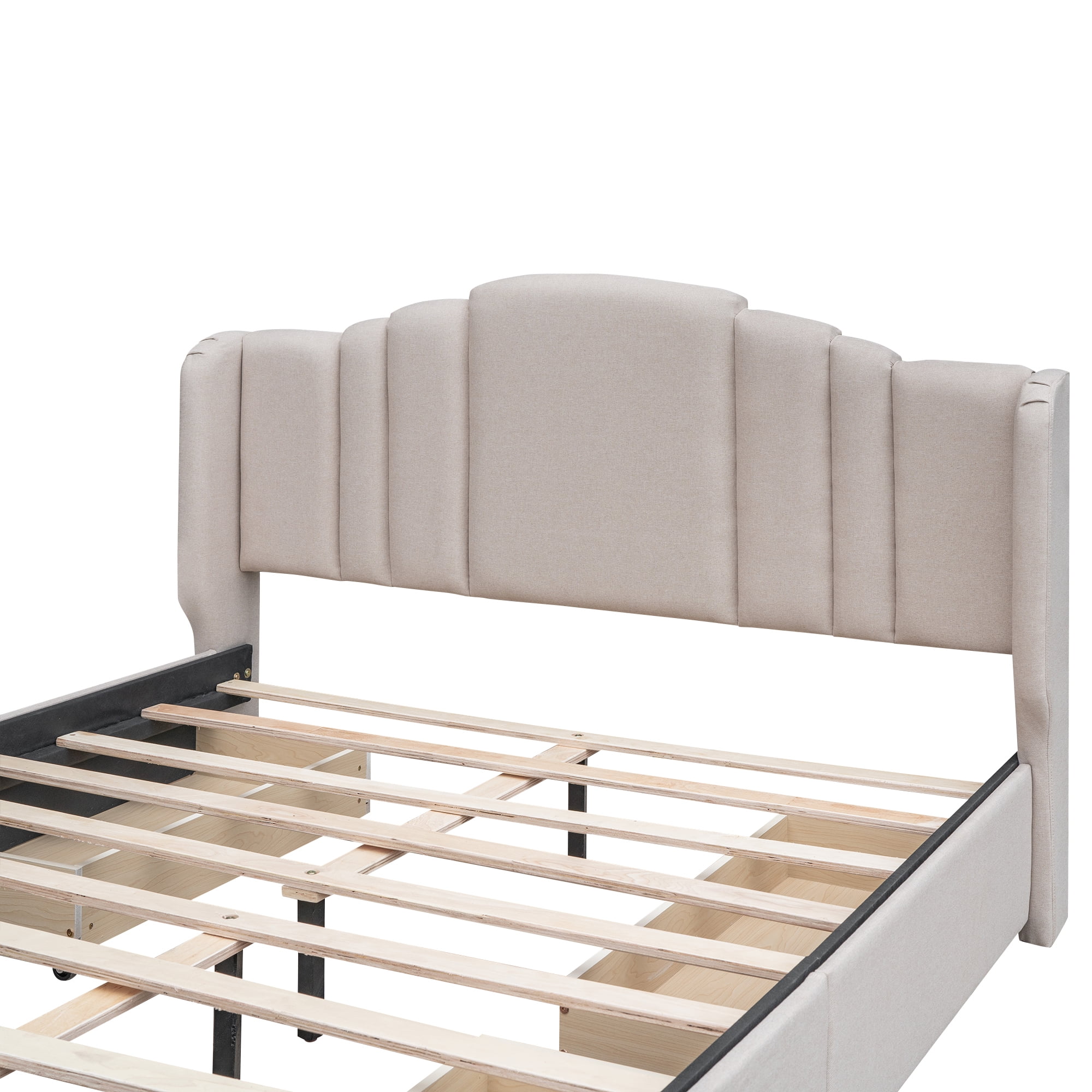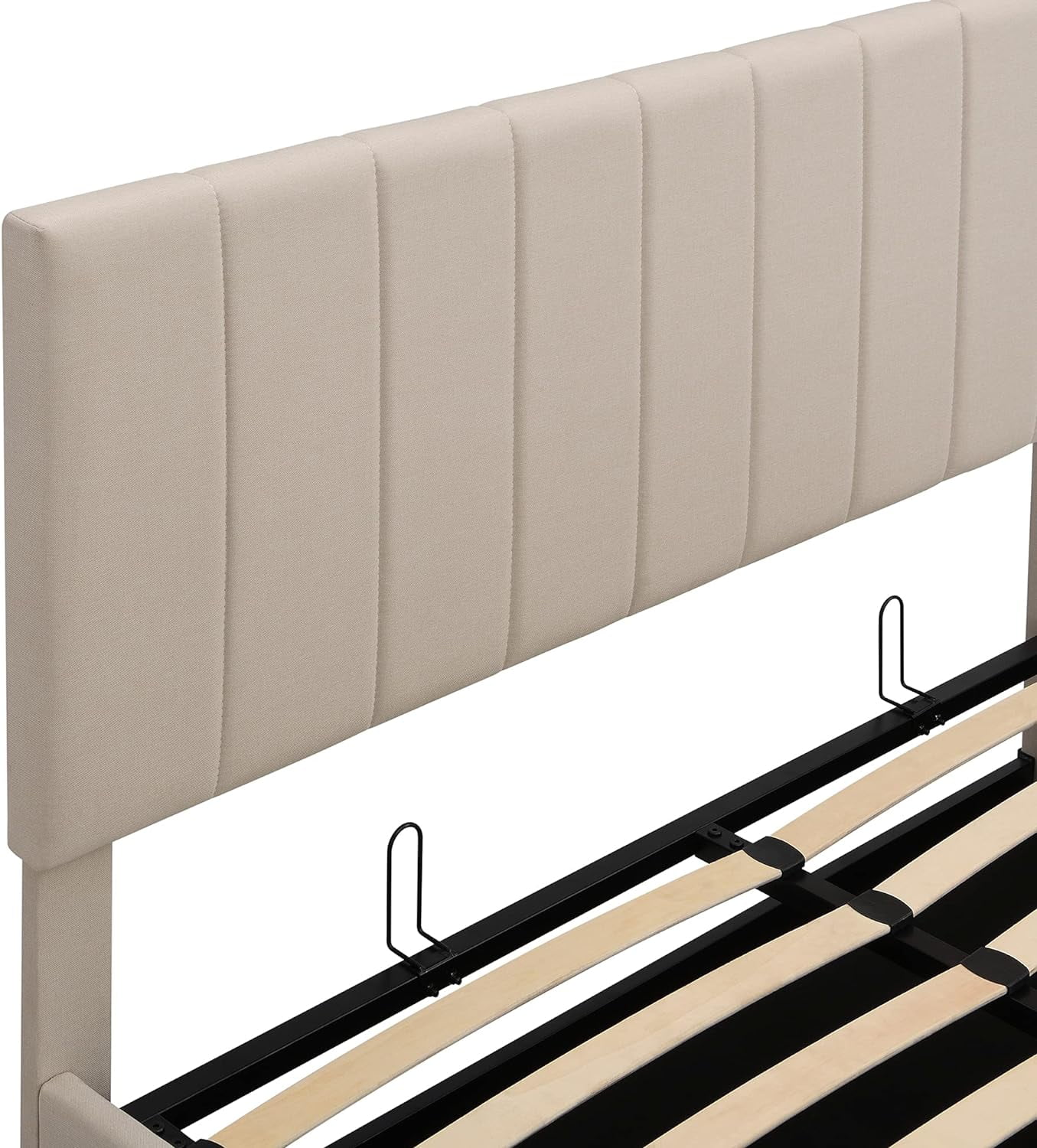Platform Bed Frame with Headboard , Wood Slat Support , No Box Spring Needed ,Queen,White(OLD SKU:WF191420AAK)