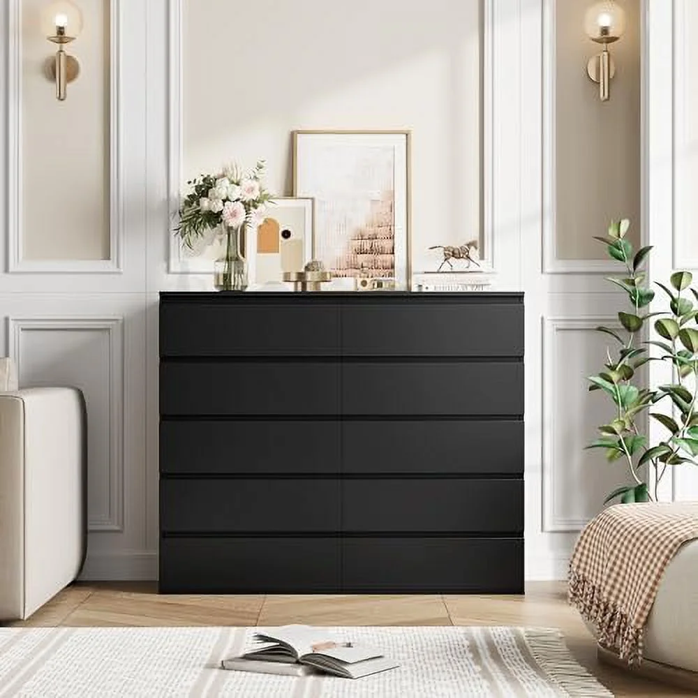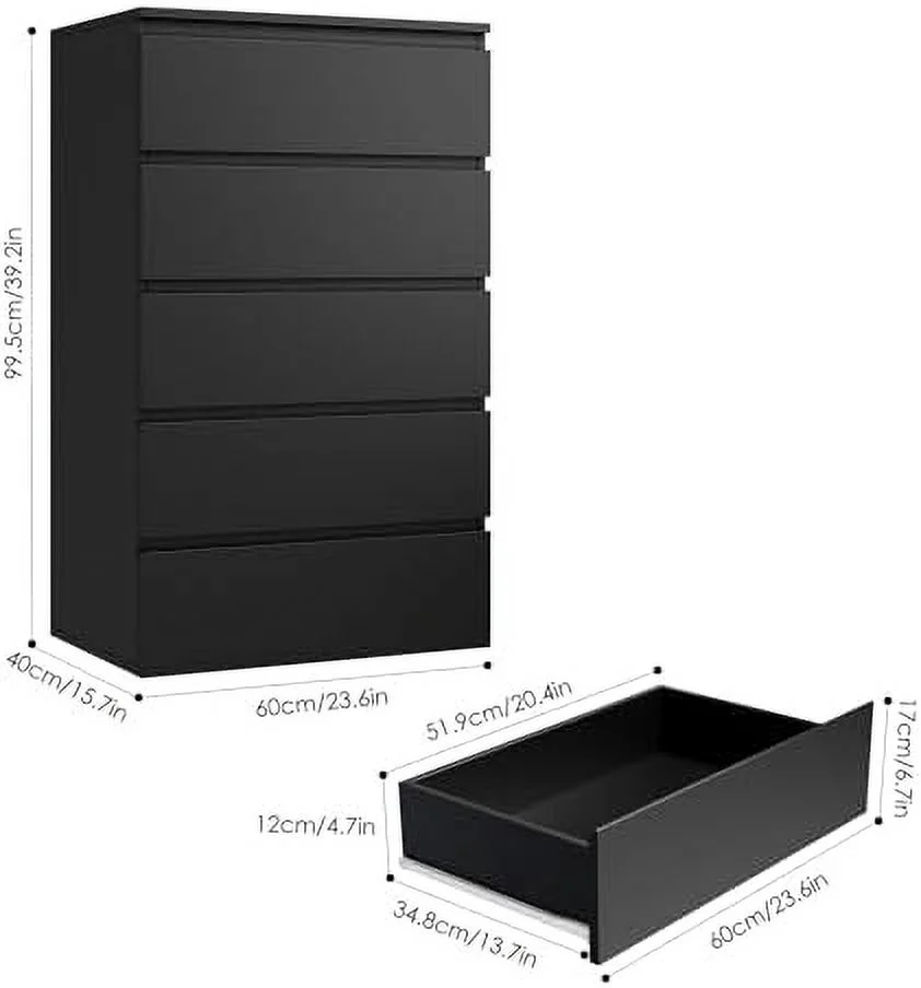 5-Drawer Black Dresser - Large Space Chest of Drawers 39.4H x 23.6L x 15.7W Inch Cabinet for