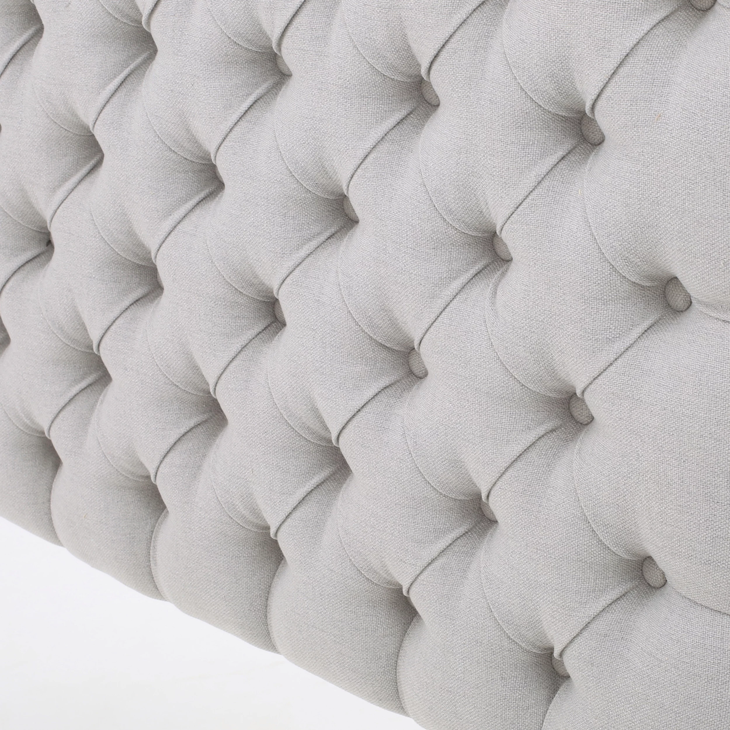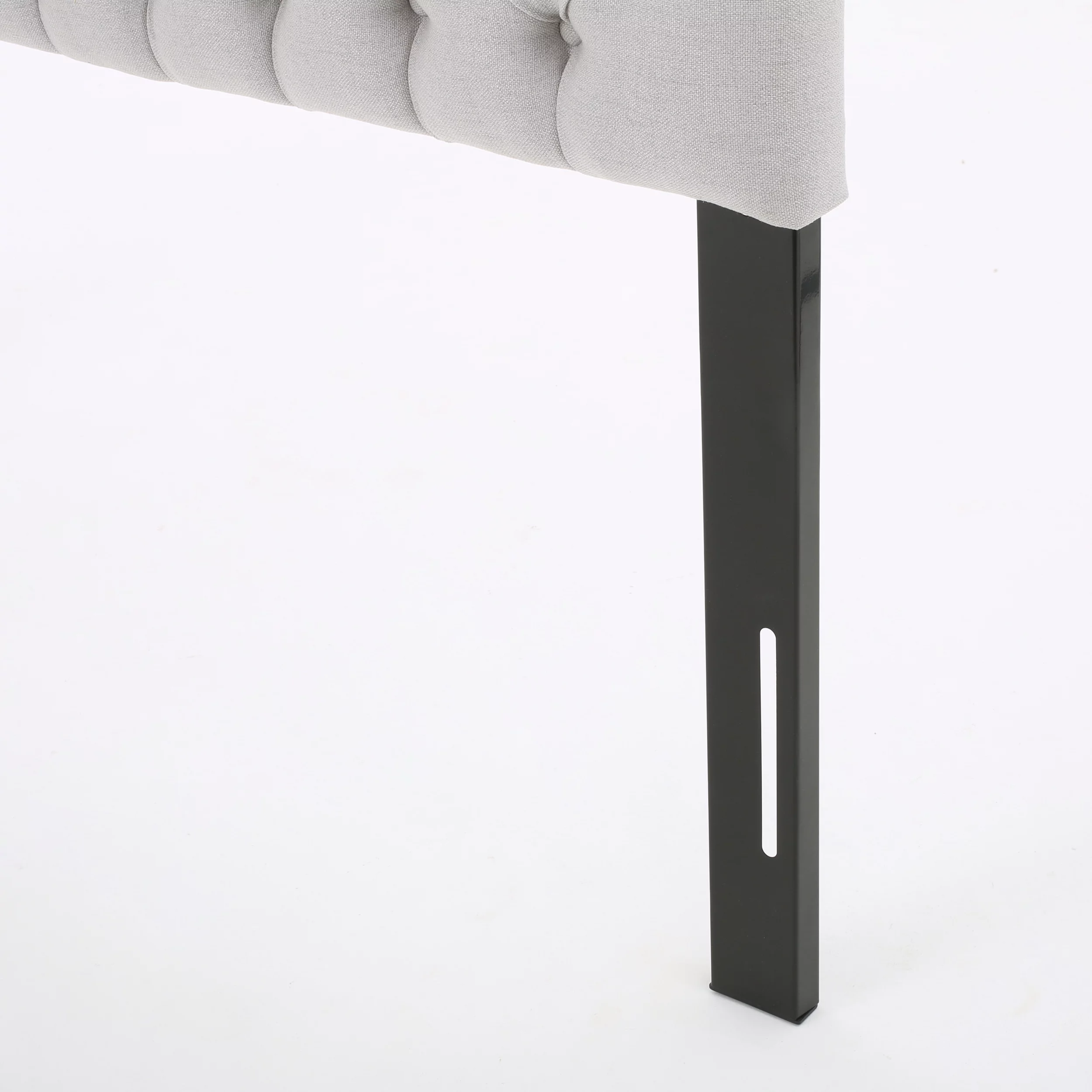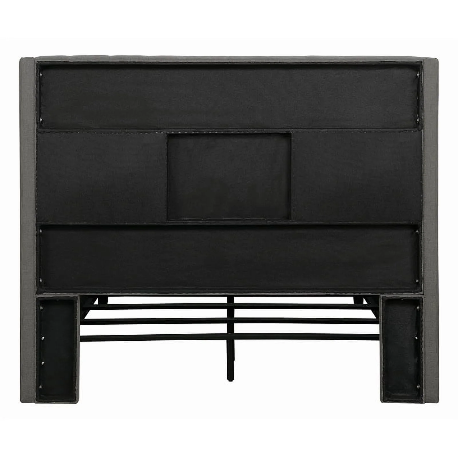Jimi Queen Bed Button Tufted Charcoal Gray Polyester Upholstered Headboard- Saltoro Sherpi