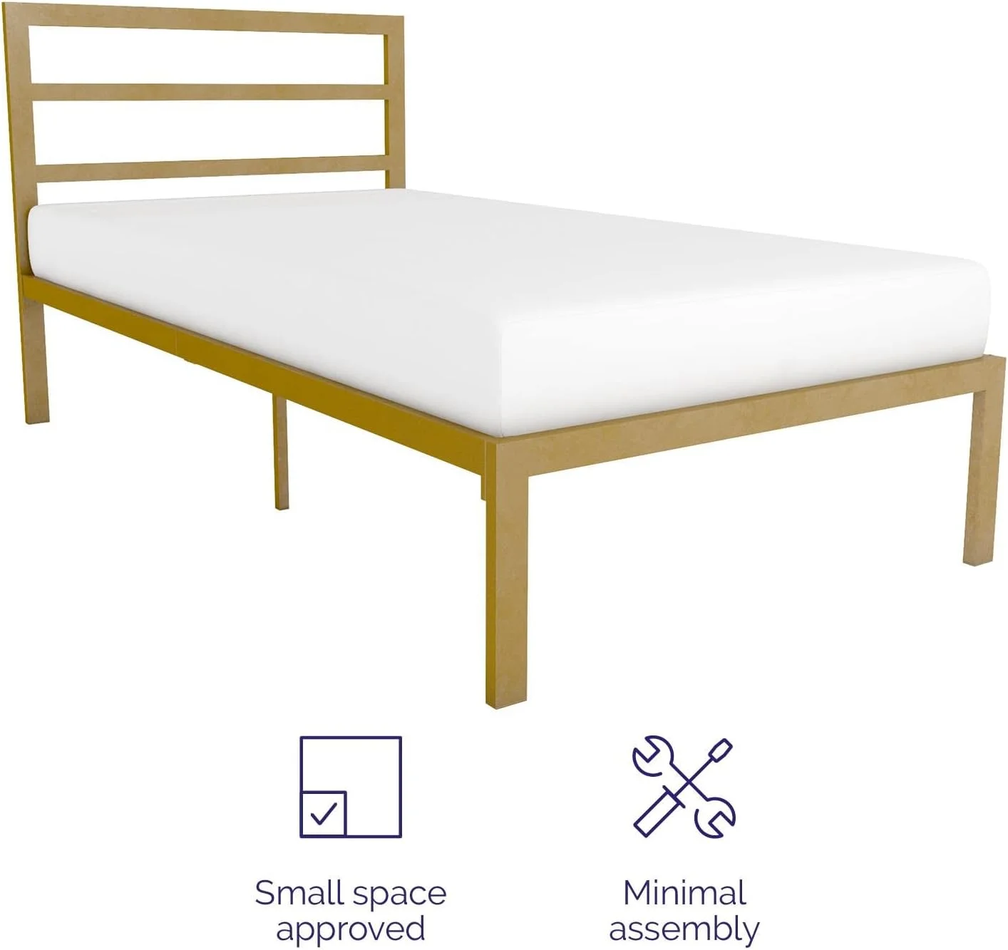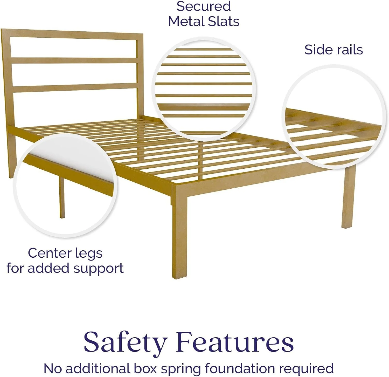 TOBILI Twin Size Bed Frame 14 Inch Metal Platform Bed Frame Heavy Duty Steel Gold