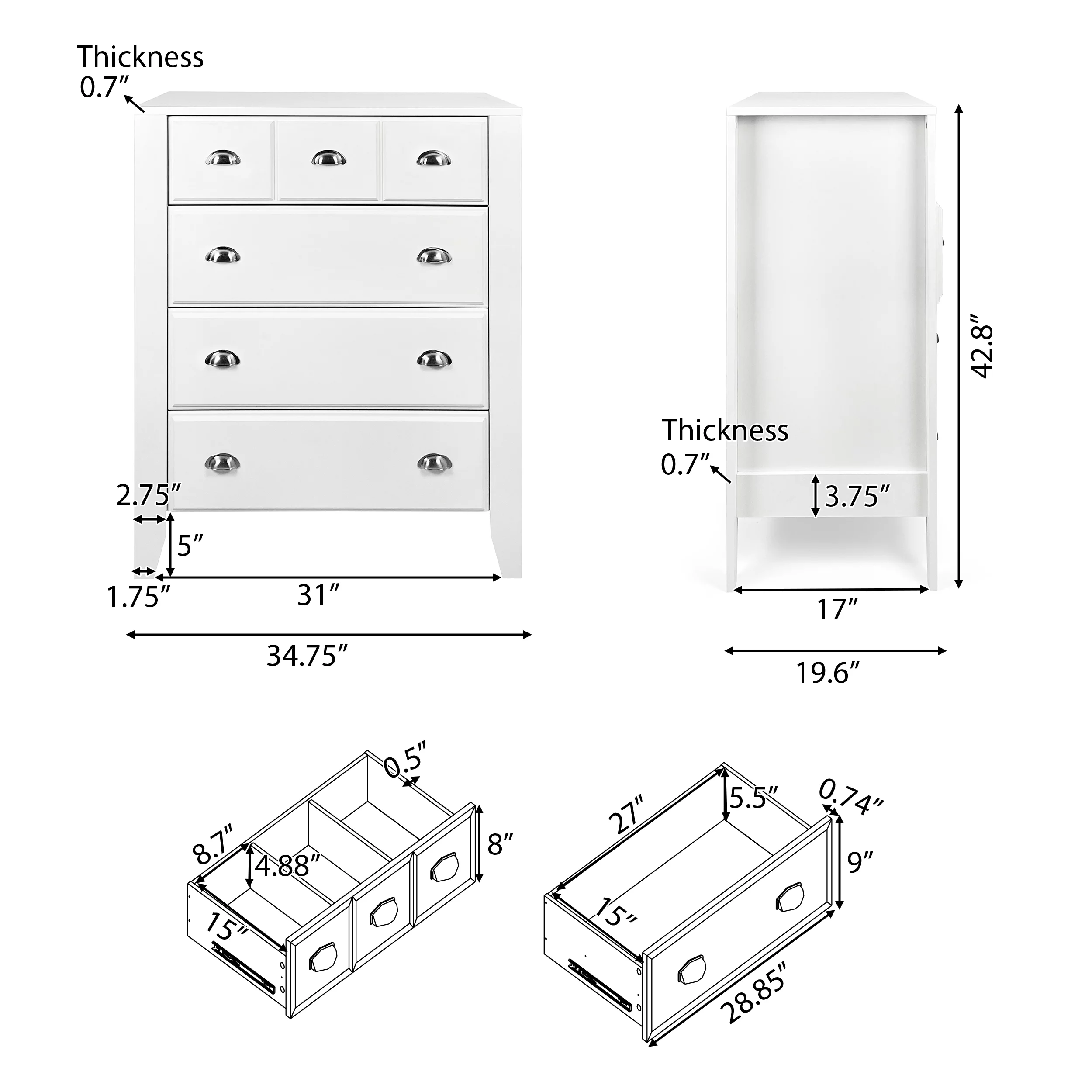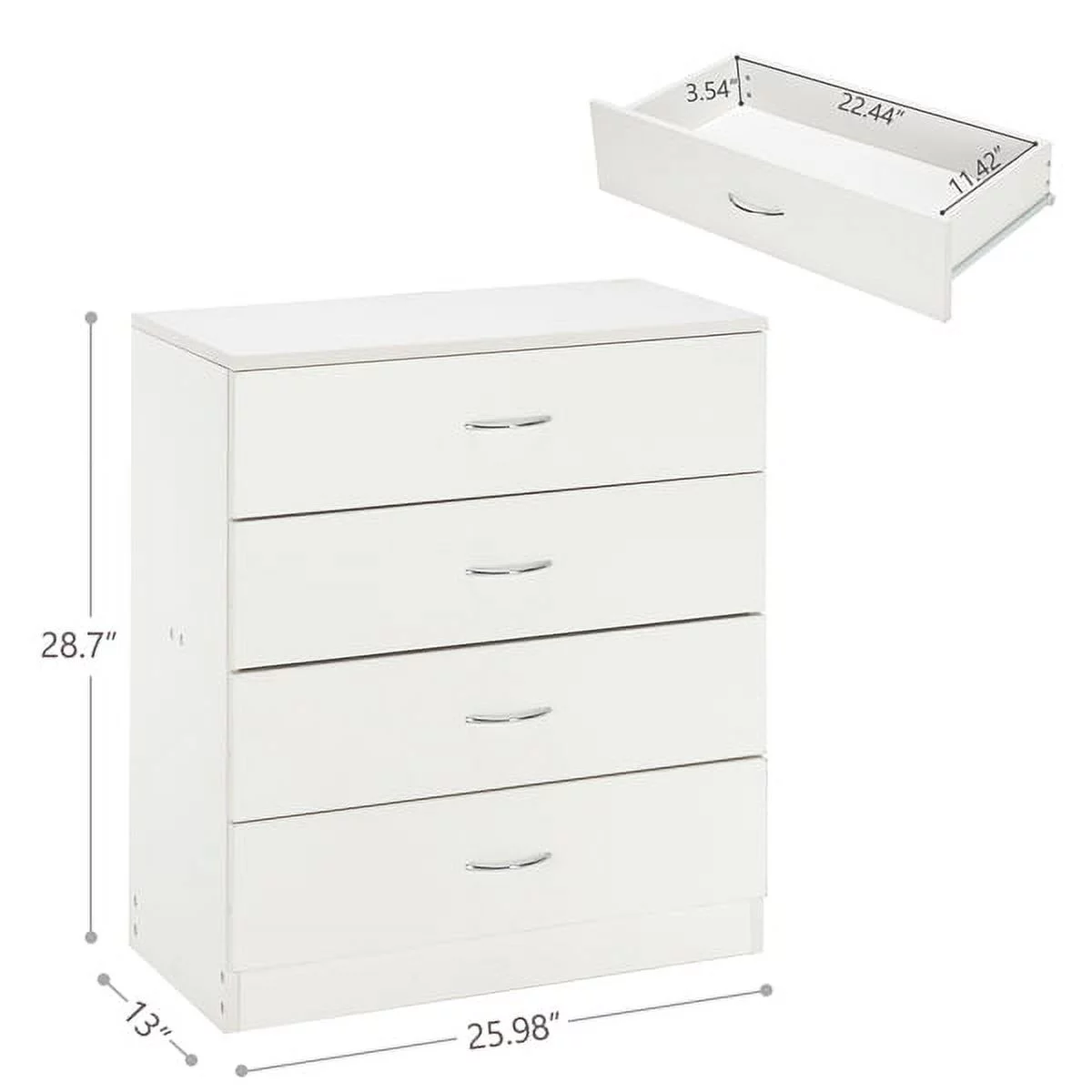 Motent Solid wood special shape square handle design with 4 drawers bedroom furniture dressers, White
