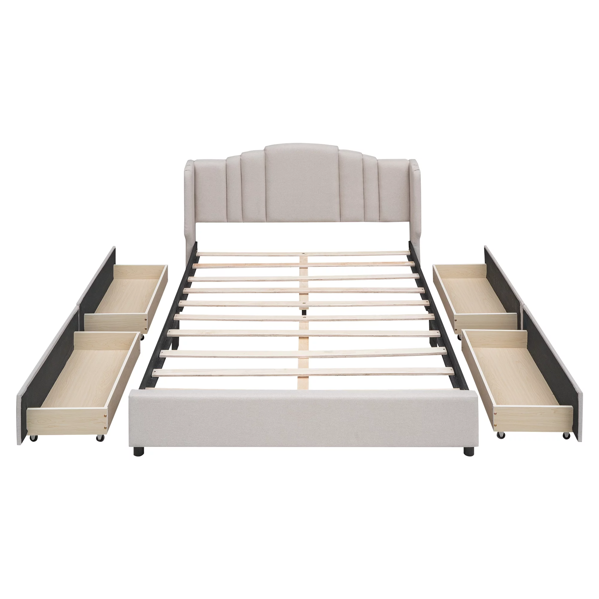 Modern Contemporary Queen Bed Upholstered Headboard Gray Wooden Bedroom Furniture 1pc