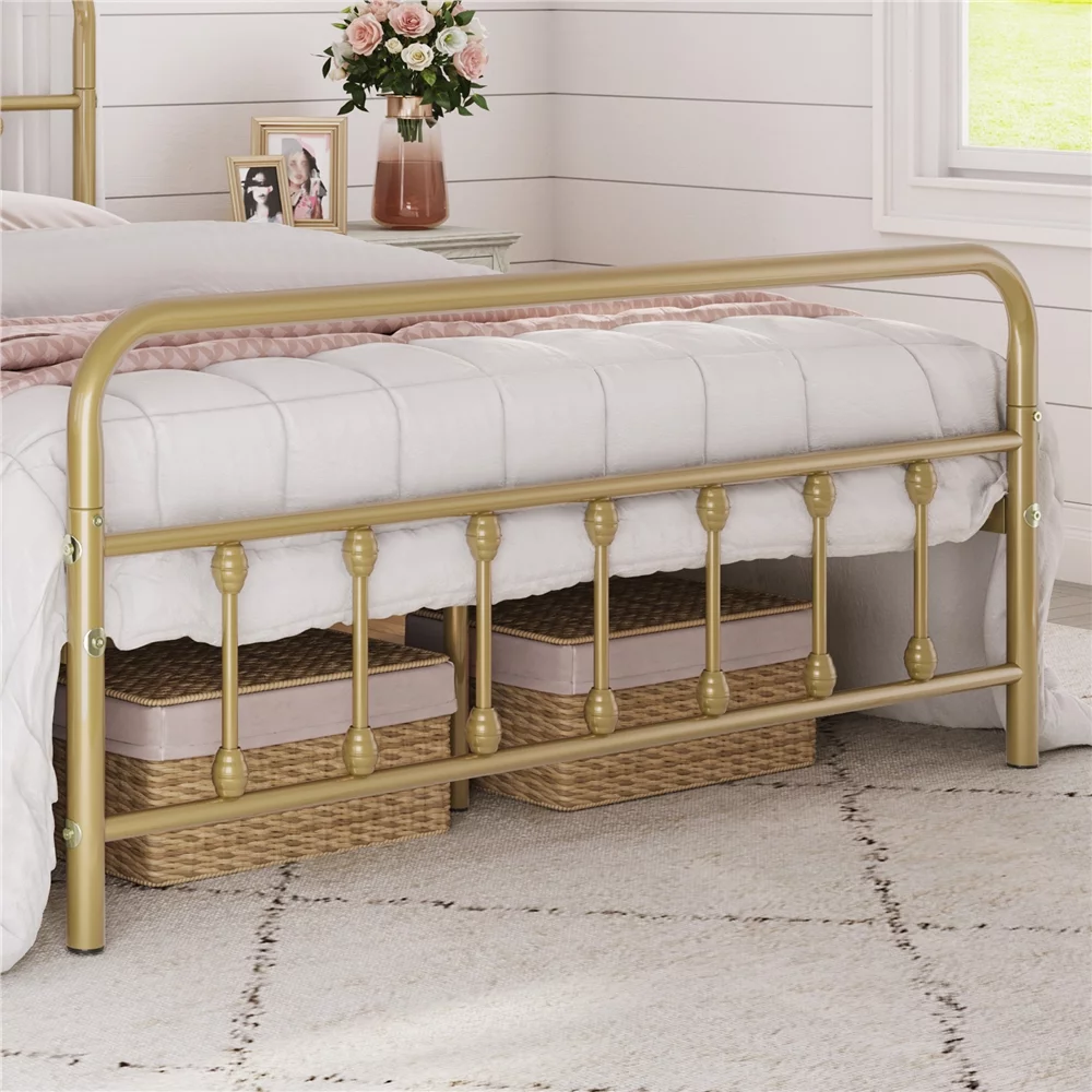 Yaheetech Classic Platform Bed with High Headboard and Footboard,Full,Antique Gold