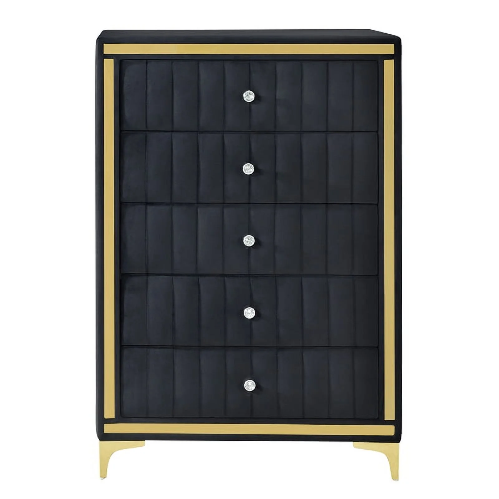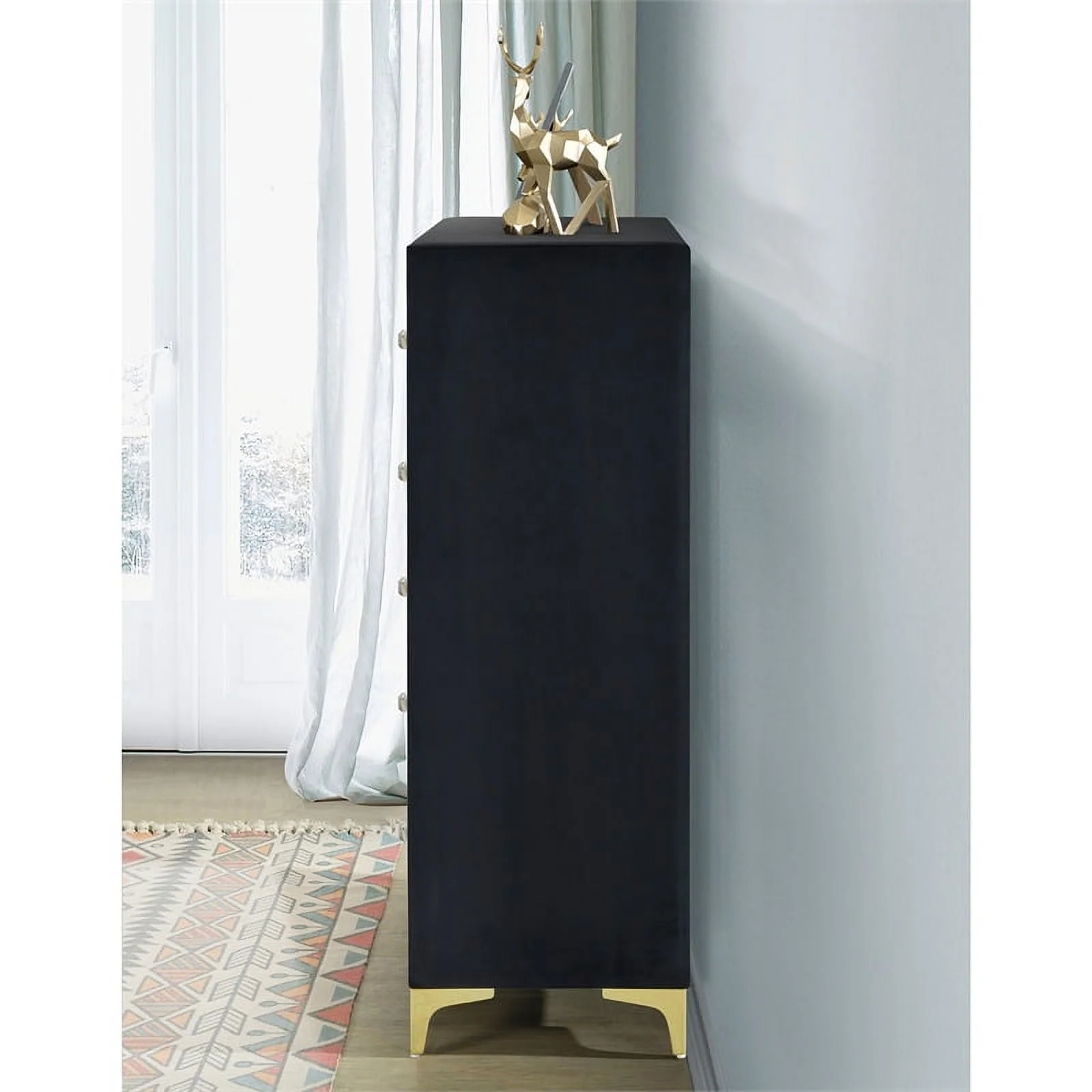 Better Home Products Monique Velvet Upholstered 5-Drawer Chest in Black