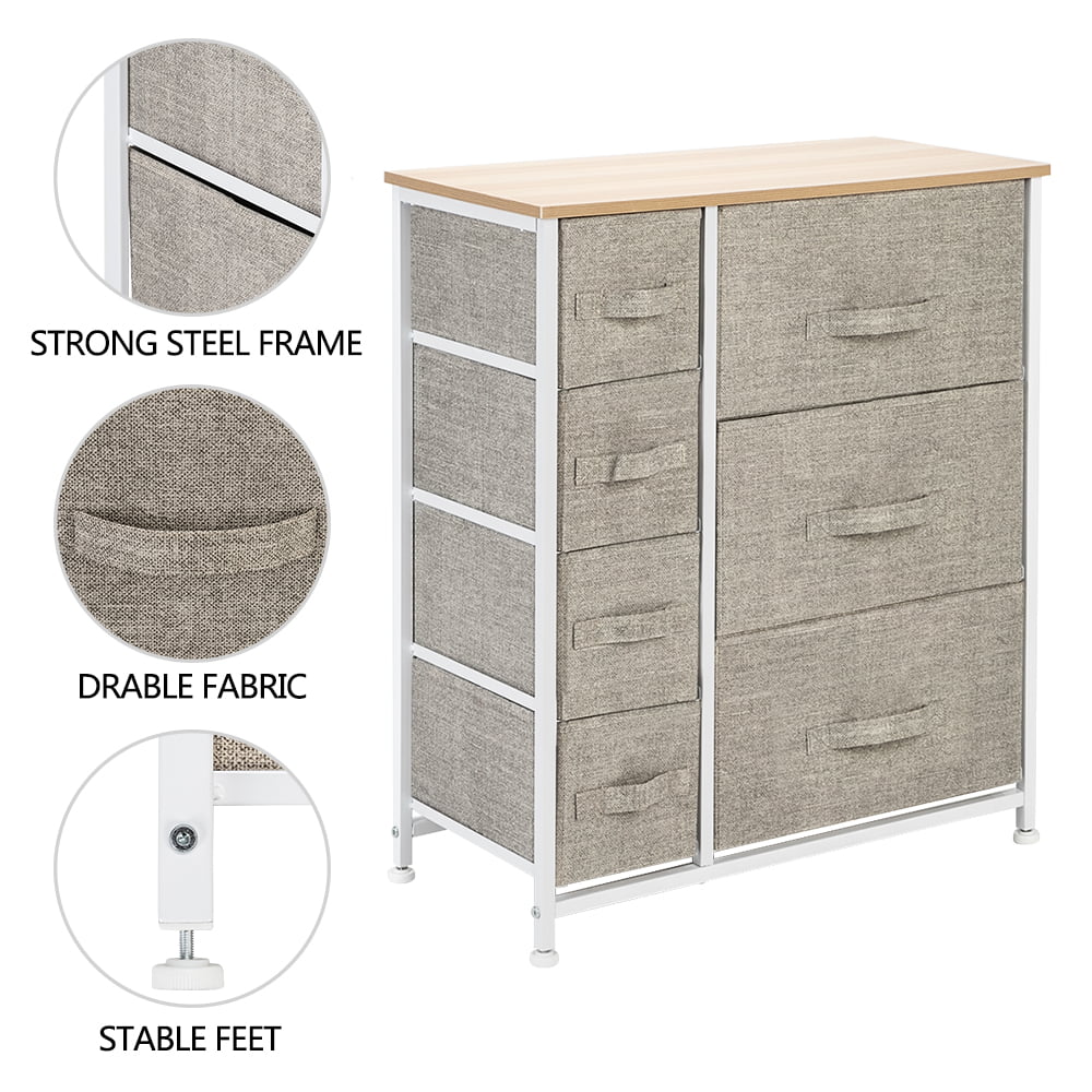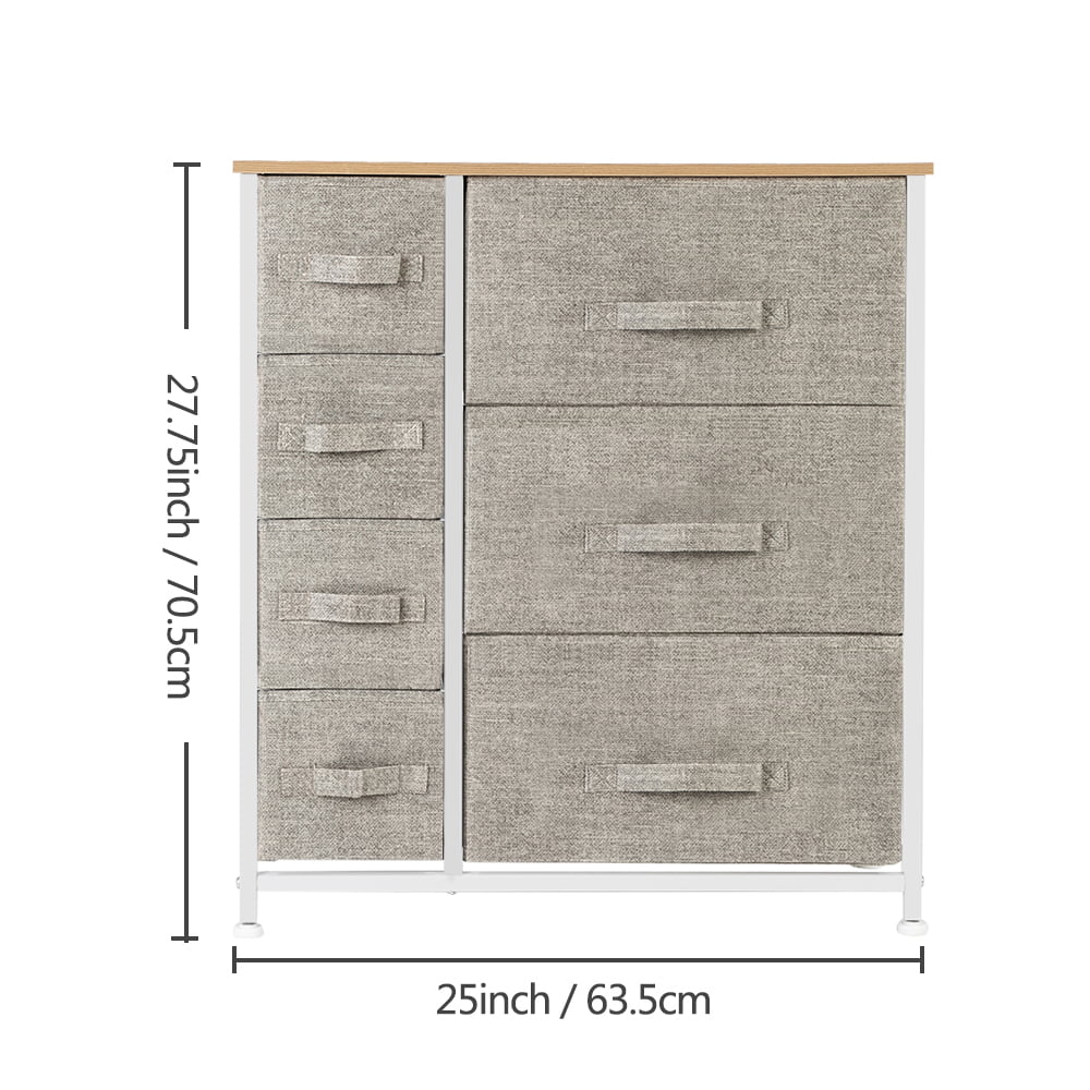 Storage Shelf with 7 Drawers, Storage Tower Unit with Steel Frame, Wood Top, Easy Pull Fabric Bins