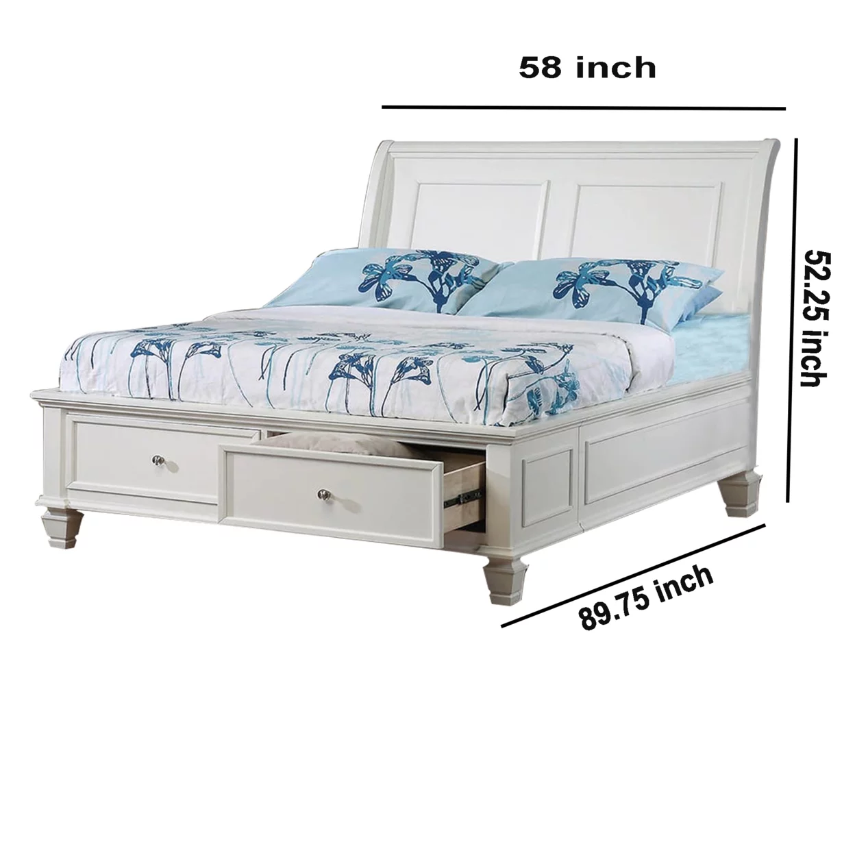 Wooden Full Size Bed with Sleigh Style Headboard and Two Drawers, White- Saltoro Sherpi