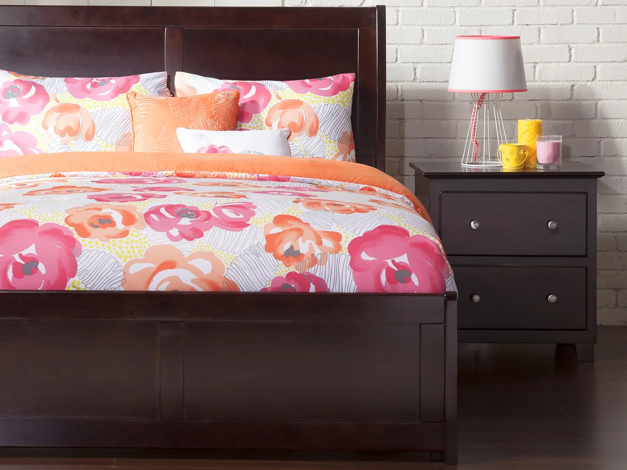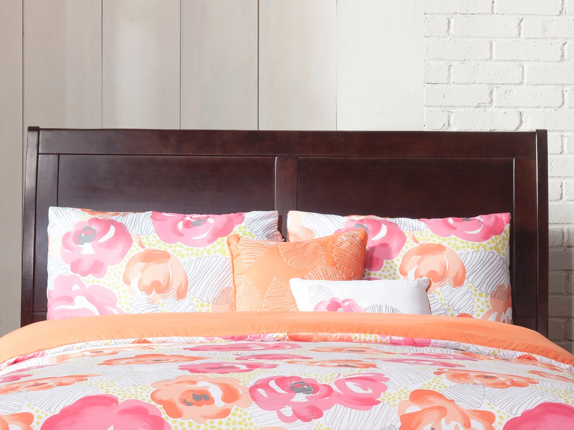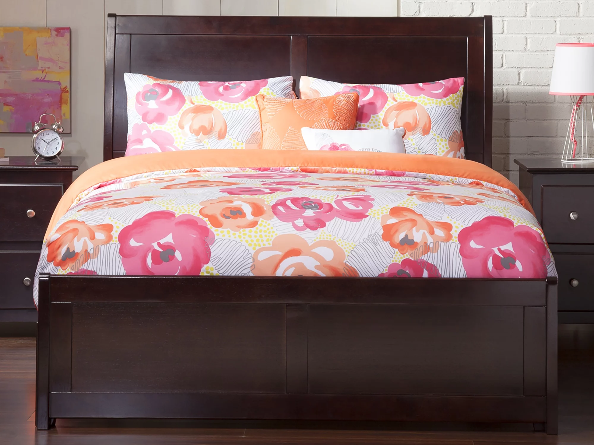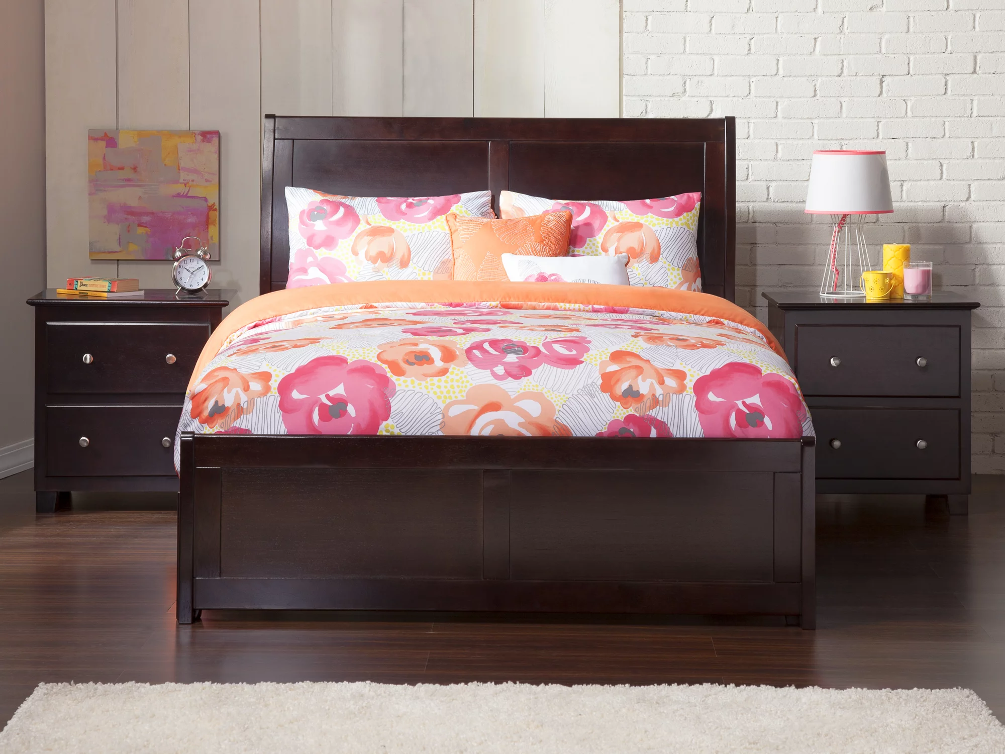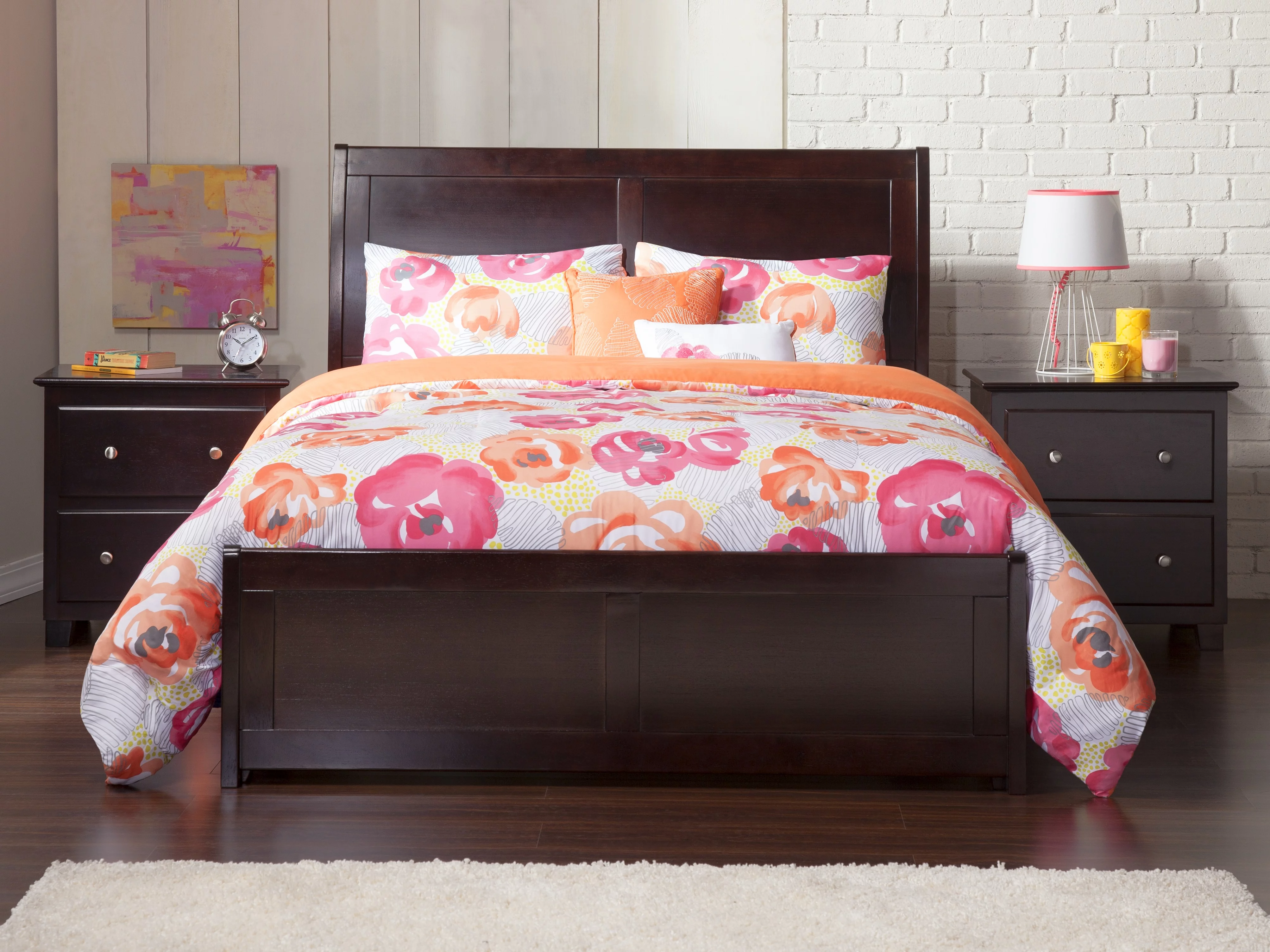 AFI Portland Full Wood Platform Bed with Sleigh Headboard and Footboard, Espresso